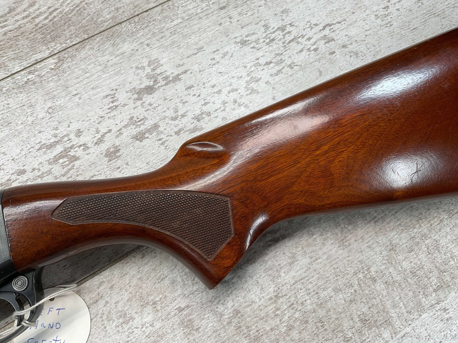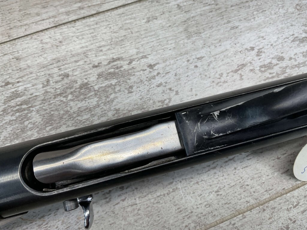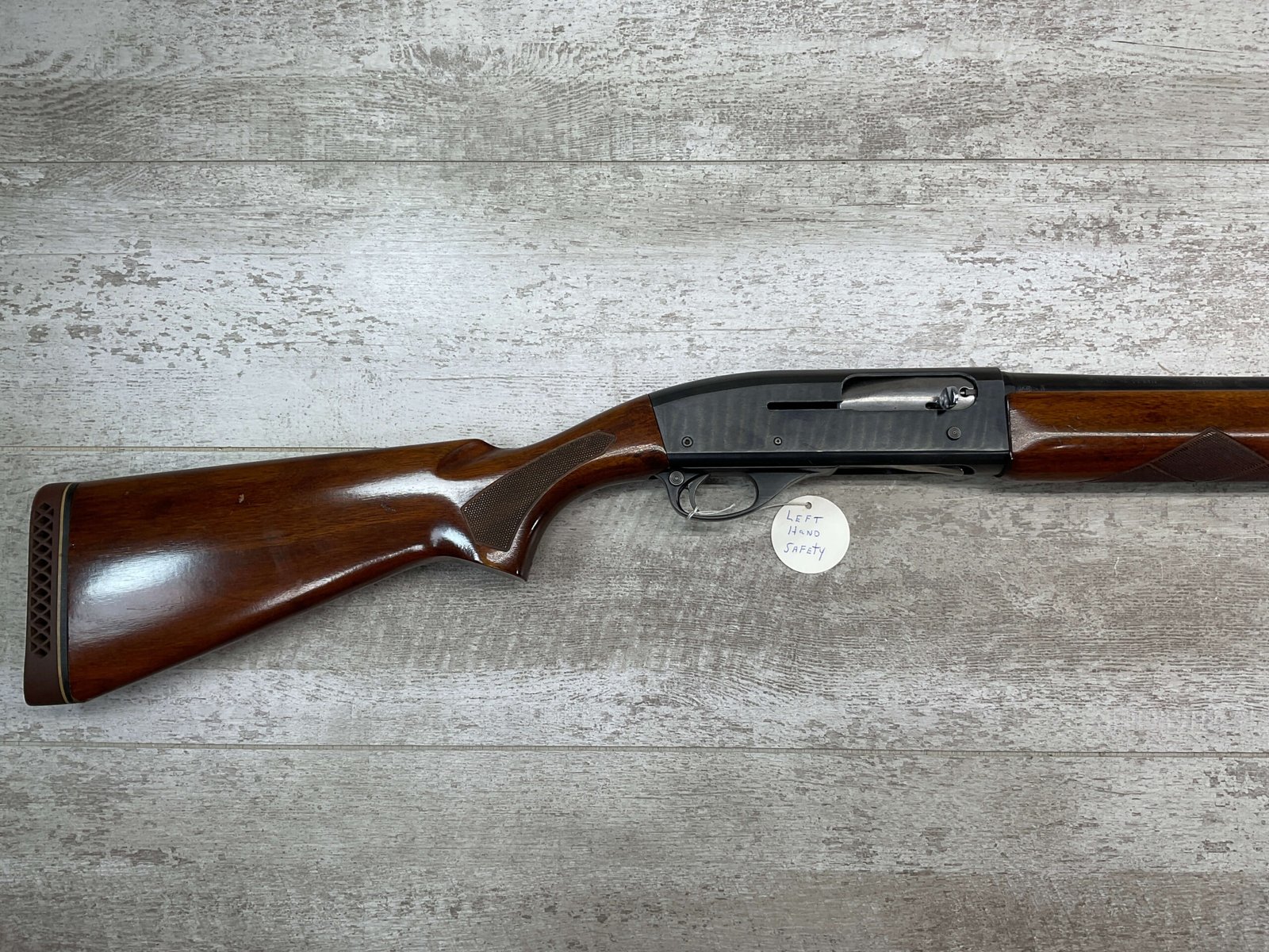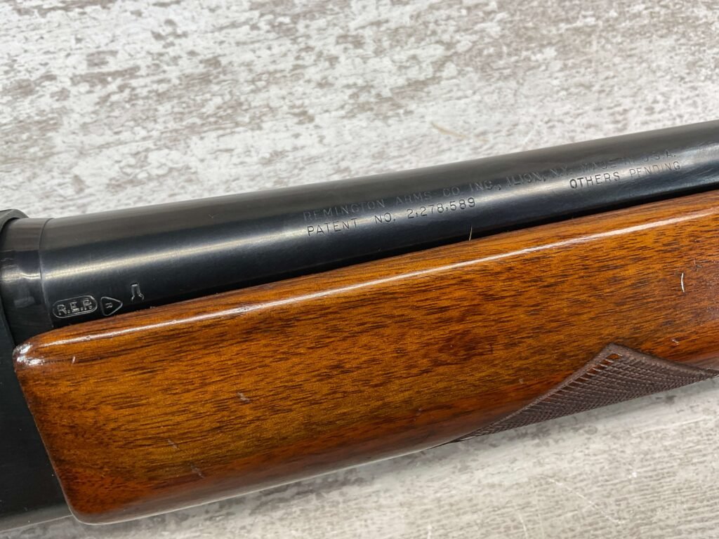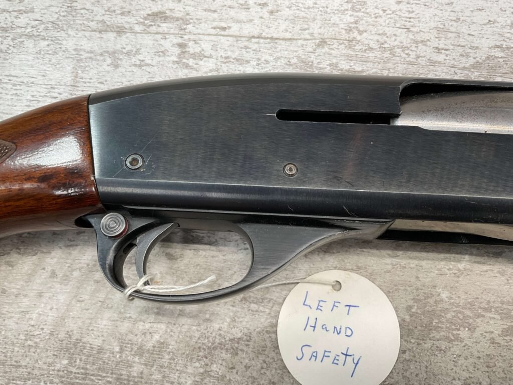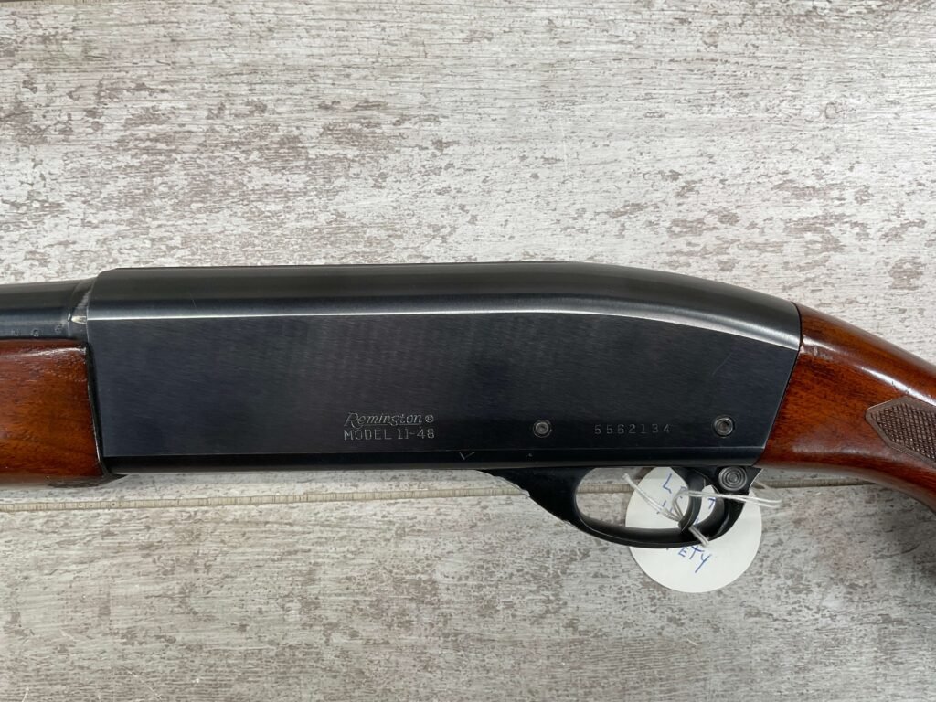 REMINGTON MODEL 11-48 16GA MOD 28″ BBL SEMI AUTO SHOTGUN #5562134, 16 GAUGE, “1WCH” MARKED 28″ BARREL, 2 3/4″ OR SHORTER, EXC STOCK W/CHECKERING, EXC BLUE W/ONLY A COUPLE LIGHT SCRATCHES FROM USE ALONG W/HEAVIER SCRATCHES AROUND LOAD PORT/TRIGGER GUARD, 90+% OVERALL **NOTE THE LEFT HANDED SAFETY**