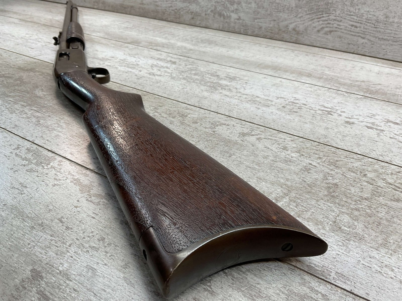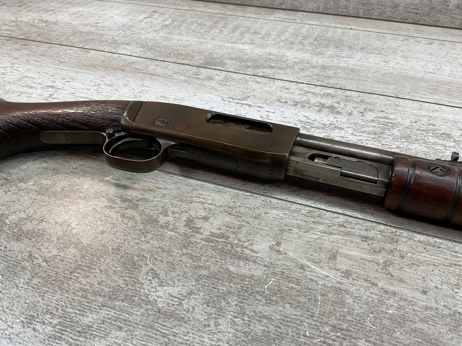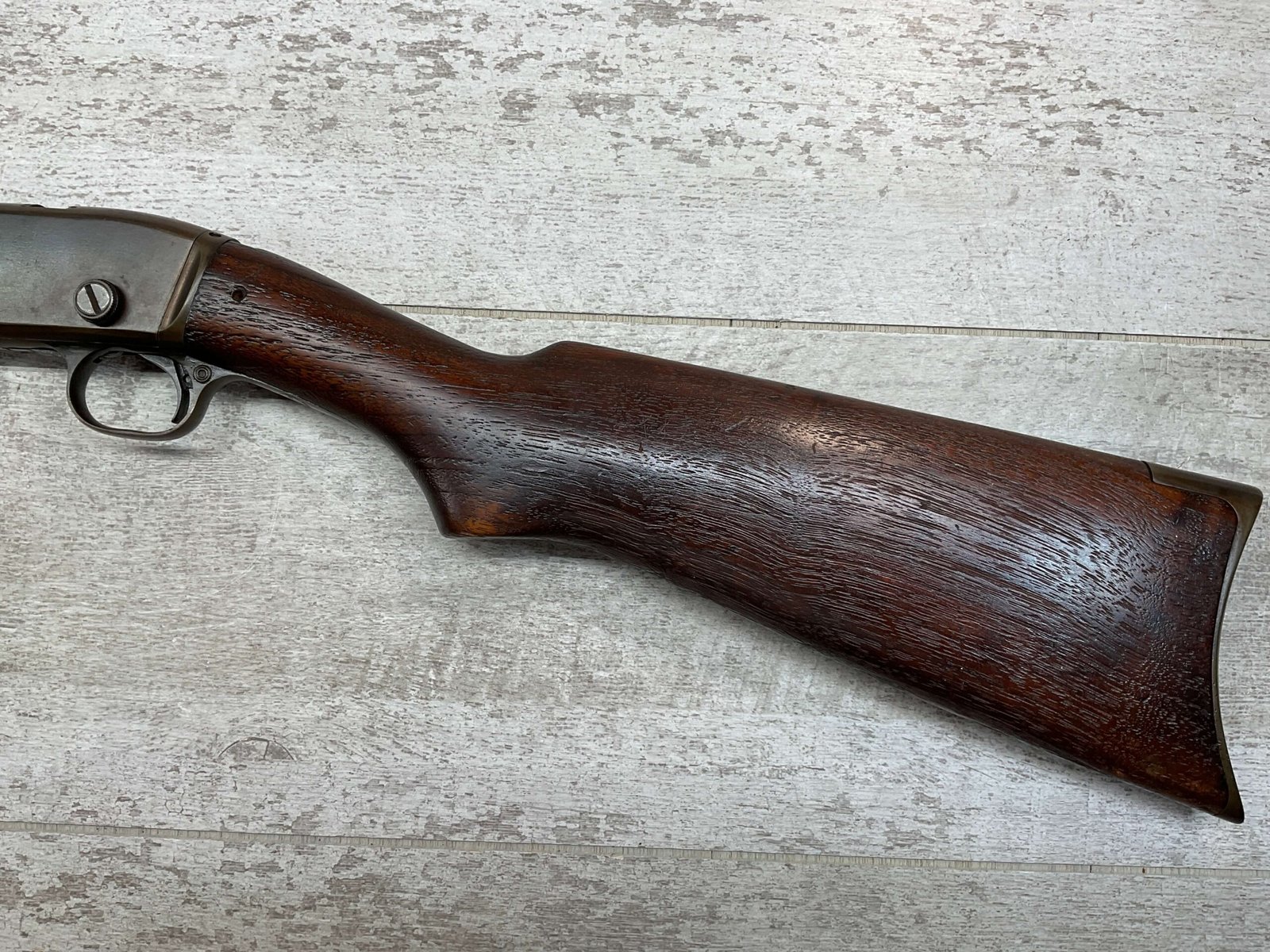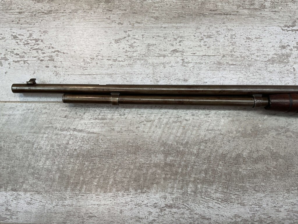 REMINGTON MODEL 25 .25-20 WCF PUMP ACTION RIFLE #AA 1912, OCT 1928 MFR, MAJORITY OF BLUE HAS TURNED GREY/BROWN PATINA, GOOD BORE W/LIGHT FROSTING IN AREAS, GOOD WOOD W/DINGS/NICKS FROM AGE/USE, TUBE MAGAZINE, MARBLES ADJ REAR SIGHT, BLADE FRONT SIGHT, 80% OVERALL