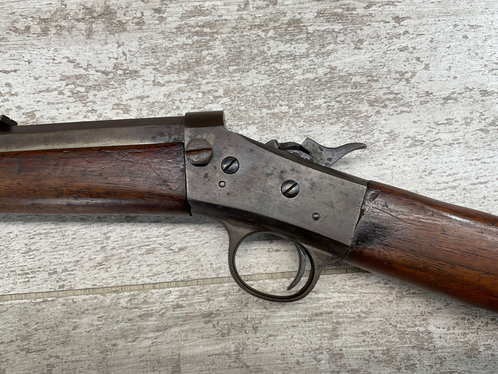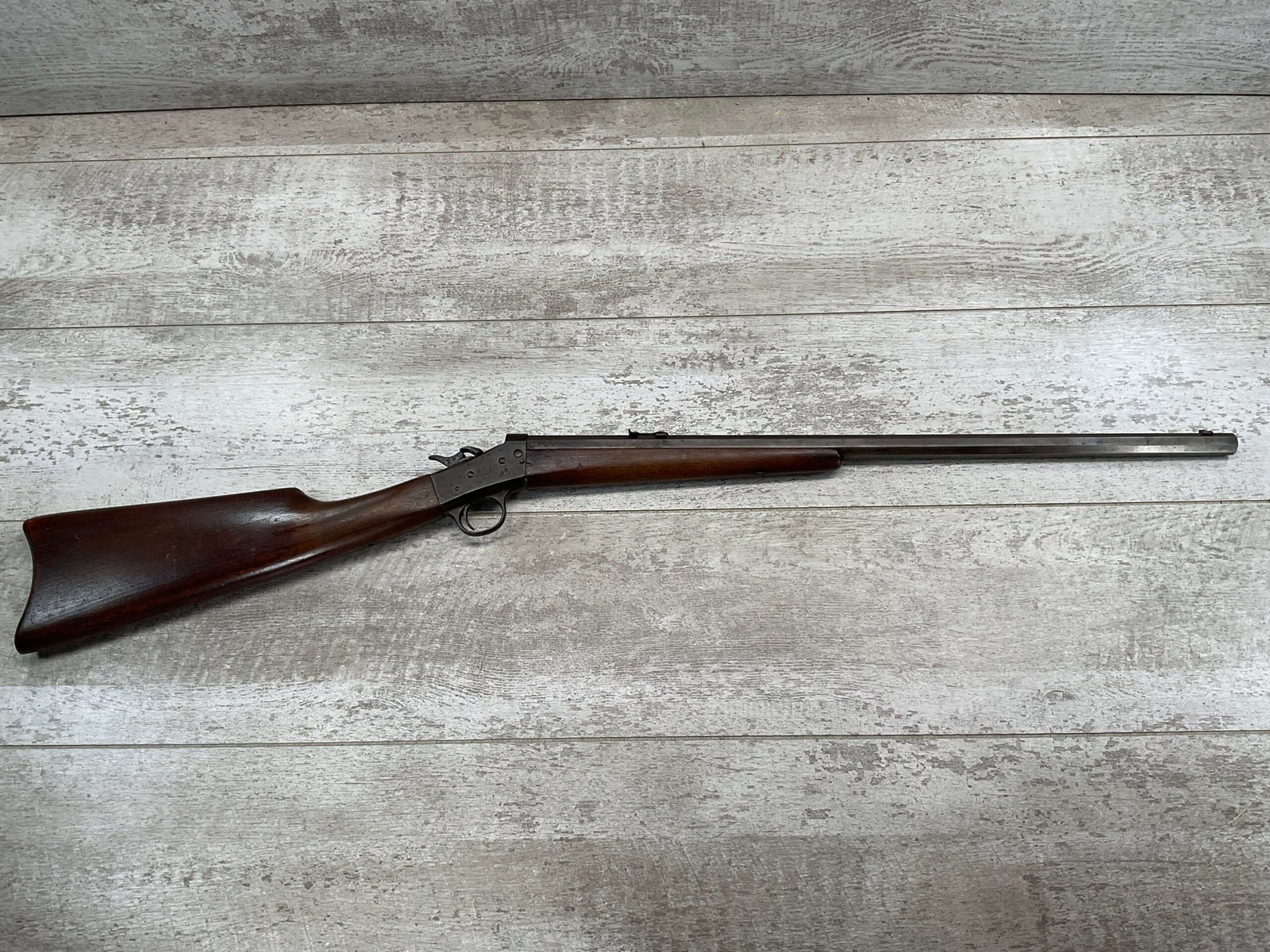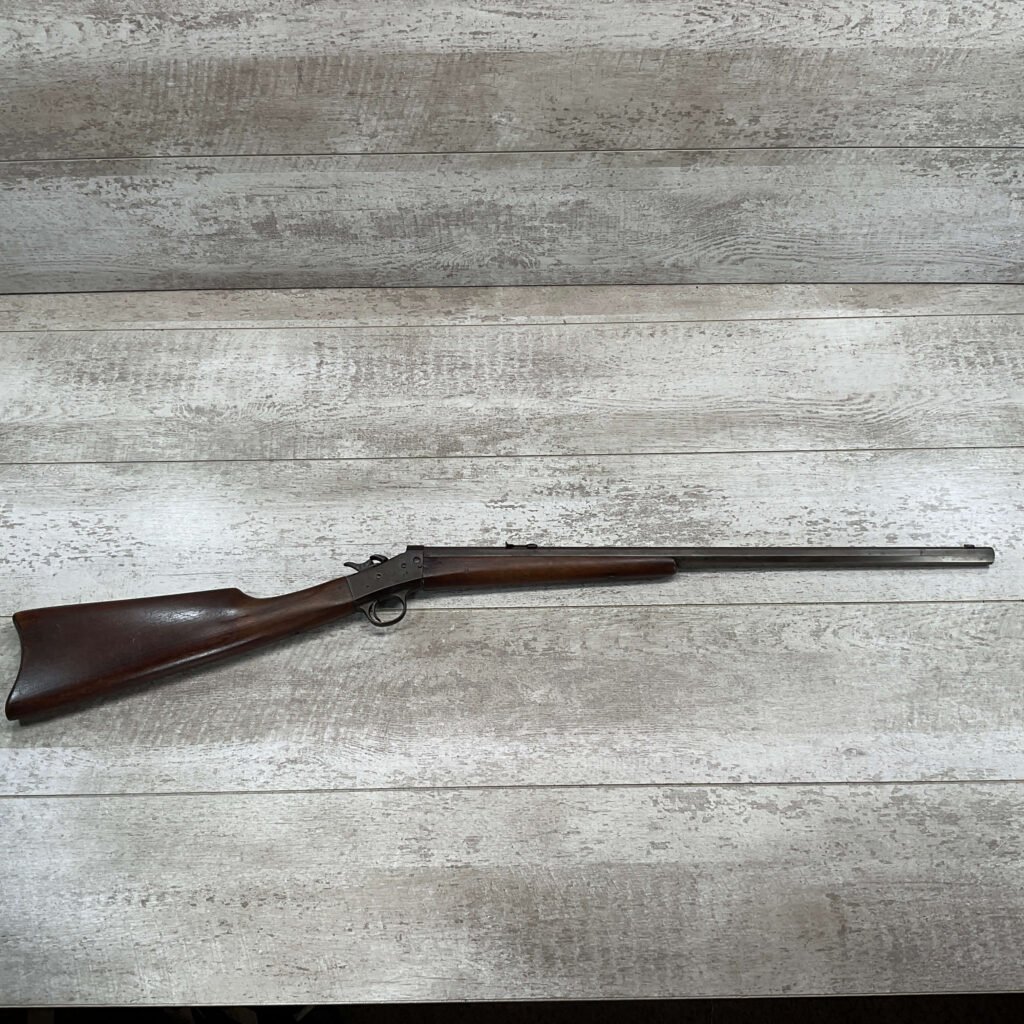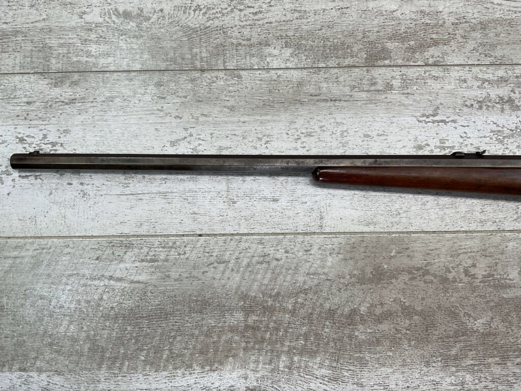 REMINGTON MODEL 4 TAKEDOWN ROLLING BLOCK .22 LR RIFLE #J 249188, 22 1/2″ OCTAGON BARREL,  FROSTED BORE W/WEAK RIFLING, METAL HAS TURNED GREY/BROWN PATINA, WOOD IS APPROPRIATE FOR AGE & USE, SMOOTH ACTION, EXTRACTOR FUNCTIONS, HALF & FULL COCK BOTH HOLD & RELEASE W/TRIGGER,  A REALLY NICE LITTLE RIFLE!!
