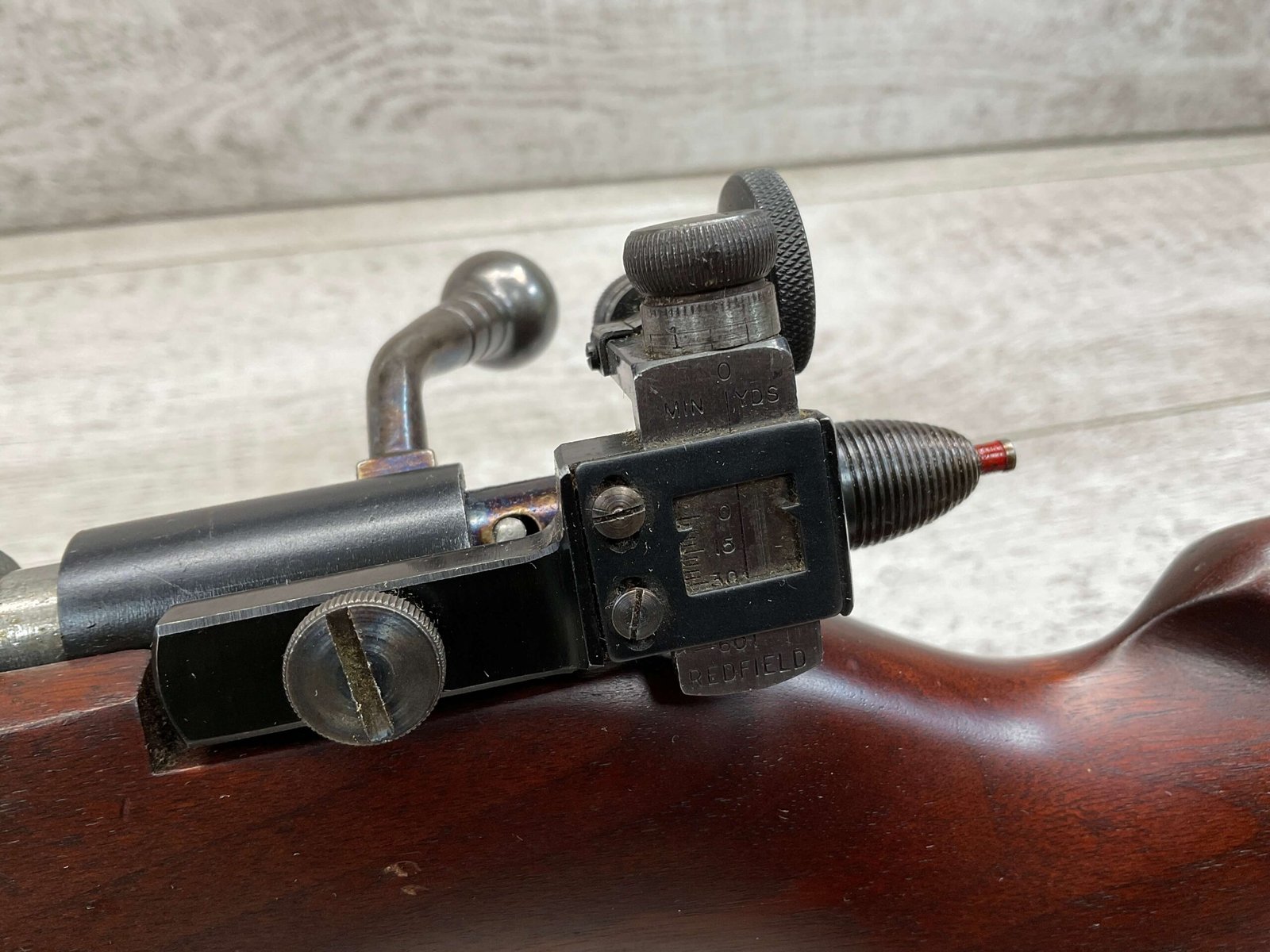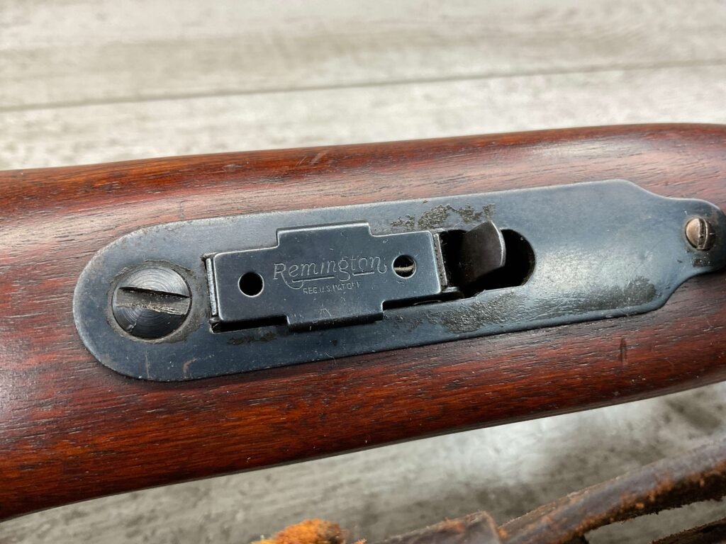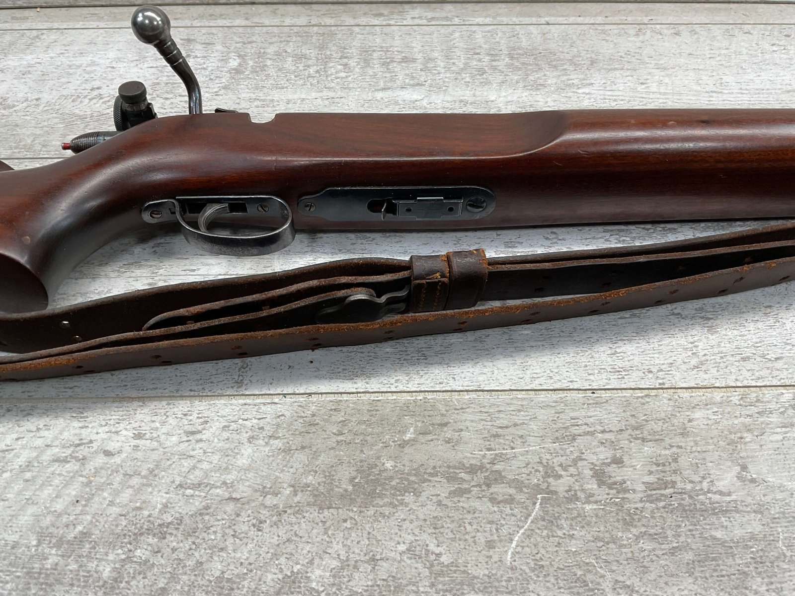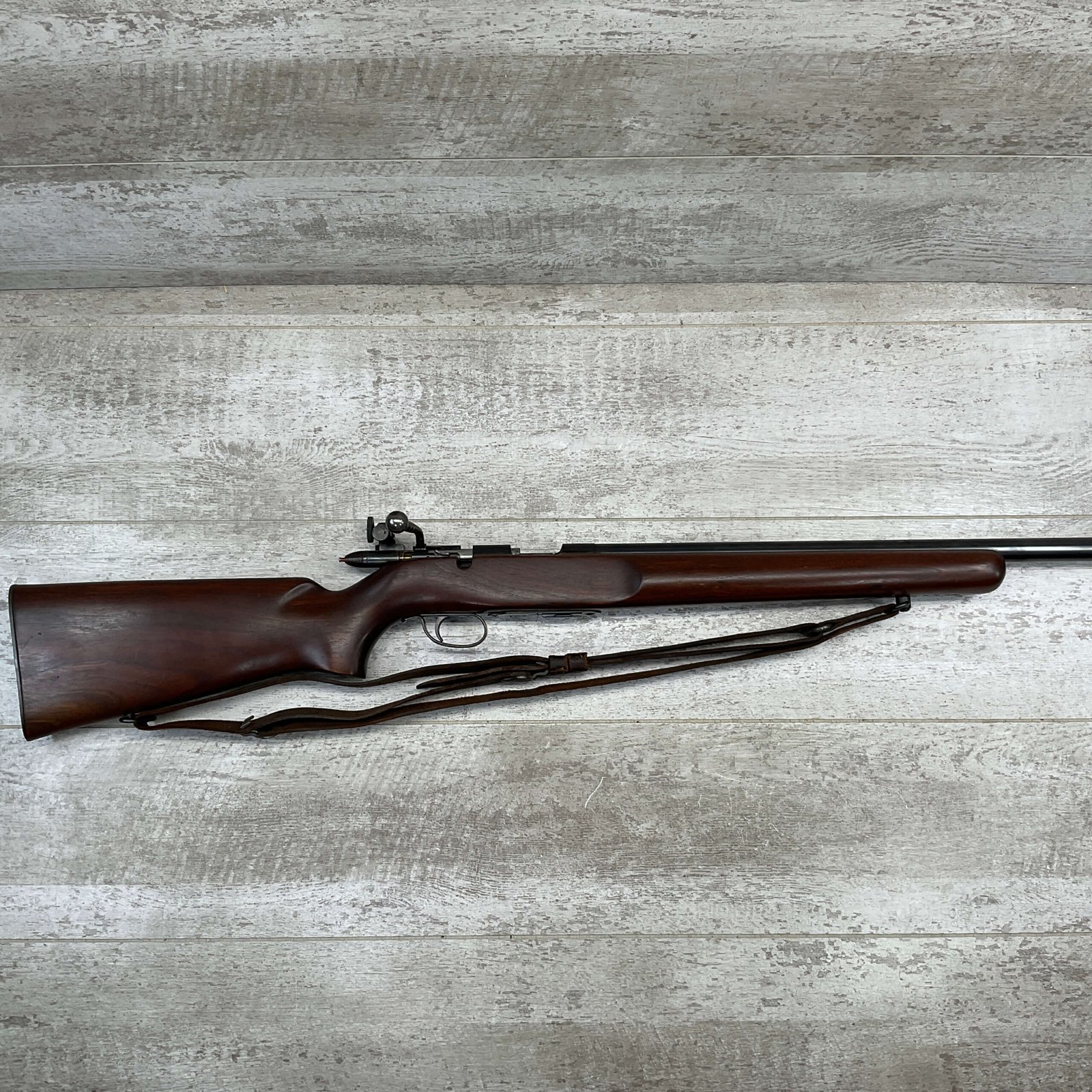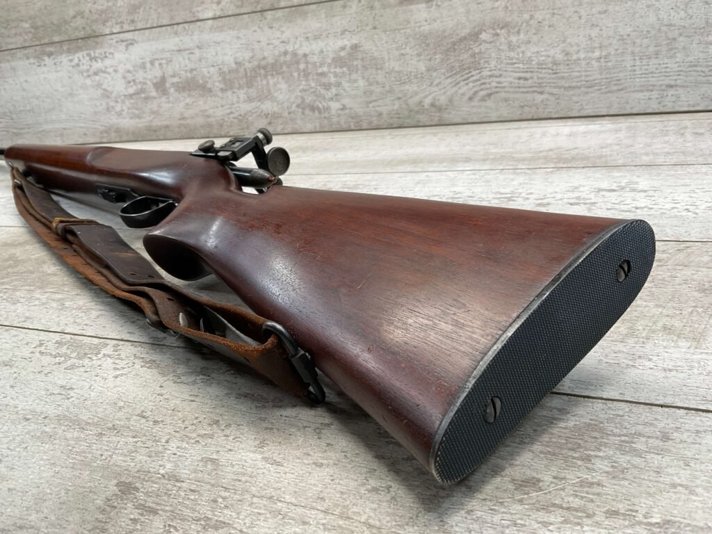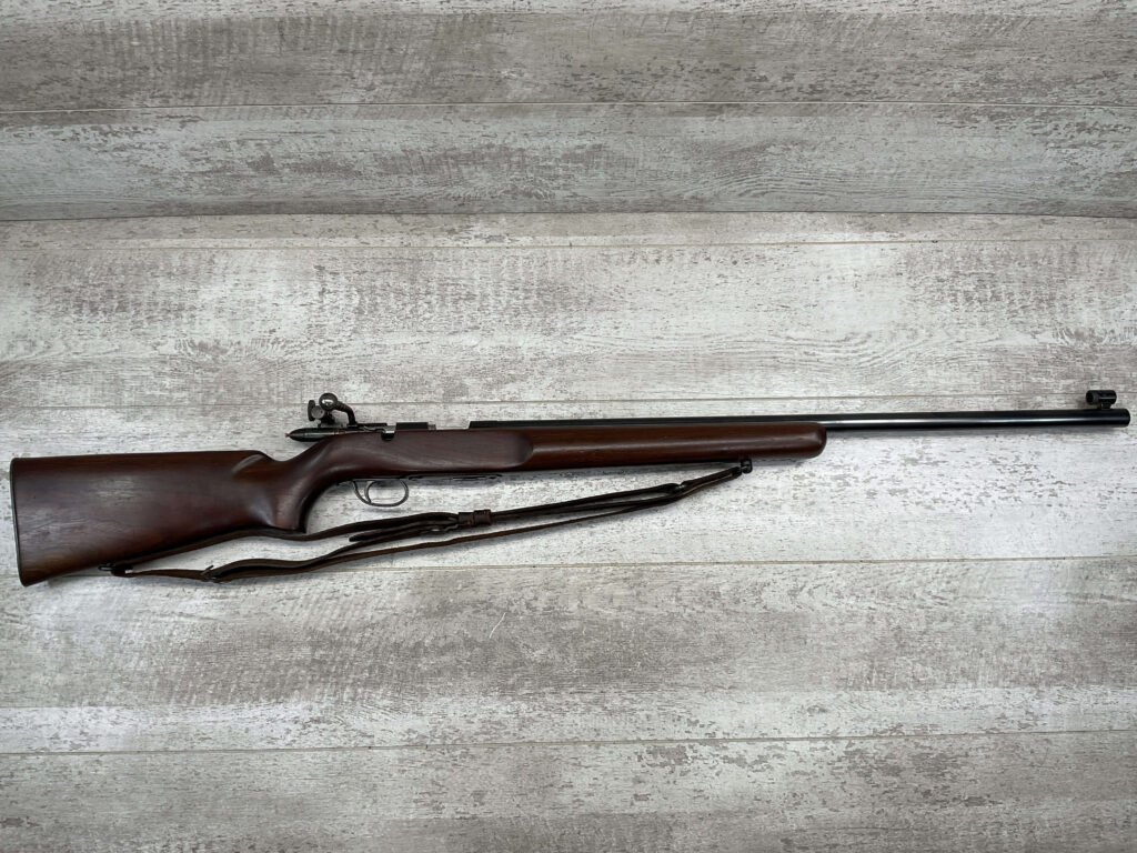 REMINGTON MODEL 513-T MATCHMASTER .22LR RIFLE #94107, 27″ HEAVY BARREL, EXC BORE & RIFLING, TARGET FRONT SIGHT, REDFIELD PEEP TARGET REAR SIGHT, EXC WALNUT STOCK W/ MINIMAL NICKS & DINGS, METAL BUTT PLATE, SLING SWIVELS, LEATHER SLING, 95%+ OVERALL