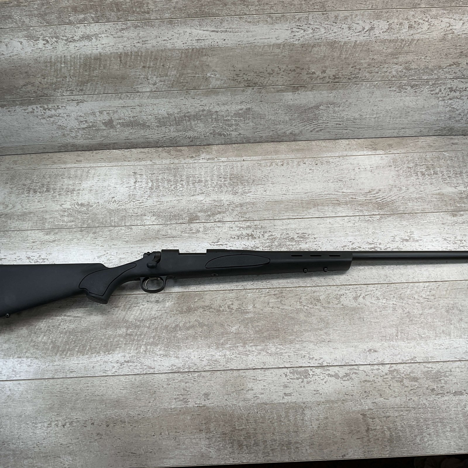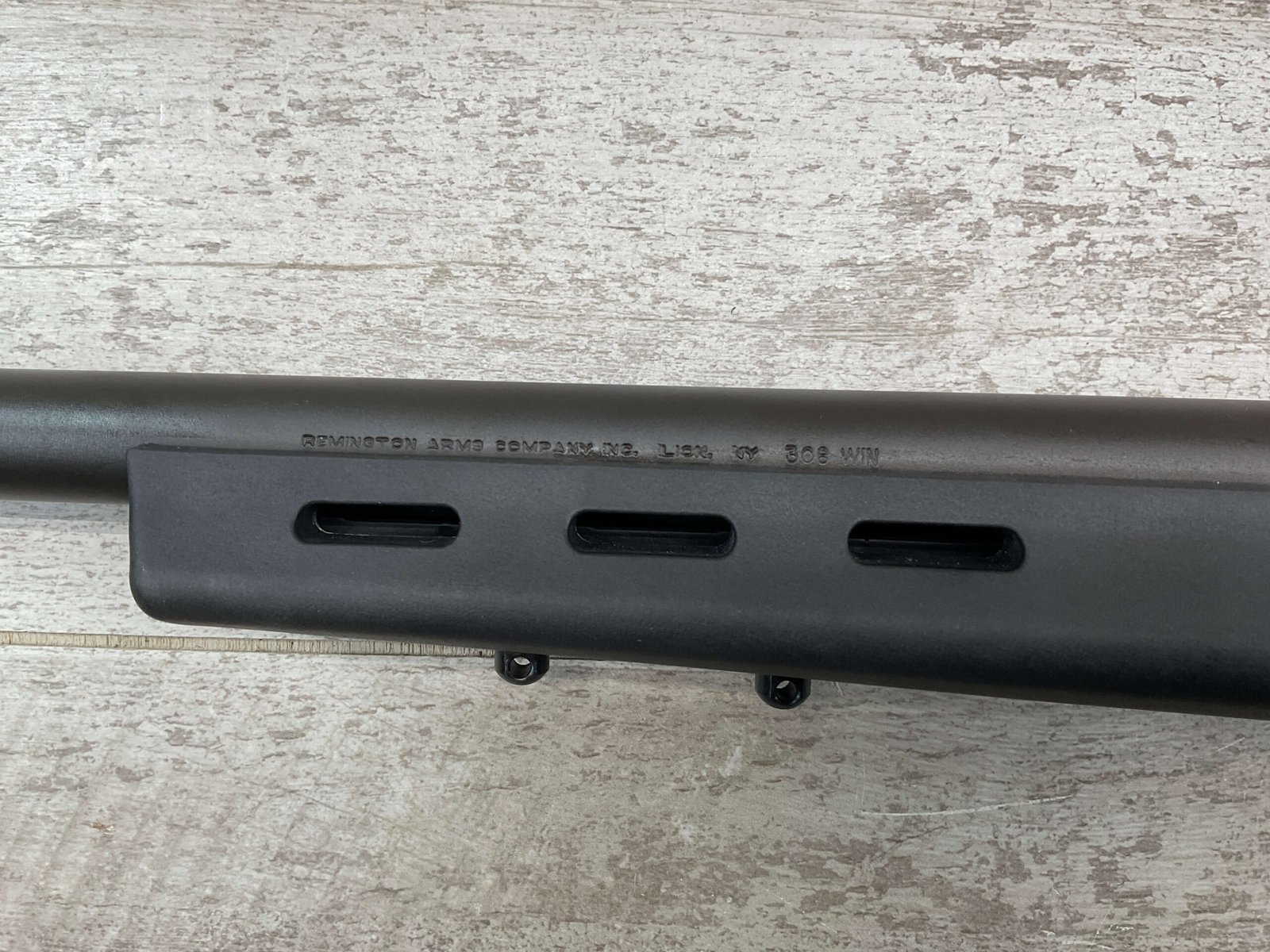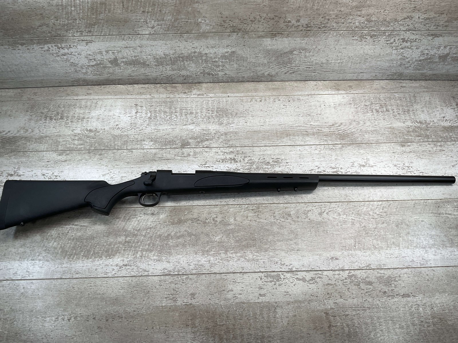 REMINGTON MODEL 700 SPS VARMINT .308 WIN BOLT ACTION #RR52203E, 26″Â HEAVY CARBON STEEL BARREL, X-MARK PRO TRIGGER, MATTE BLACK SYNTHETIC STOCK W/VENT BEAVERTAIL FOREND AND OVERMOLD GRIP PANELS, SYPERCELL RECOIL PAD, DUAL SLING SWIVELS, EXC MATTE BLUE FINISH, EXC BRIGHT BORE & RIFLING, DRILLED AND TAPPED FOR SCOPE MOUNTS, DOESN’T LOOK LIKE IT WAS EVER FIRED!!