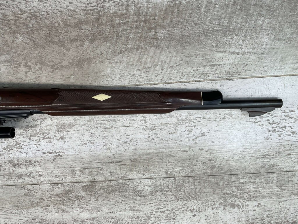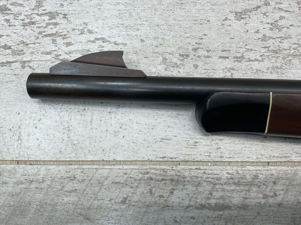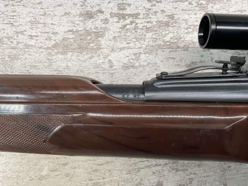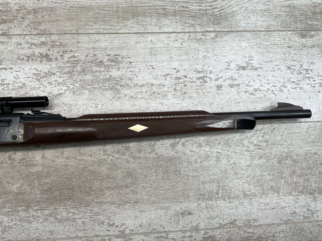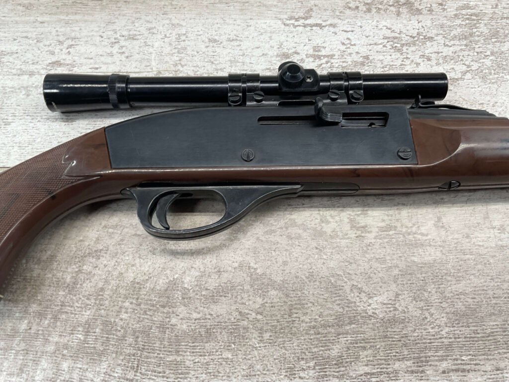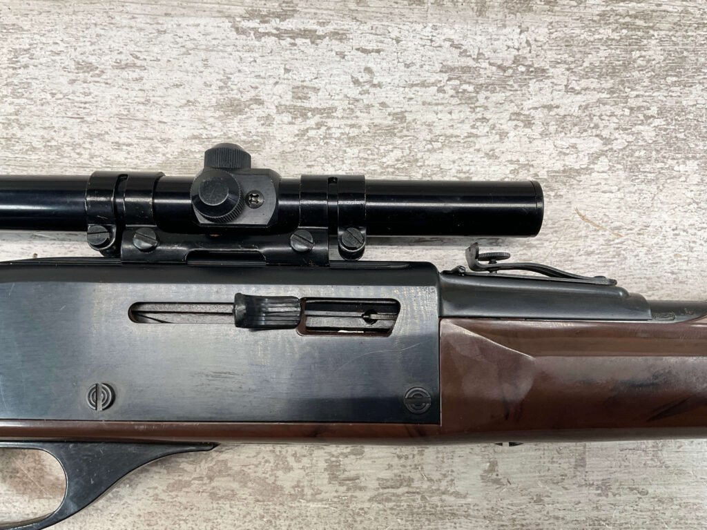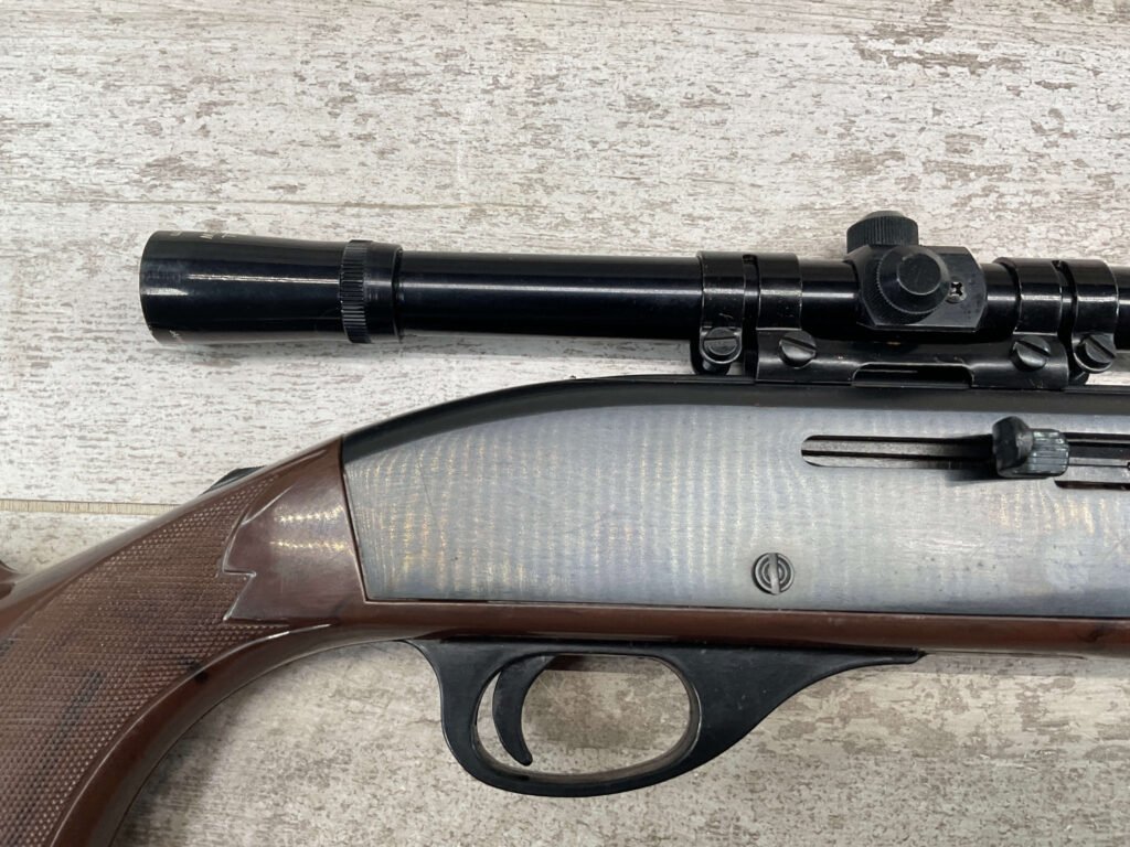 The synthetic stock was available in various colors, including black, brown, green, and white. The rifle also featured a grooved receiver for scope mounting. The Nylon 66 has a unique tubular magazine located in the stock, which contributes to its sleek and futuristic appearance.