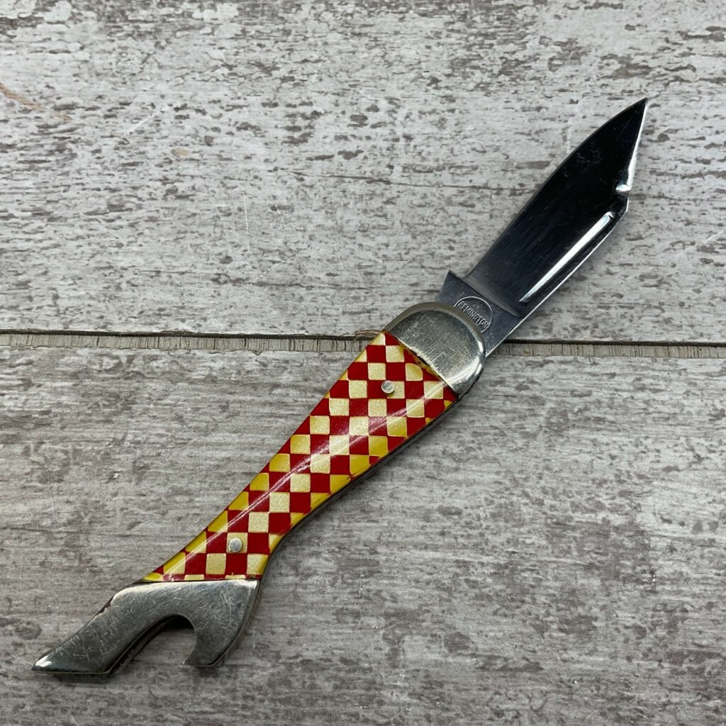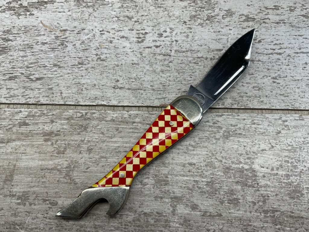 REMINGTON SINGLE BLADE LADY LEG KNIFE, BLADE HAS REMINGTON IN CIRCLE ON THE TANG, EXC, LUSTER ON THE BLADE, NO EVIDENCE OF SHARPENING. 95% COMPLETE KNIFE.