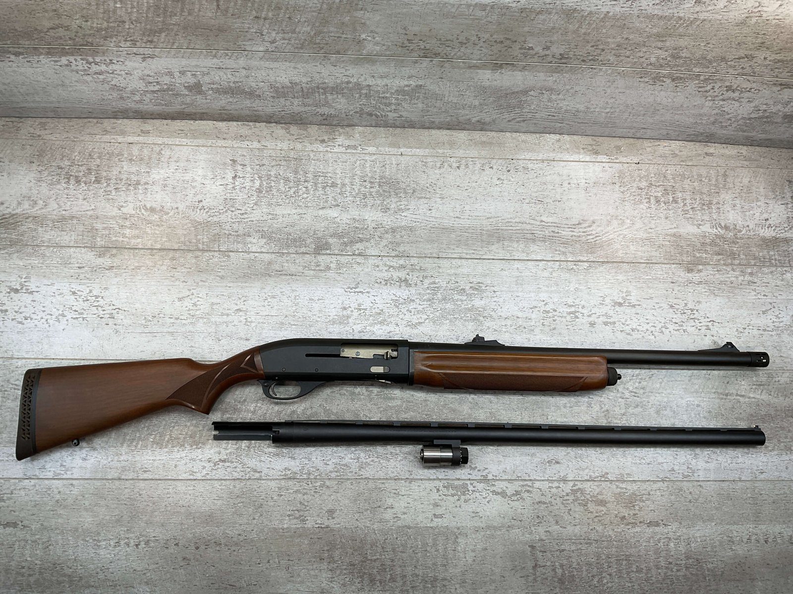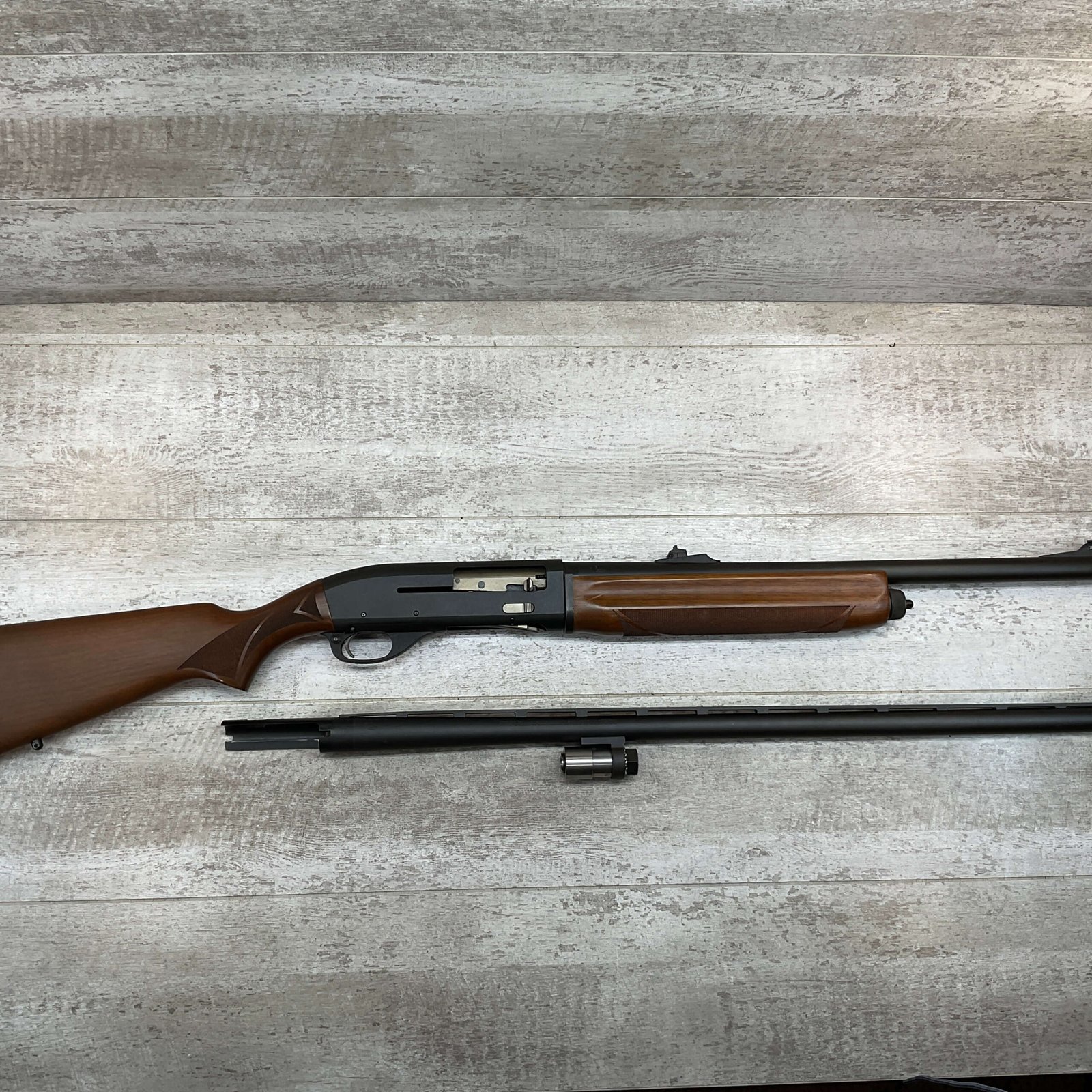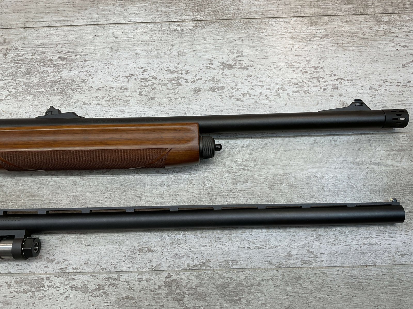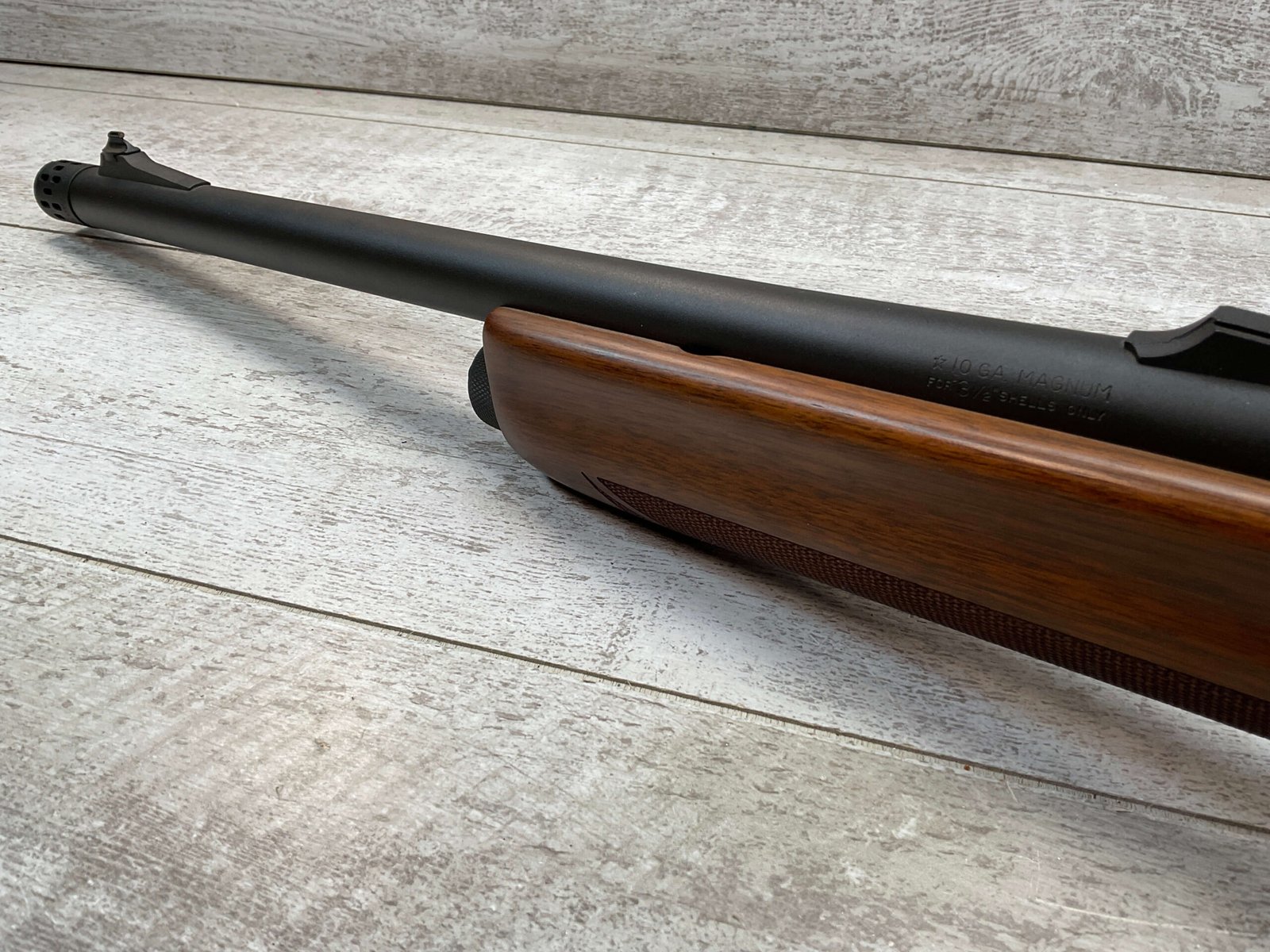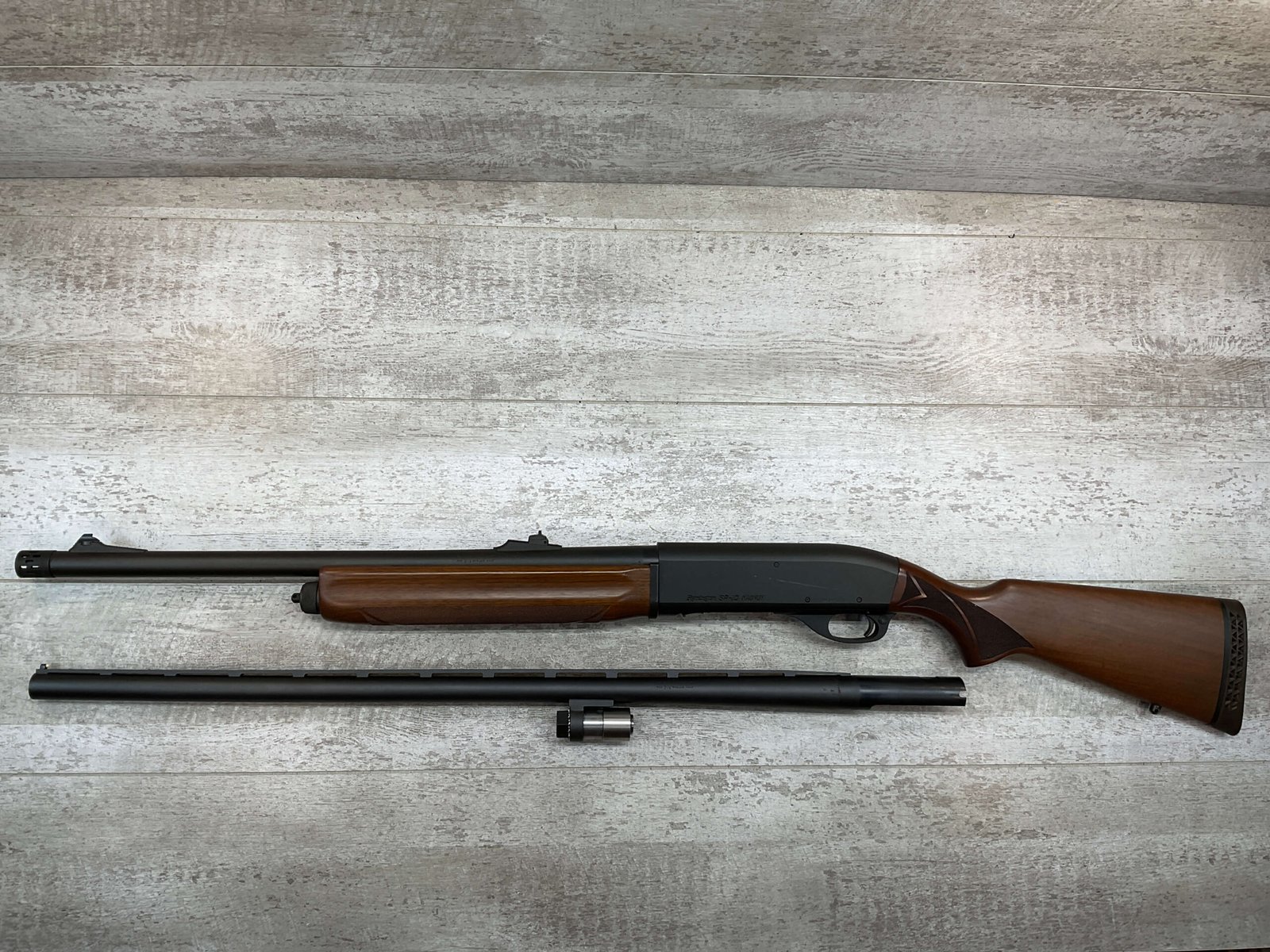 REMINGTON SP-10 10GA SHOTGUN W/TWO BARRELS #RM009136, 3 1/2″ CHAMBER, EXC CHECKERED WALNUT STOCK & FOREARM, EXC MATTE METAL FINISH, R3 RECOIL PAD, 22″ SLUG BARREL, 30″ MOD CHOKE BARREL, EXC LIKE NEW CONDITION