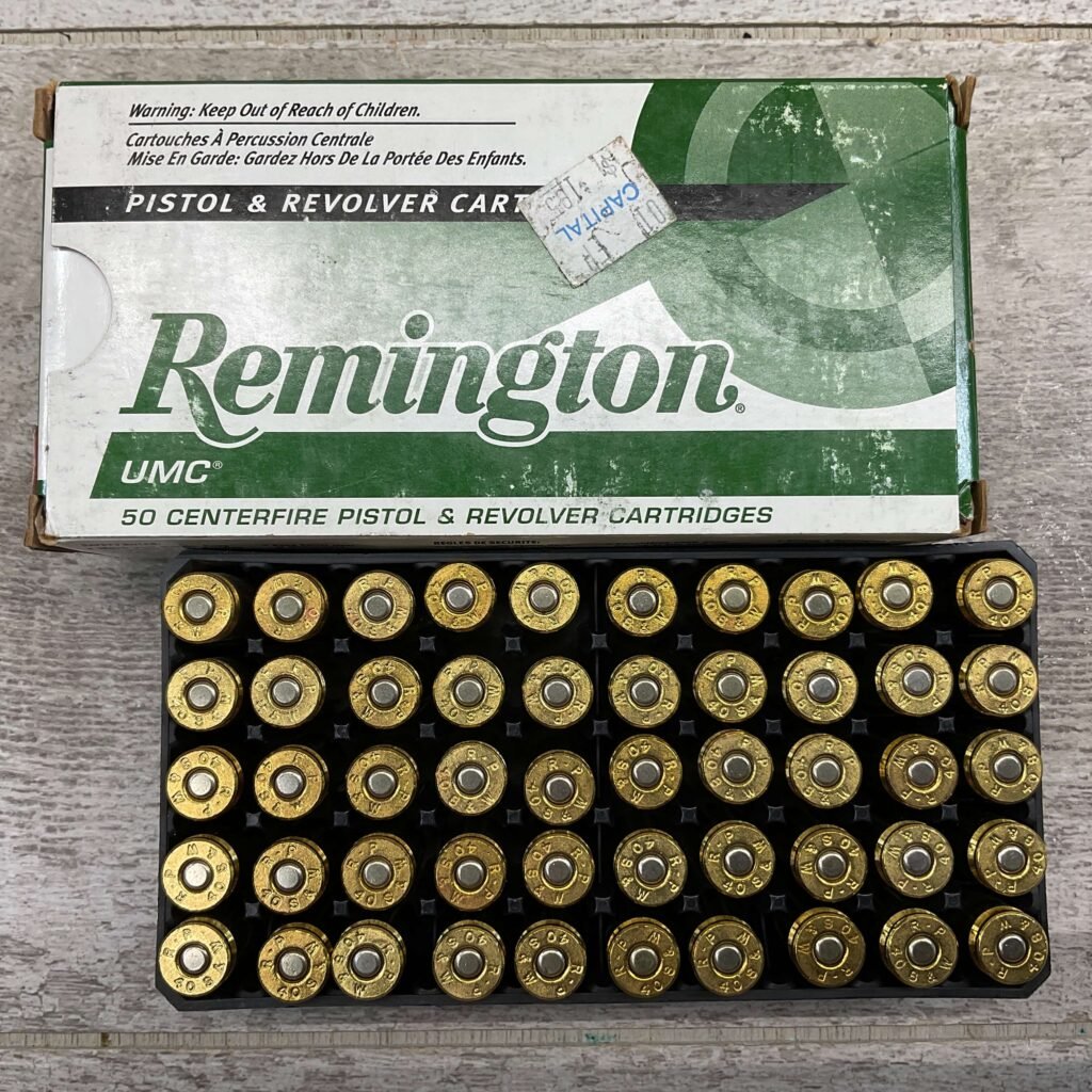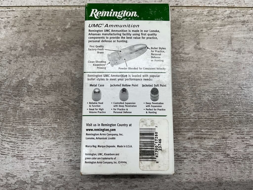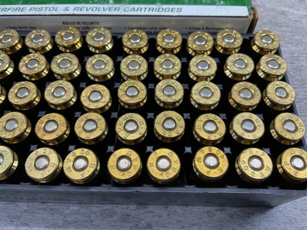 REMINGTON UMC 40 S&W, 165 GR., FULL BOX, BOX IS IN GOOD CONDITION WITH LIGHT WEAR.