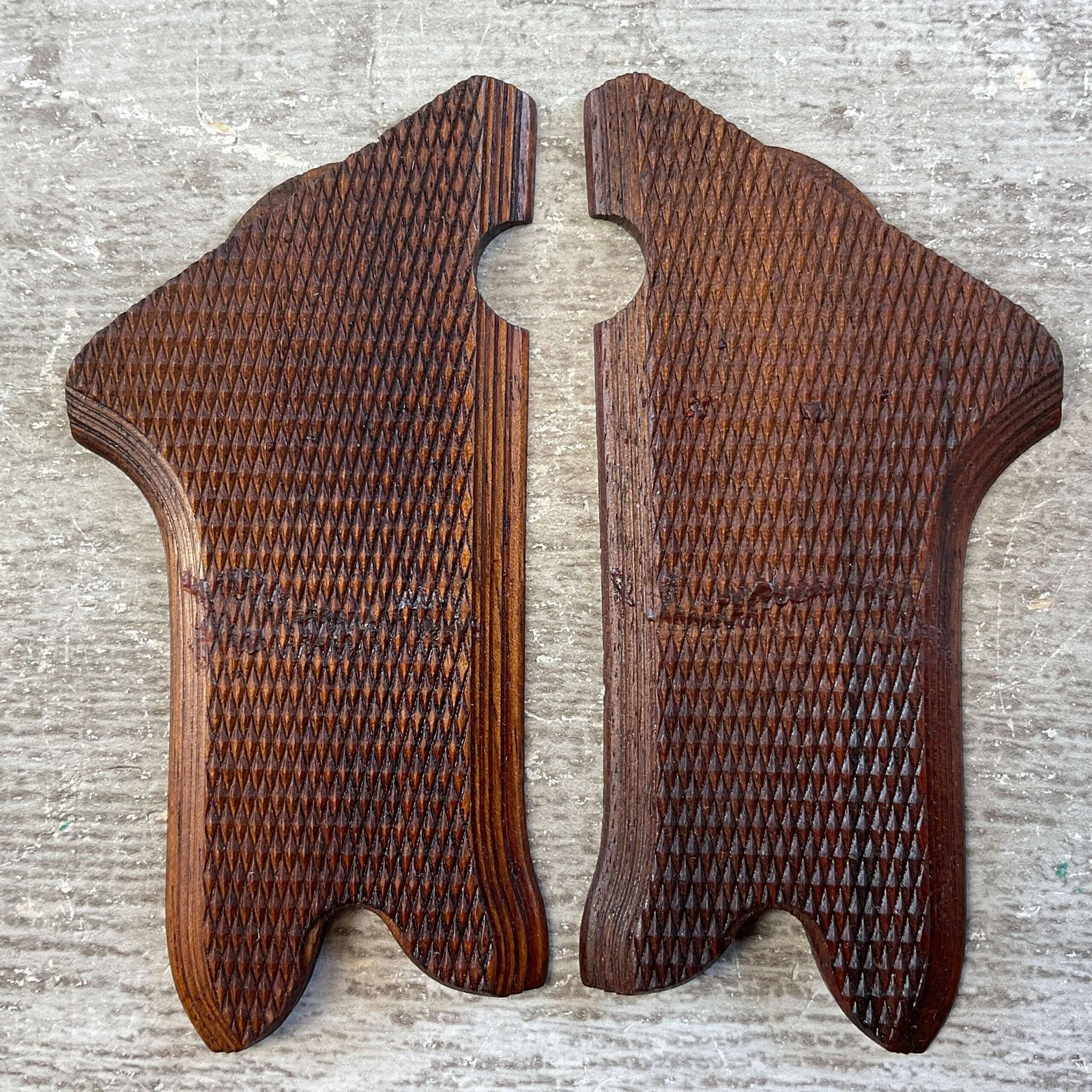 REPRODUCTION BABY LUGER P08 GRIPS, JAMES EARL JONES COLLECTION, WOOD GRIPS, IN GOOD CONDITION WITH SOME WEAR, SEE PICTURES FOR MORE DETAILS.