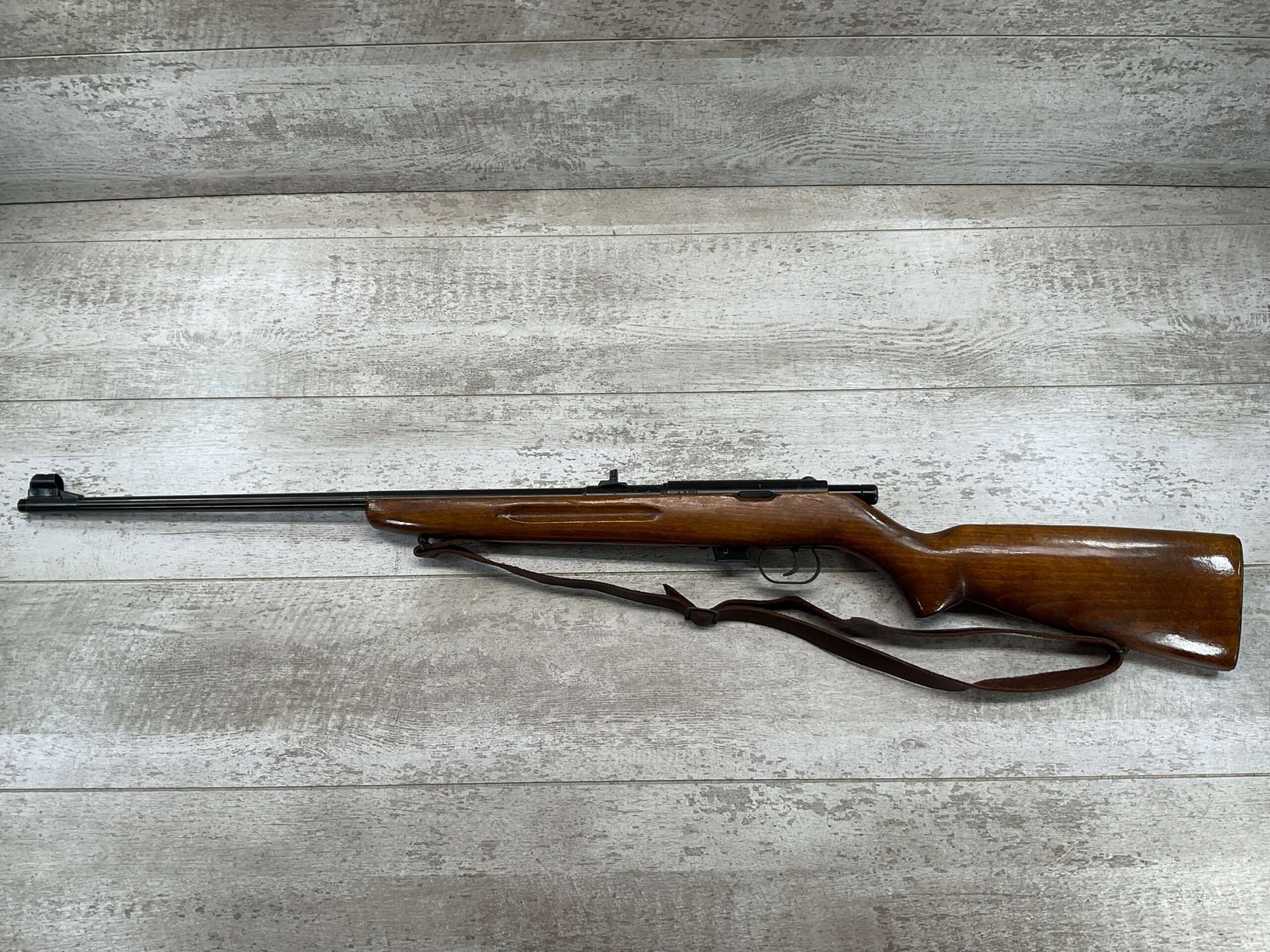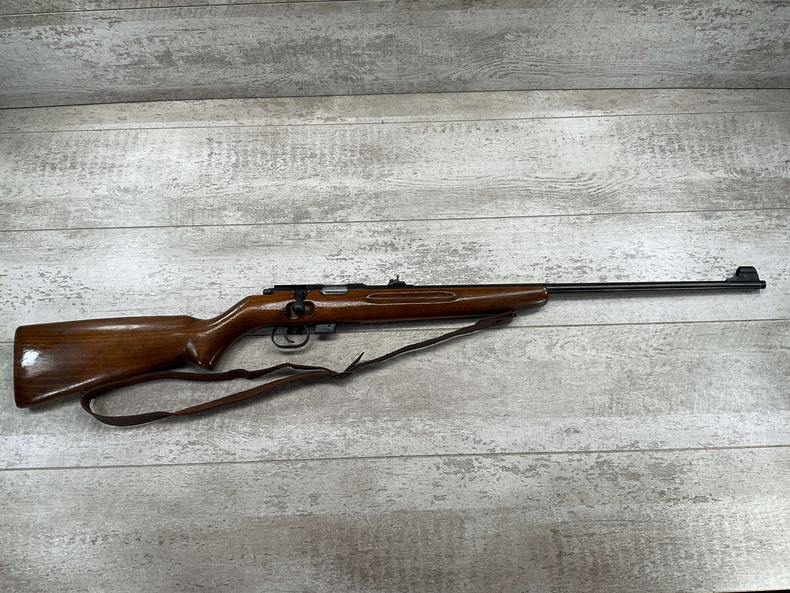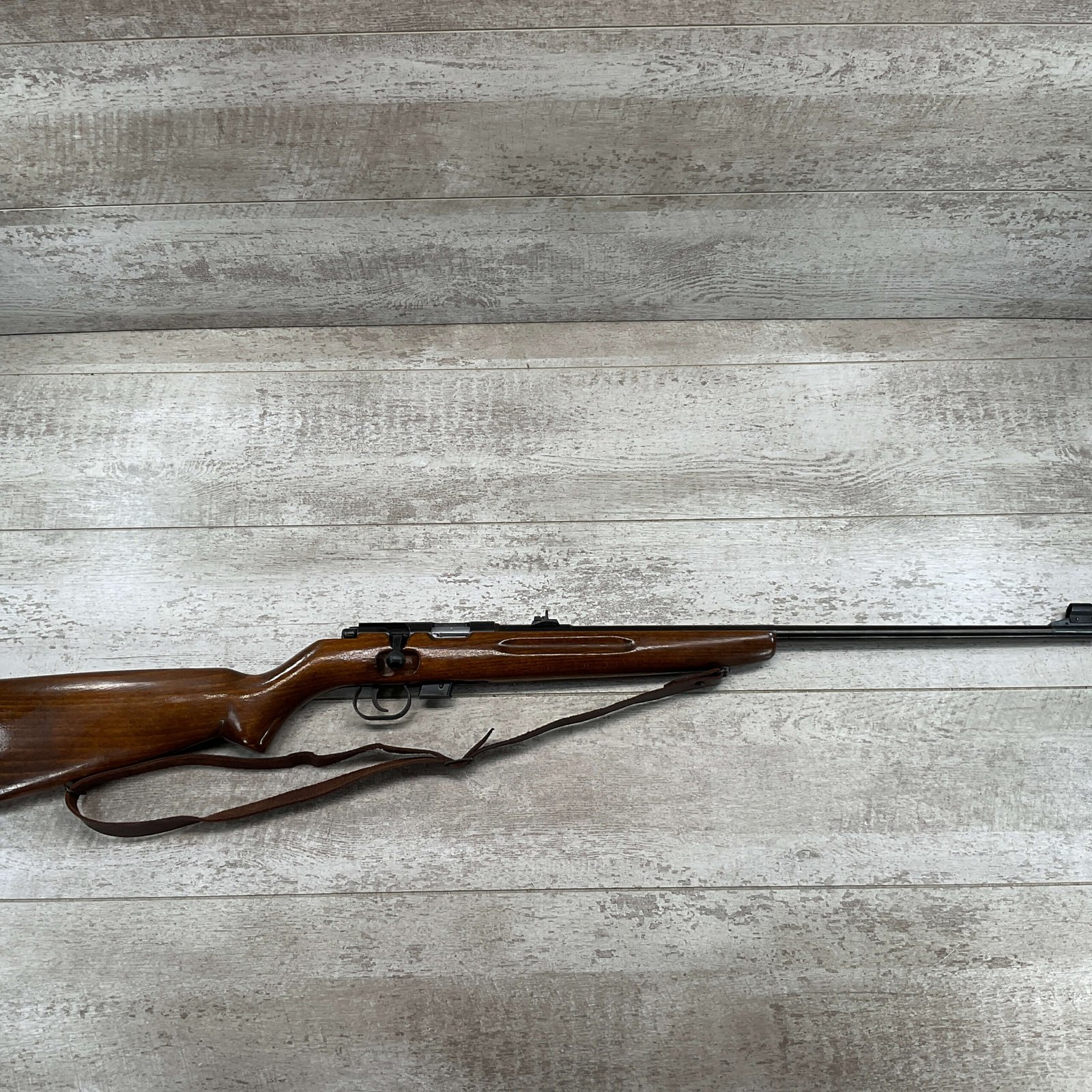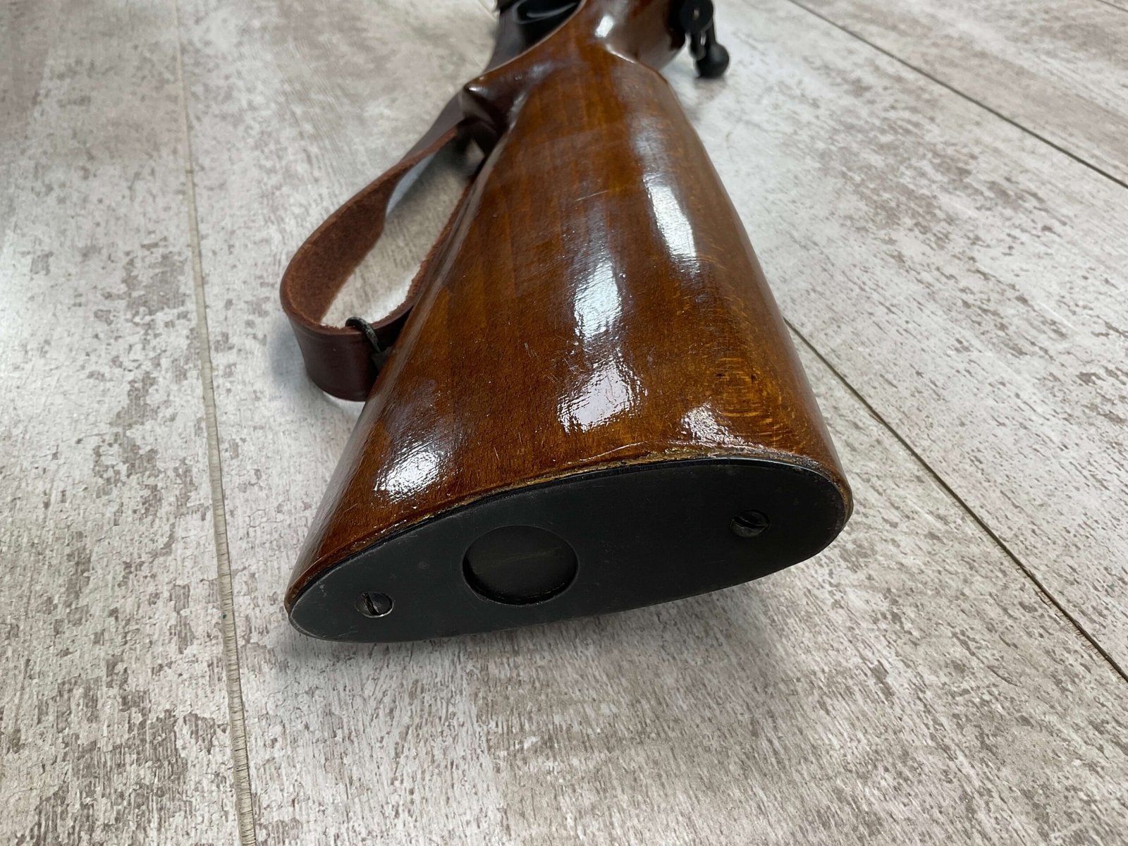 ROMANIAN M69 .22LR TRAINING RIFLE, IMC2 1984 MFR #G-6001, 23 1/4″ BBL, EXC SMOOTH WALNUT STOCK, MADE IN CUGIR ROMANIA, “RIBBED” BARREL, BLADE FRONT SIGHT W/HOOD, REAR STEEL LEAF SIGHT 25M W/TWO FOLD DOWN FOR 100M & 50M, ORIGINAL REMOVABLE 5 ROUND MAGAZINE, TRAPDOOR IN BUTT PLATE W/CLEANING KIT, SLING SWIVELS AND LEATHER SLING, EXC MIRROR BORE & RIFLING, 95+% OVERALL