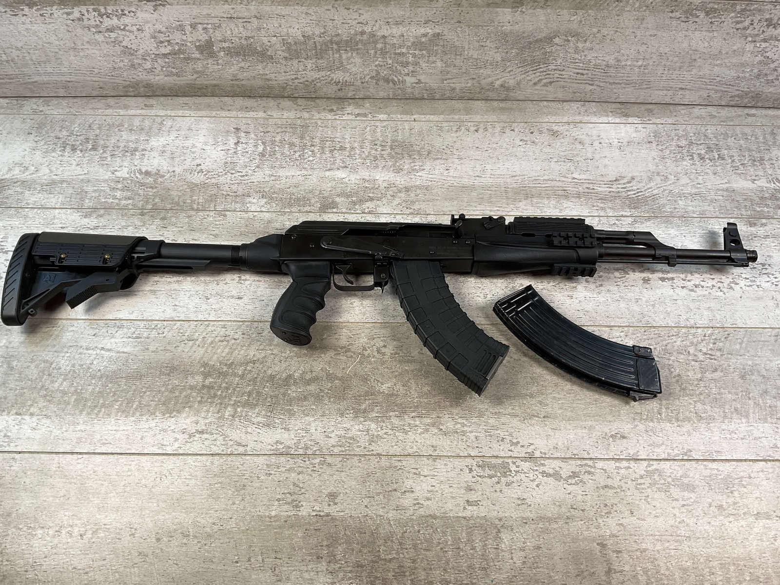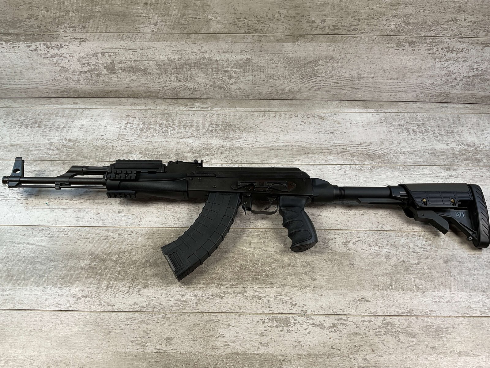 ROMARM SA/CUGIR/CAI WASR (AK-47) 10/63 7.62X39 SEMI AUTO RIFLE #KN4739, EXC BORE & RIFLING, TAPCO G2 TRIGGER, ATI AK-47 STRIKEFORCE ELITE ULTIMATE PROFESSIONAL PACKAGE, ATI COLLAPSABLE STOCK, ATI FRONT FOREND W/ PICATINNY RAILS, ATI POLYMER GRIPS, OVERALL CONDITION AS SHOWN IN PICTURES
