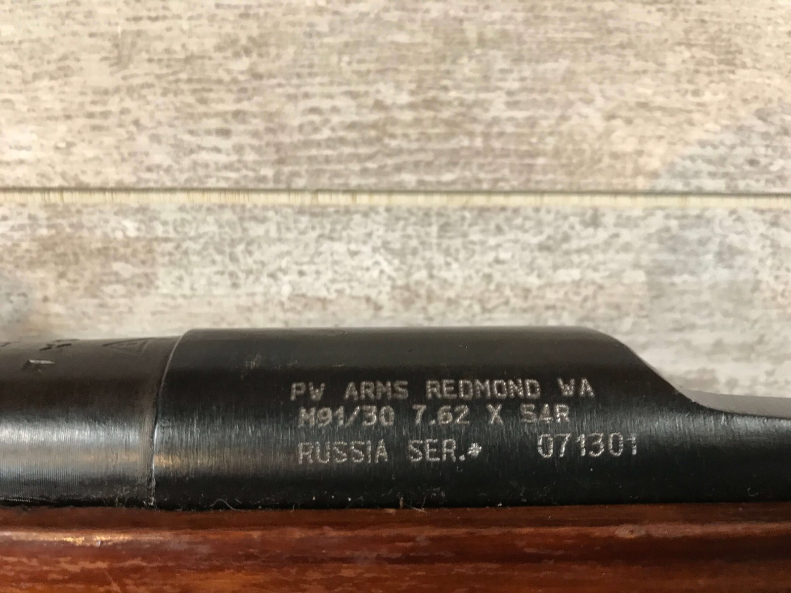 RUSSIAN M91/30 MOSIN NAGANT 1943 7.62X54R RIFLE, #1223 PW ARMS IMPORT MARKED #071301, WOOD REFINISHED, ALL MATCHING (INCL BAYO), BRIGHT BORE, ORIG CLEANING ROD & BAYO,