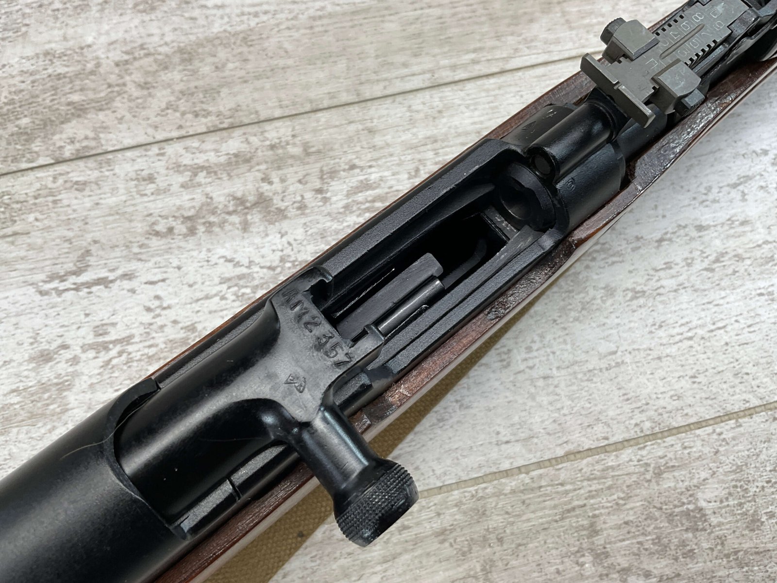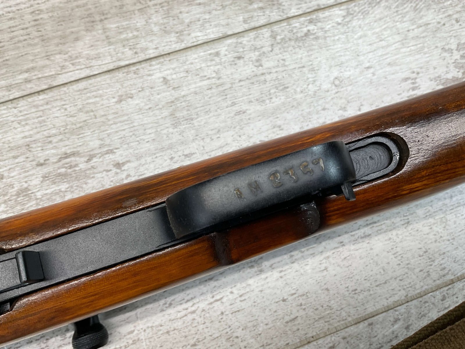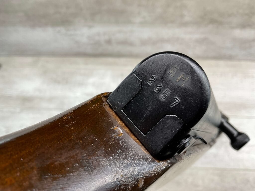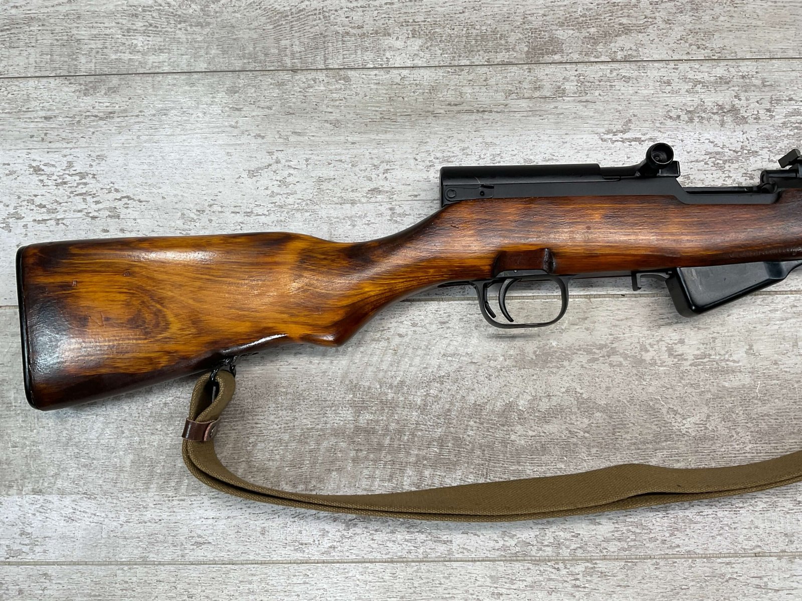 RUSSIAN TULA SKS 7.62X39 RIFLE W/BAYONET, 1955/56 MFR #2357 / RH007712, 7.62X39MM, 20″ BARREL, EXC SOLID BIRCH WOOD STOCK, BLADE BAYONET, TEN ROUND MAGAZINE, EVERYTHING MATCHES, CLEANING ROD, ARSENAL REFINISHED, CLEANING KIT IN TRAPDOOR OF BUTT STOCK, CANVAS SLING, STRIPPER CLIPS, ORIGINAL BOX, KBI INC IMPORT MARK ON LEFT SIDE OF RECEIVER, 98+% OVERALL