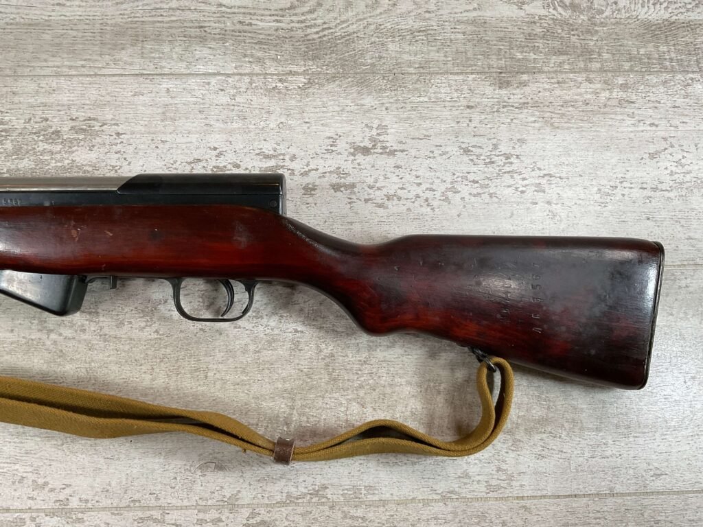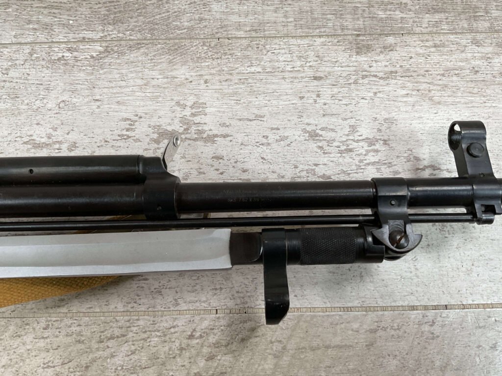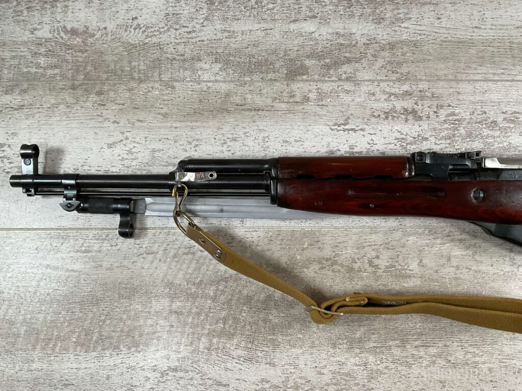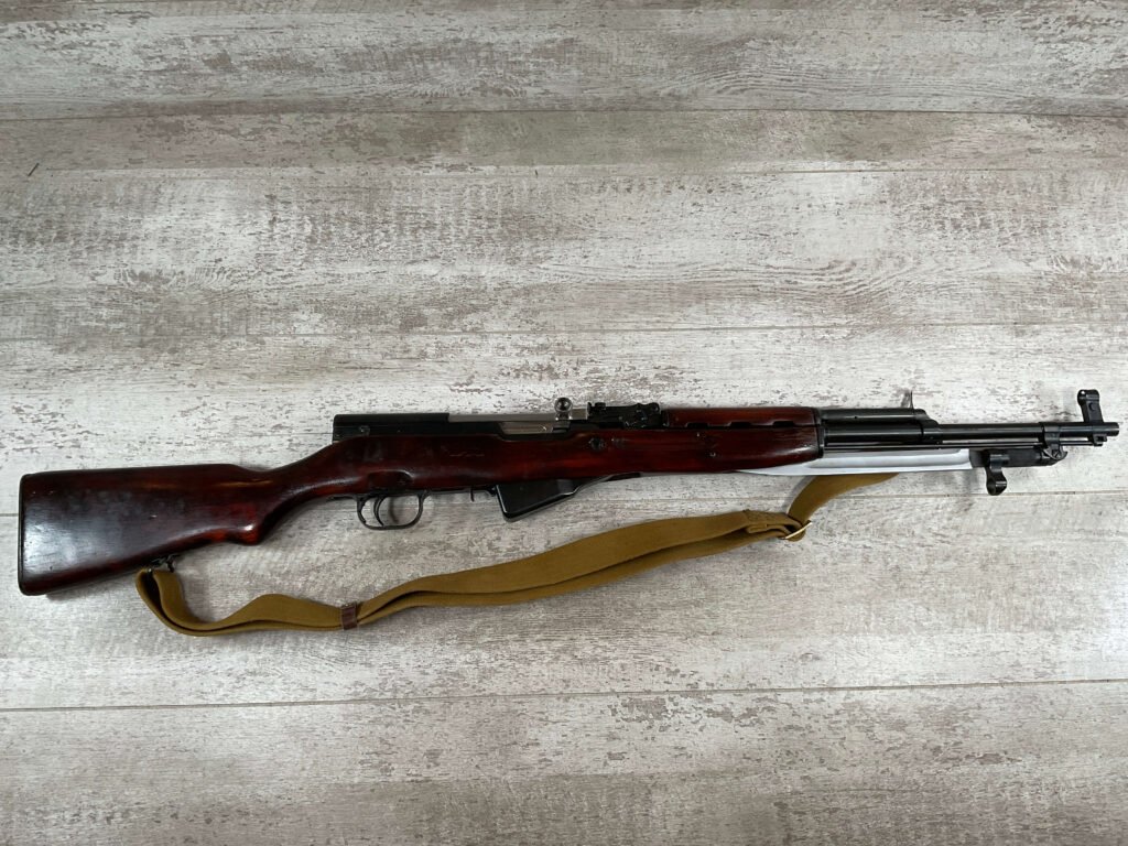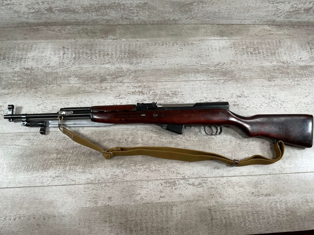 RUSSIAN TULA SKS 7.62X39 RIFLE #LA6567, 20″ BARREL, EXC LAMINATED WOOD STOCK, 1954 DATE, BLADE BAYONET, TEN ROUND MAGAZINE, EVERYTHING MATCHES BUT THE MAGAZINE, CLEANING ROD, CLEANING KIT IN TRAPDOOR OF BUTT STOCK, CANVAS SLING, LIGHT CAI IMPORT MARK ON RIGHT SIDE OF BARREL,