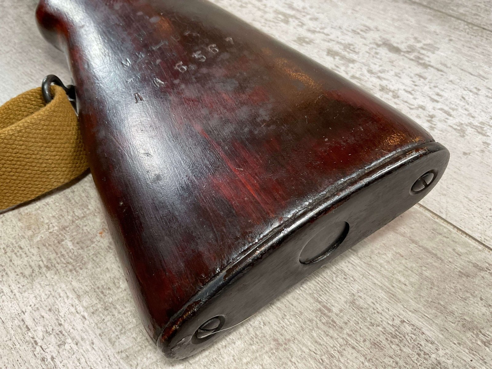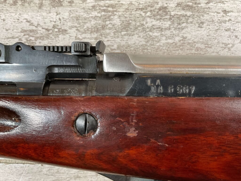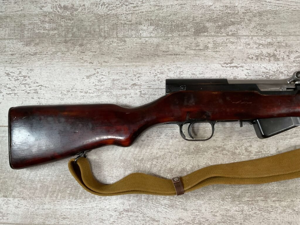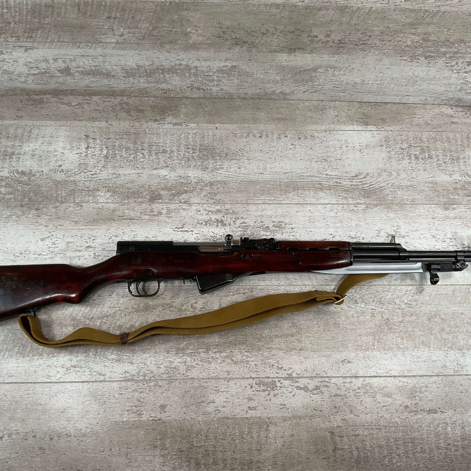 RUSSIAN TULA SKS 7.62X39 RIFLE #LA6567, 20″ BARREL, EXC LAMINATED WOOD STOCK, 1954 DATE, BLADE BAYONET, TEN ROUND MAGAZINE, EVERYTHING MATCHES BUT THE MAGAZINE, CLEANING ROD, CLEANING KIT IN TRAPDOOR OF BUTT STOCK, CANVAS SLING, LIGHT CAI IMPORT MARK ON RIGHT SIDE OF BARREL,