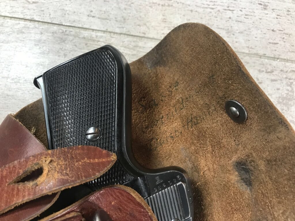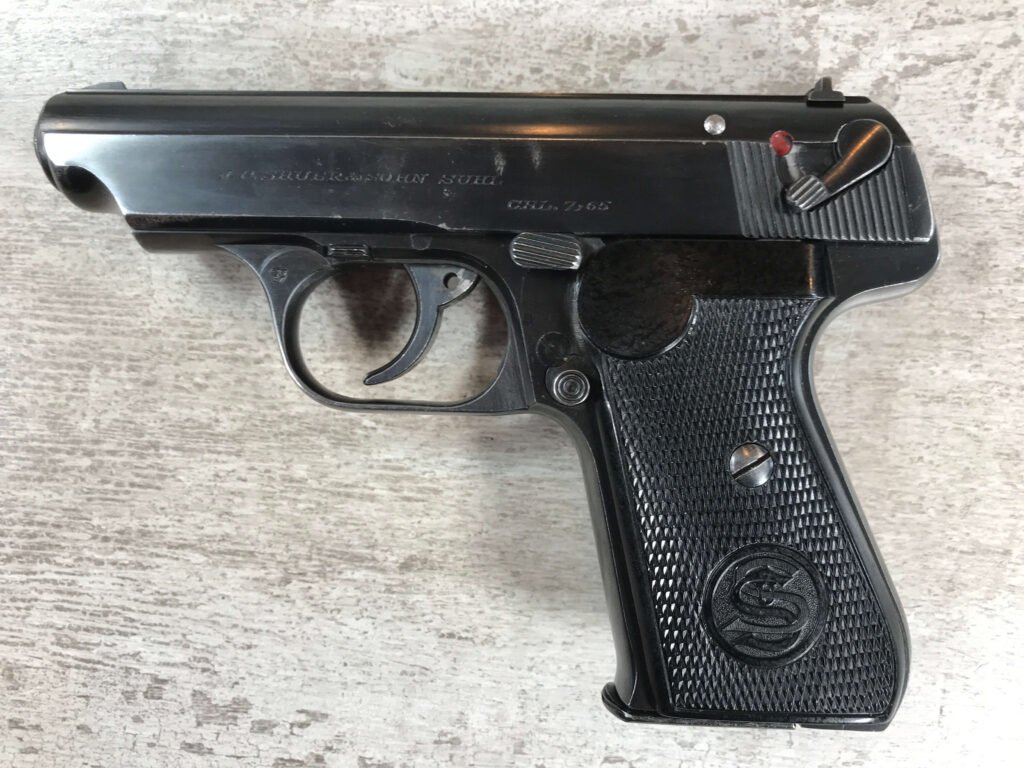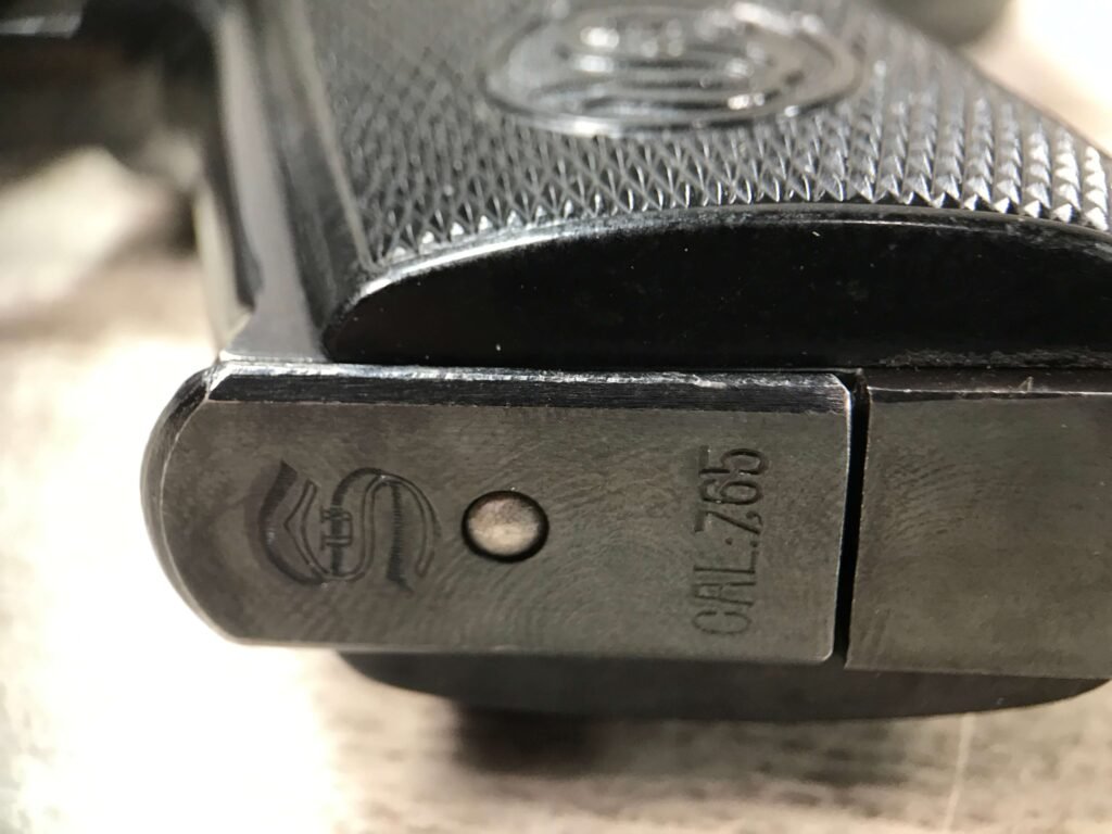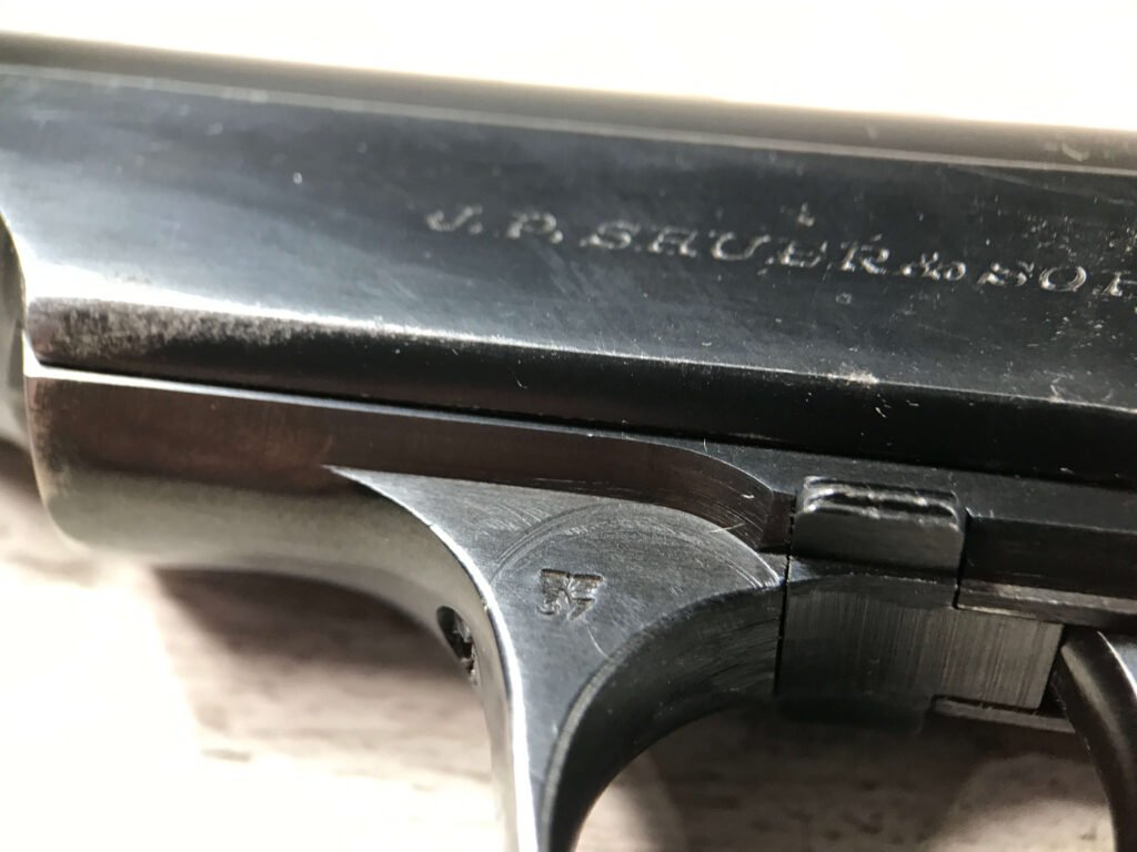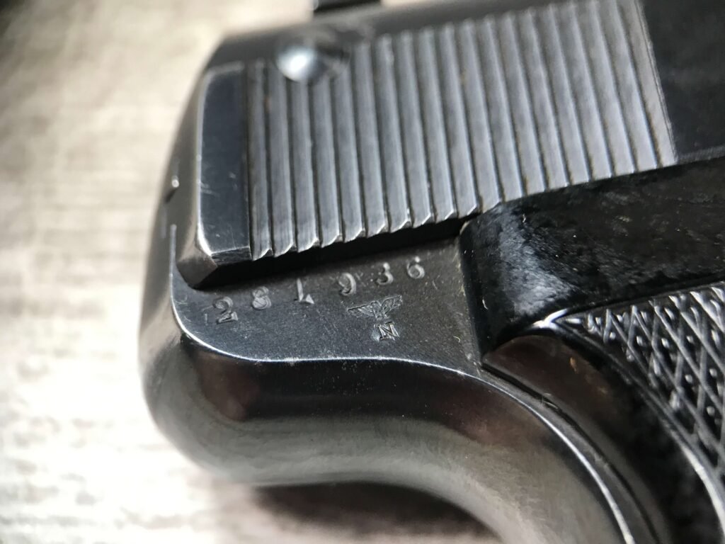 SAUER 38H EAGLE/N 7.65MM (.32 ACP) NAZI POLICE PISTOL #325459, 1ST VARIATION, EAGLE/N BELOW SERIAL NUMBER ON RIGHT SIDE OF FRAME & ABOVE ON THE SLIDE, NAZI POLICE “EAGLE/C” ON LEFT SIDE OF TRIGGER GUARD, NO IMPORT MARKS, EXC. GRIPS, EXC BRIGHT BORE, 97%+