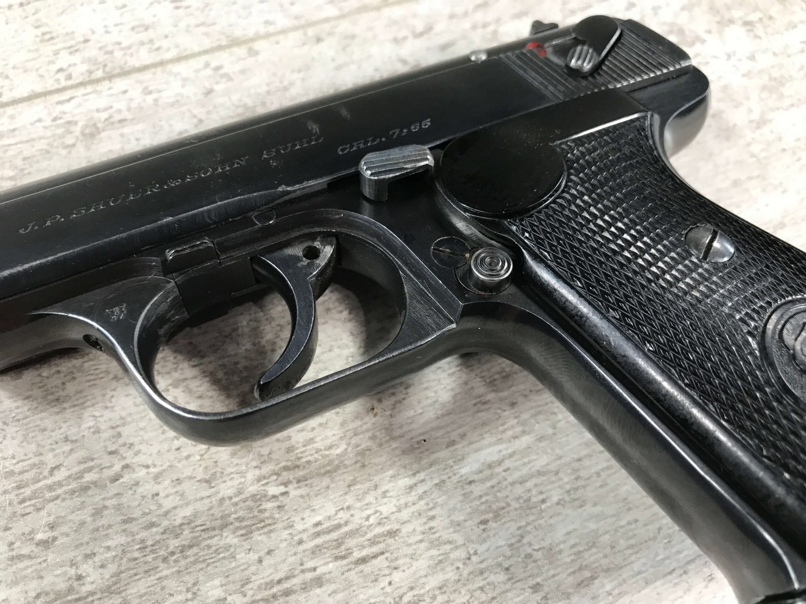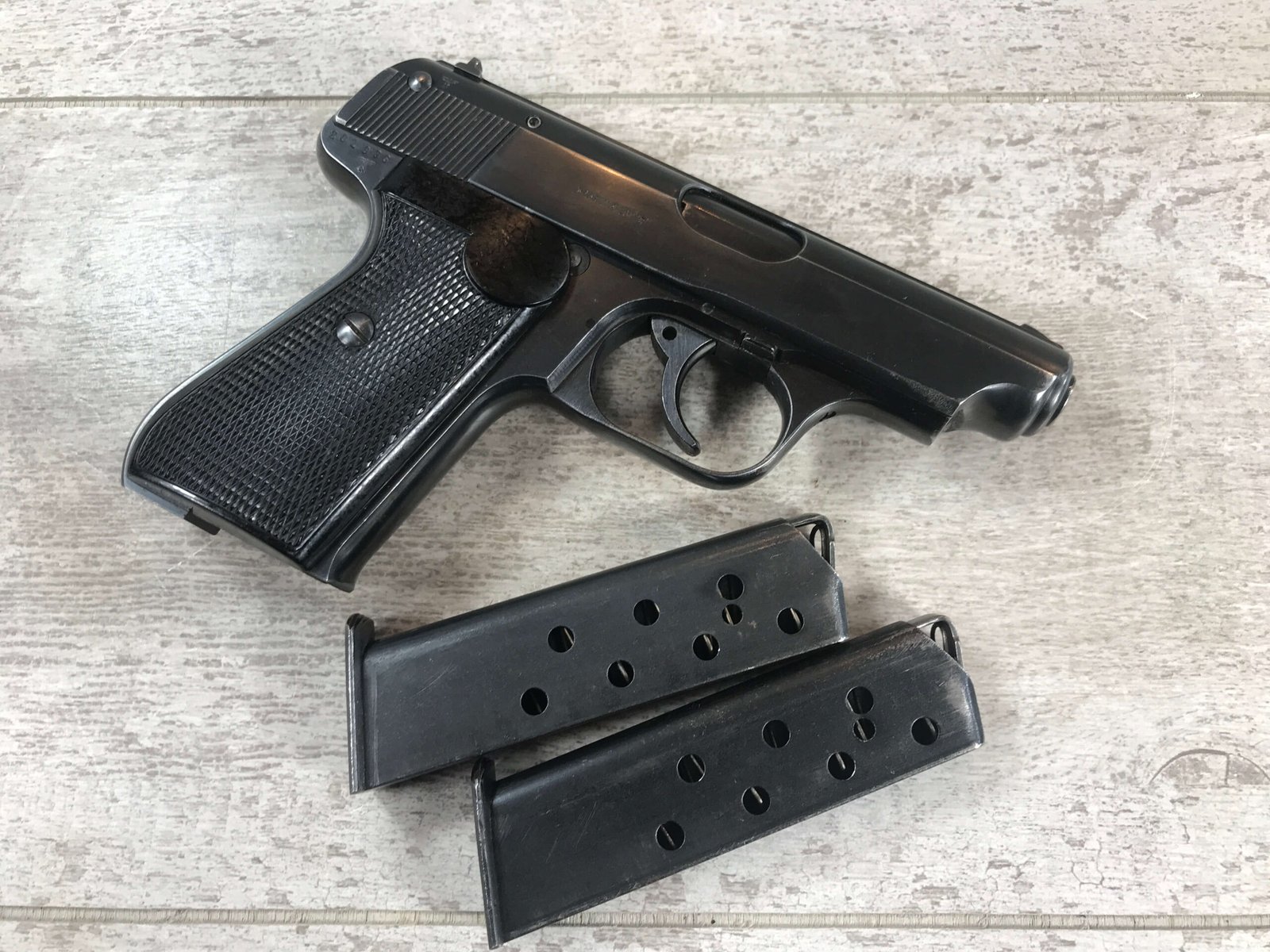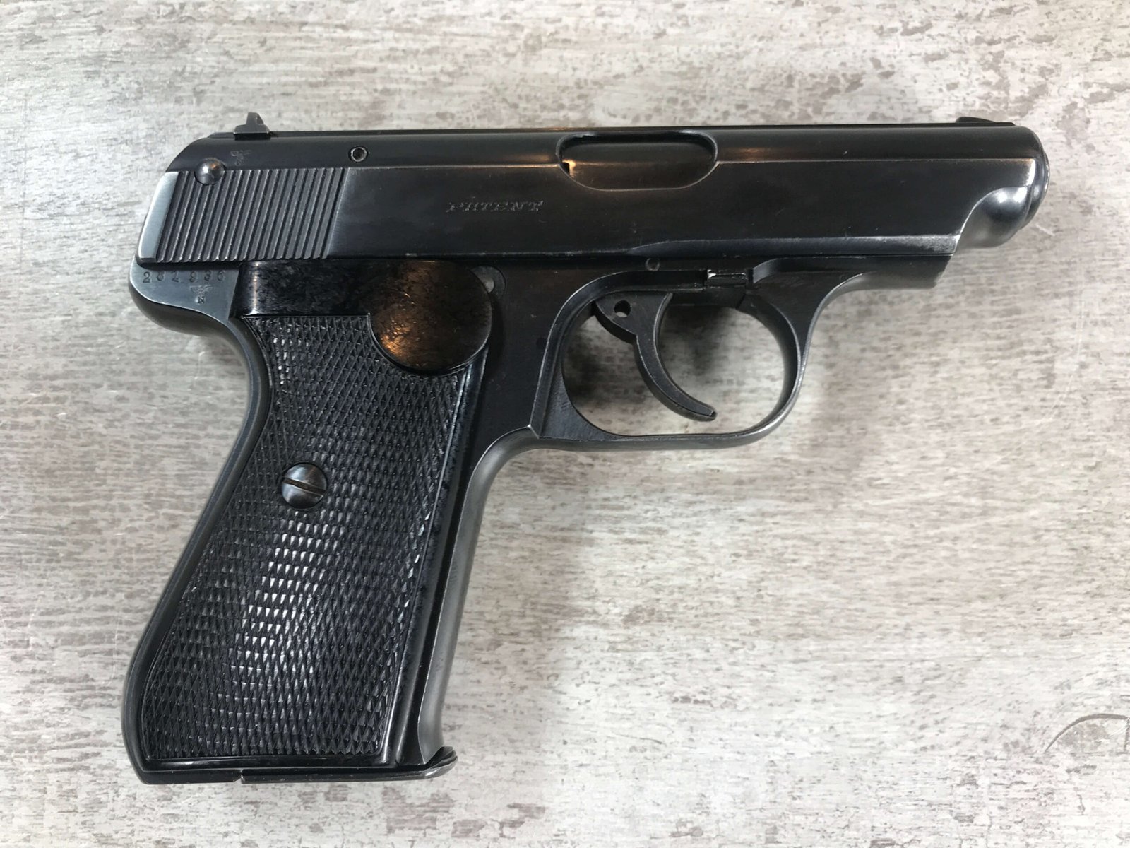 SAUER 38H EAGLE/N 7.65MM (.32 ACP) NAZI POLICE PISTOL #325459, 1ST VARIATION, EAGLE/N BELOW SERIAL NUMBER ON RIGHT SIDE OF FRAME & ABOVE ON THE SLIDE, NAZI POLICE “EAGLE/C” ON LEFT SIDE OF TRIGGER GUARD, NO IMPORT MARKS, EXC. GRIPS, EXC BRIGHT BORE, 97%+