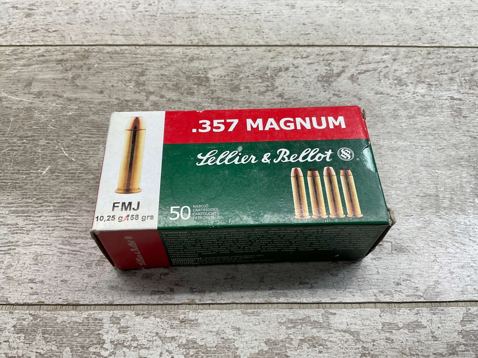 SELLIER & BELLOT .357 MAGNUM, FMJ, 158 GRN AMMO, FULL BOX QTY 50 ROUNDS