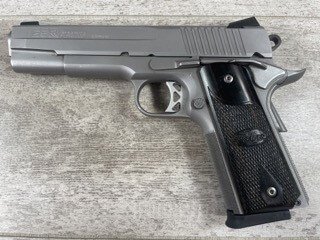 SKU#012 SIG ARMS GSR REVOLUTION 1911 .45 ACP PISTOL #GS05774, 5″ BARREL, STAINLESS STEEL, SIG CHECKERED GRIPS, 8 SHOT MAG, MIRROR BORE W/SHARP RIFLING, 98+% OVERALL