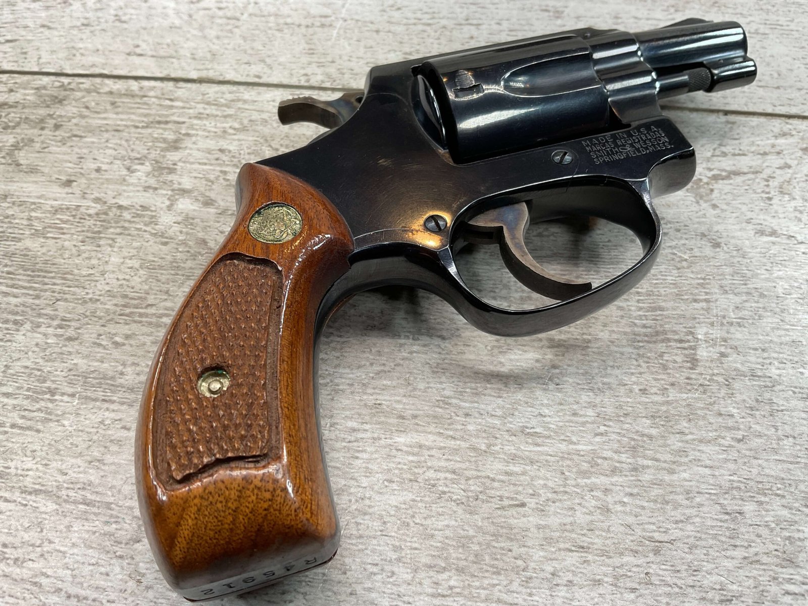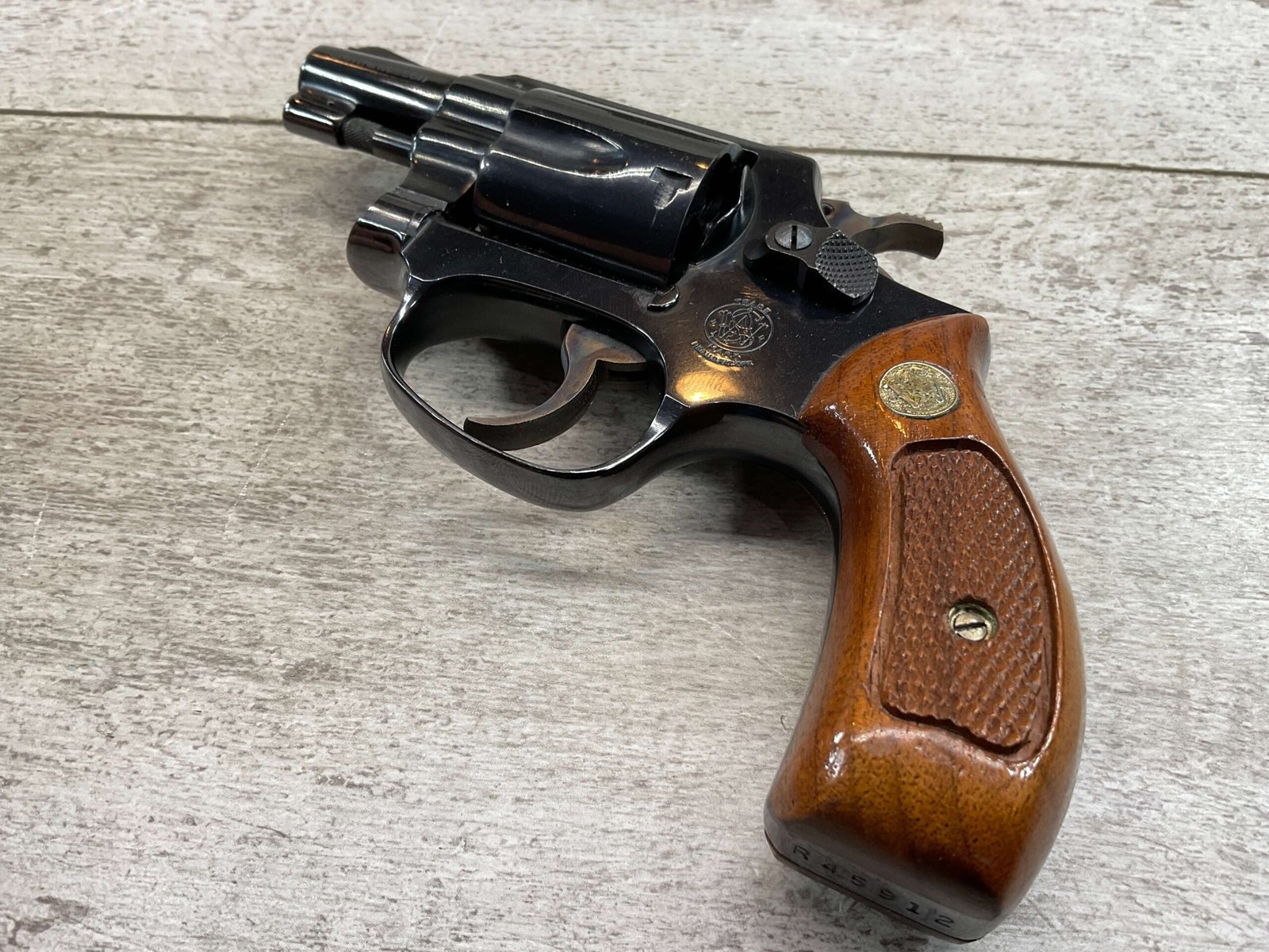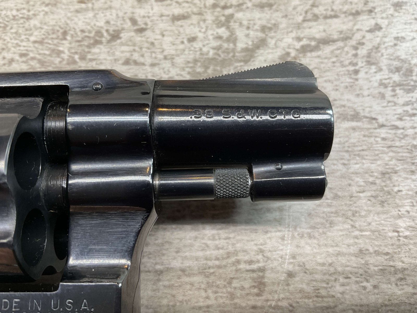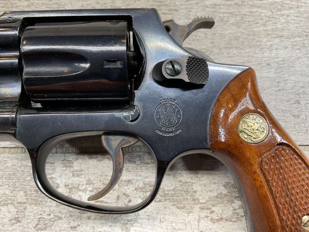 SMITH & WESSON .38S&W DA TERRIER MODEL REVOLVER #R45912, 5 SHOT, 2″ BARREL, 95+% ORIGINAL BLUE FINISH, VERY LIGHT HANDLING MARKS, EXC BORE & RIFLING (9.5+/10), EXCELLENT STRONG ACTION/LOCKUP, AUTO EJECTING, EXC S&W TRADEMARKED CHECKERED WALNUT GRIPS, CASE COLOR HARDENED TRIGGER AND HAMMER, PINNED BARREL, 95+% OVERALL