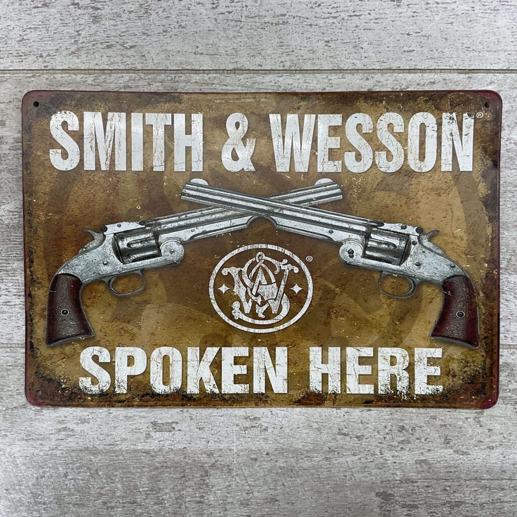 SMITH & WESSON SPOKEN HERE TIN SIGN #4-07611-PF