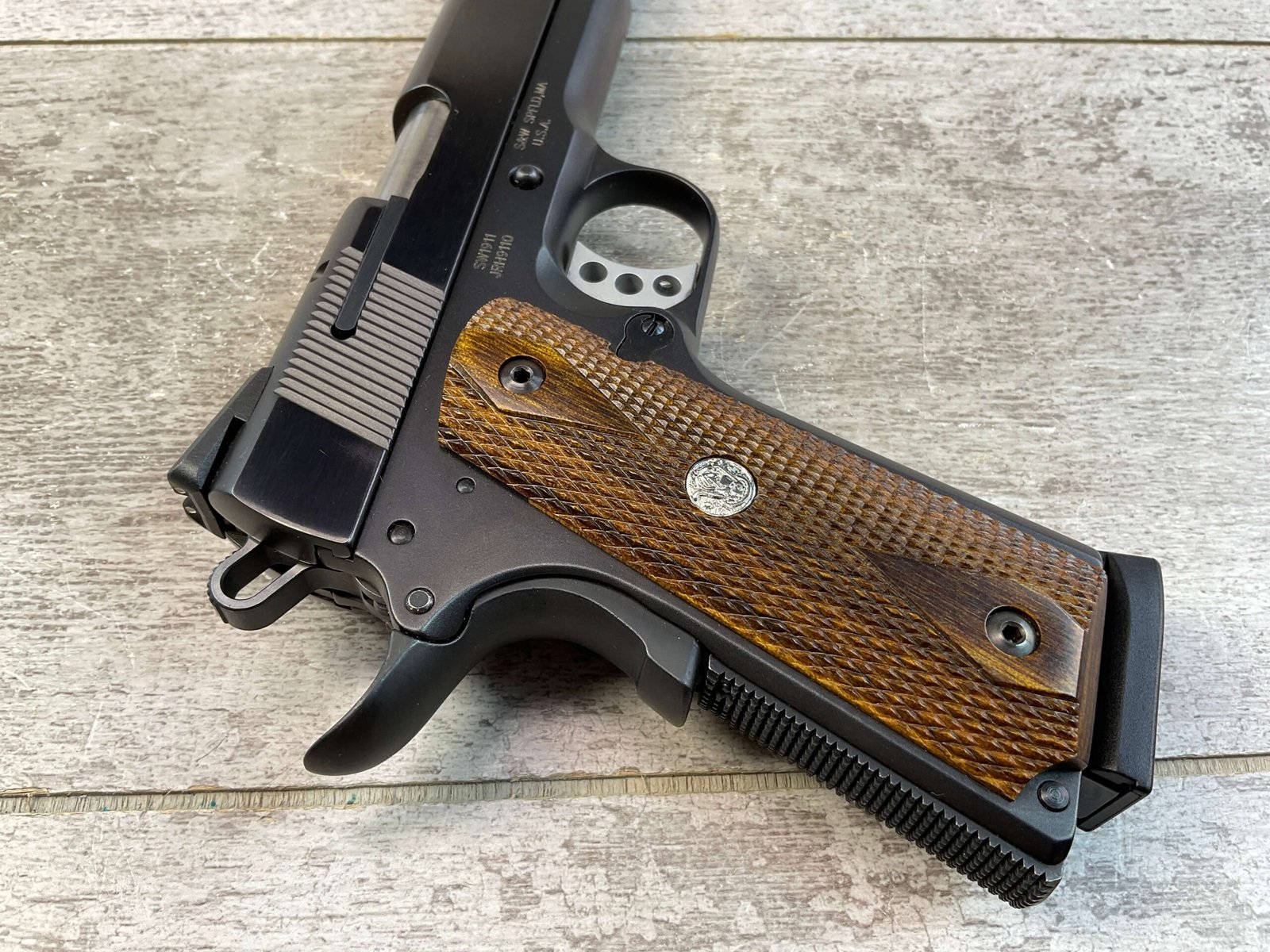 SMITH & WESSON S&W SW1911 400 COR-BON SEMI AUTO PISTOL, JAMES EARL JONES COLLECTION #JRH9110, 6″ PORTED BARREL, EXC CHECKERED WALNUT S&W GRIPS, EXC ORIGINAL FINISH W/ NO WEAR, ONE S&W MAGAZINE, SMOOTH ACTION, CONDITION AS SHOWN IN PICTURES, FROM THE JAMES EARL JONES “FAVORITES” COLLECTION W/ CERTIFICATE OF AUTHENTICITY.