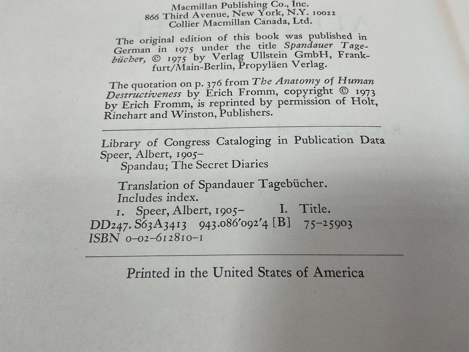 After being convicted in the Nuremberg War Crimes Trials, the prisoners were not allowed to have writing paper, were not allowed to write their memoirs and were allowed only limited visits from their relatives. However, they were allowed to have toilet paper. So, on thousands of squares of toilet paper, Albert Speer wrote his diary in tiny letters so small that they could hardly be seen, which he was then able to pass to his relatives when they visited him. By the time Speer was released on September 30, 1966, twenty years later, there were more than twenty thousand pages of secret diaries just waiting to be edited and published, but it took him another ten years before he could bear to look at them.