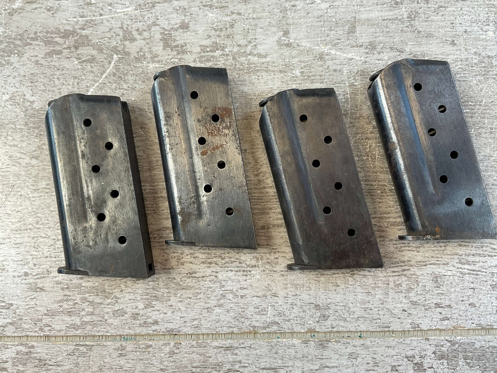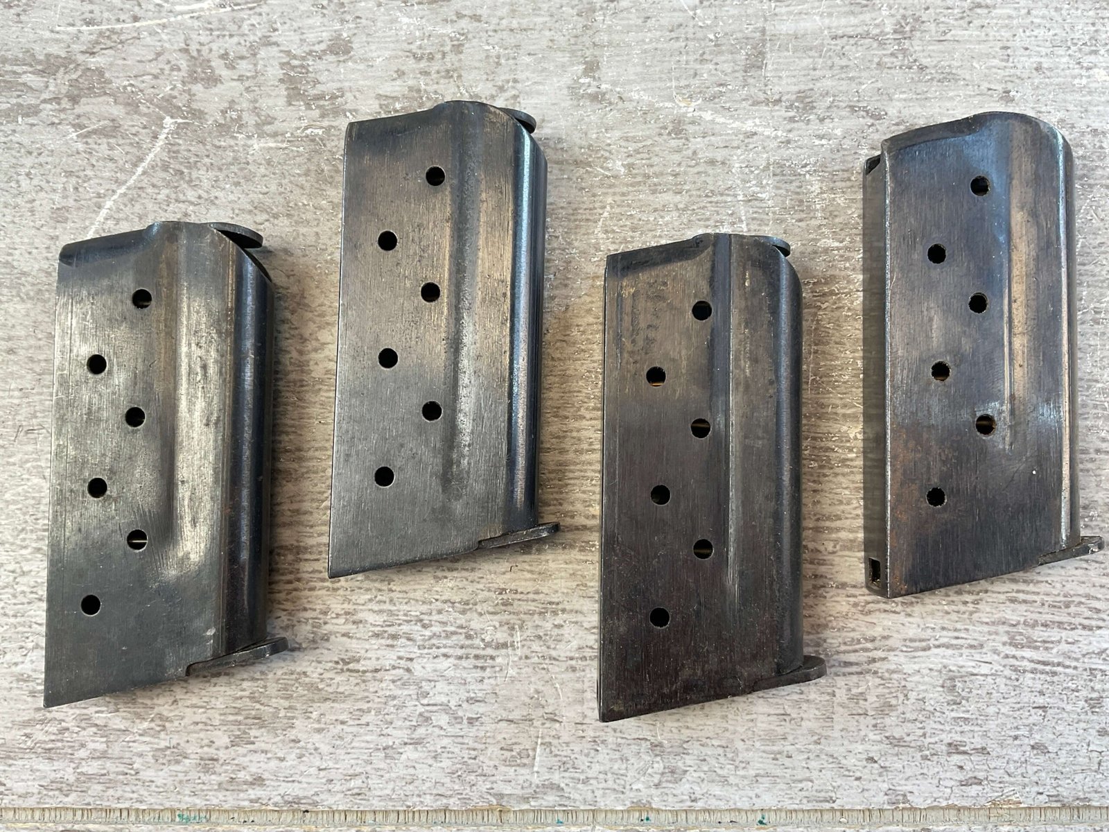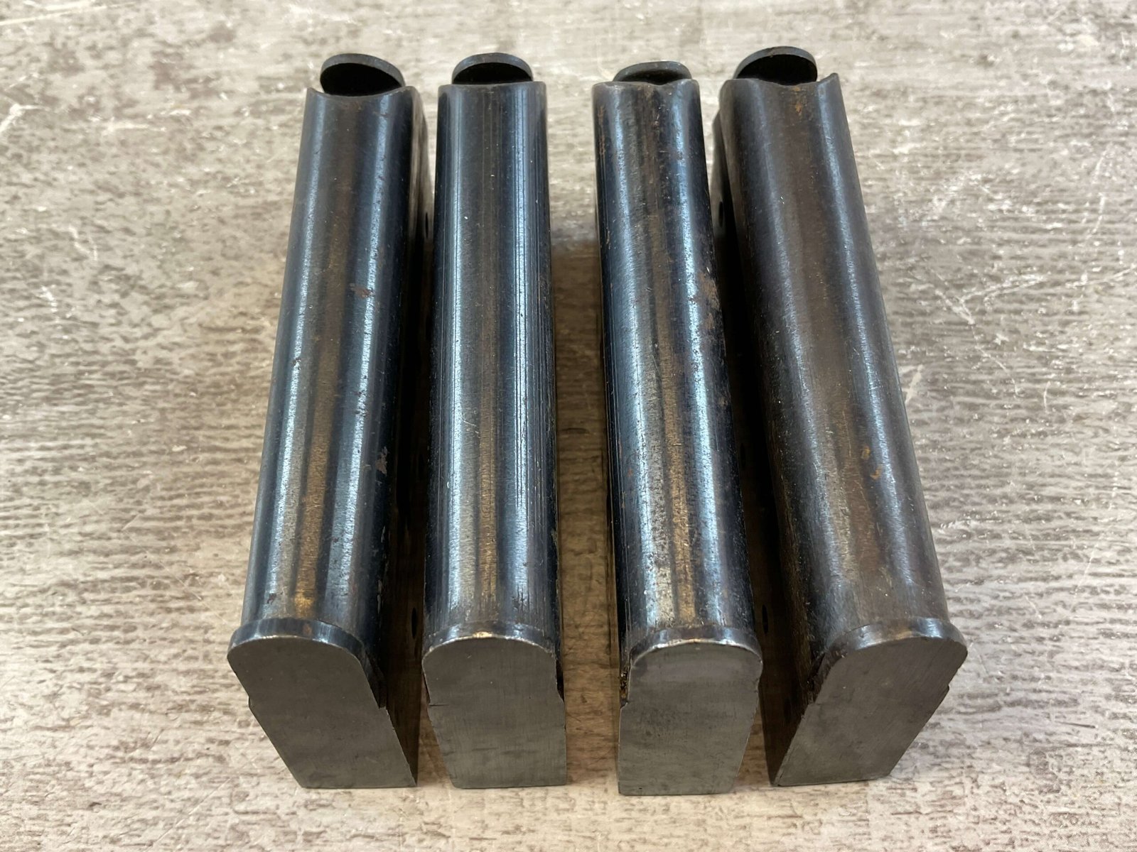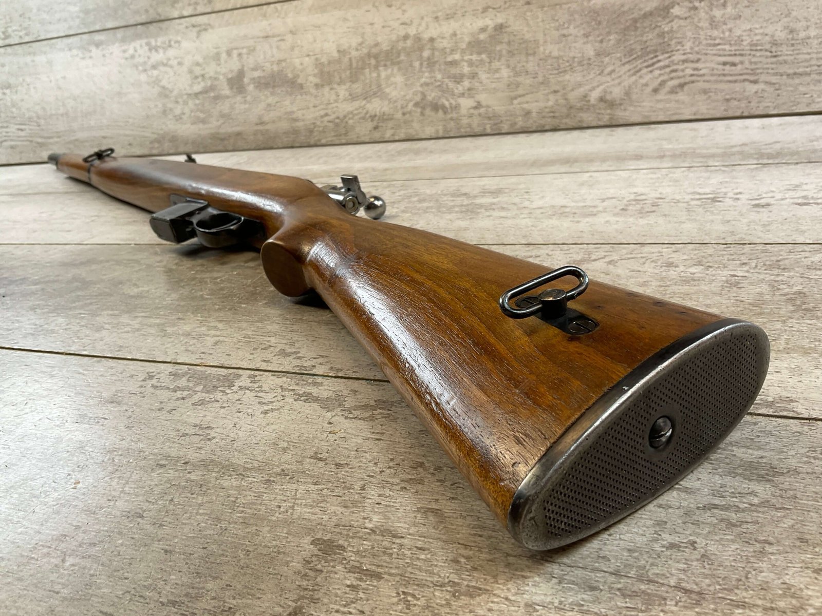SPANISH DESTROYER 9MM LARGO (BERGMANN) BOLT ACTION RIFLE #30889, 21″ BARREL, EXC BORE & RIFLING, VG FINISH W/ COUPLE OF SPOTS OF FINISH LOSS, VG-EXC WALNUT STOCK, ADJ REAR SIGHT, BLADE FRONT SIGHT, SLING SWIVELS, METAL BUTT PLATE, 5 MAGAZINES INCLUDE, CONDITION AS SHOWN IN PICTURES