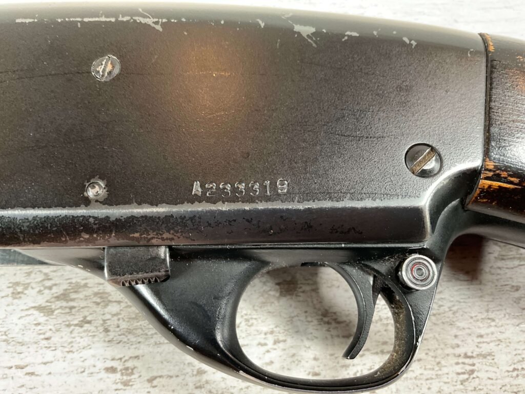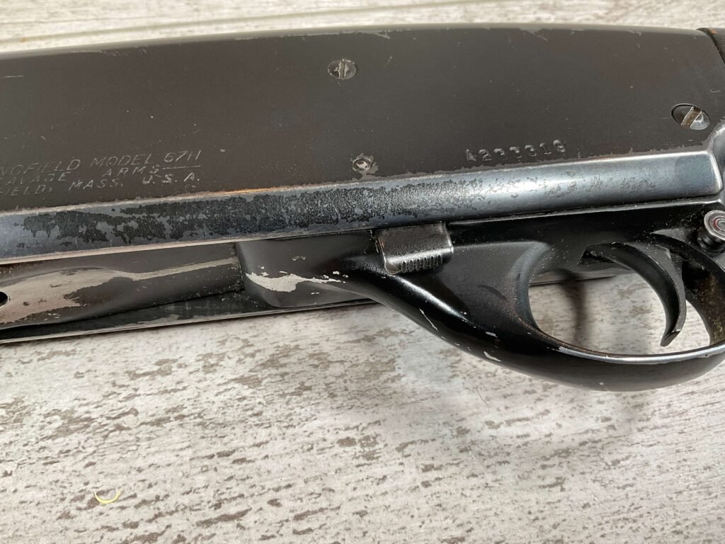 SPRINGFIELD MODEL 67H 12GA PUMP SHOTGUN (SAVAGE ARMS) #A233319, 28″ BBL, 3″ CHAMBER, BRIGHT SMOOTH BORE FULL CHOCK, LIGHT HANDLING MARKS, PAINTED BLACK (SOME IS WEARING OFF), VG OVERALL CONDITION