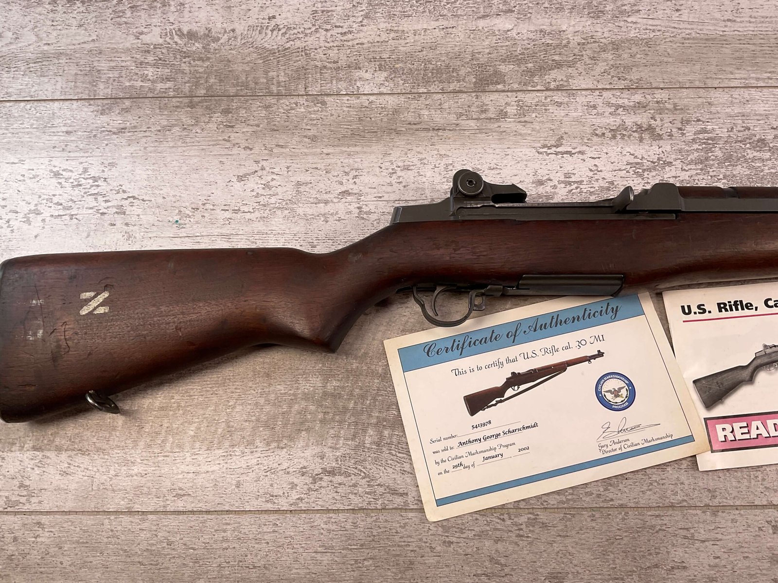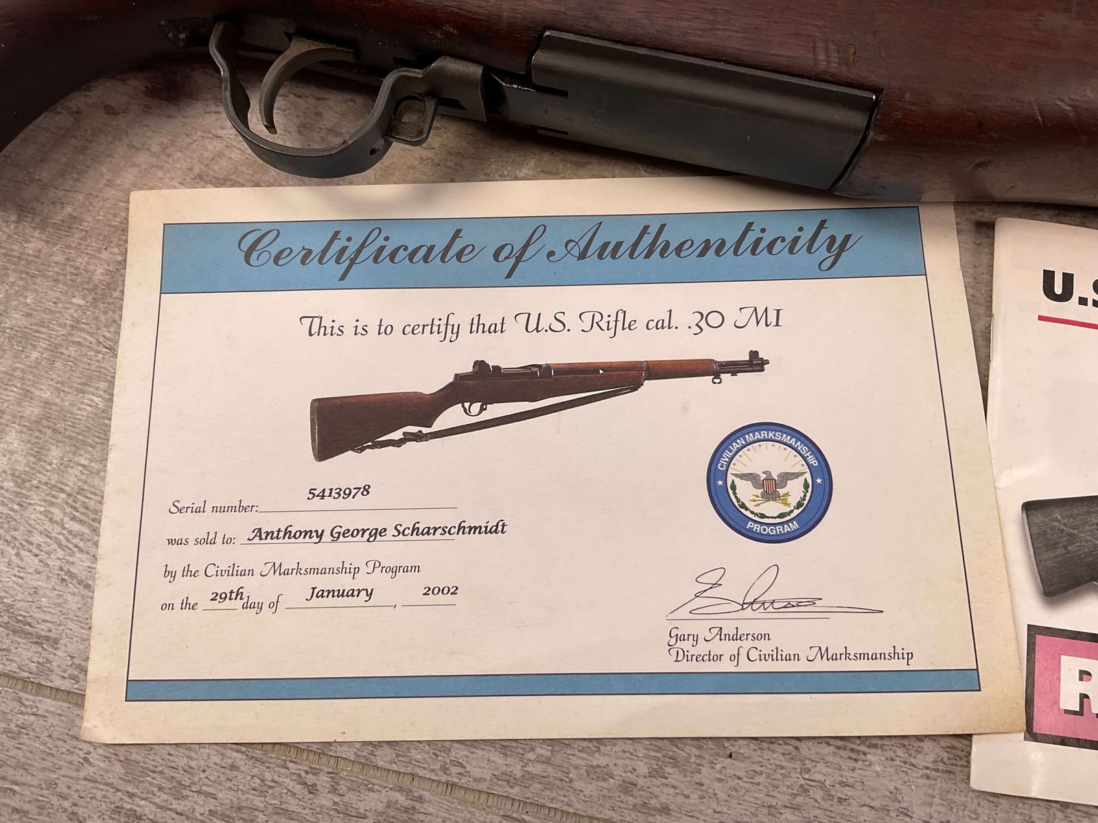 SPRINGFIELD M1 GARAND 30-06 SEMI AUTO CMP RIFLE #5413978, 1954 MFR, BBL DATED 9-54, ME 1+, TE 2, EXC BRIGHT BORE & RIFLING, SA TRIGGER GROUP & BOLT, VG-EXC OVERALL RIFLE, VG STOCK W/ CMP STAMP & TYPICAL NICKS & DINGS FROM AGE/USE, CMP BOOKLET & CERTIFICATE, 90+% OVERALL CONDITION AS SEEN IN PHOTOS!!