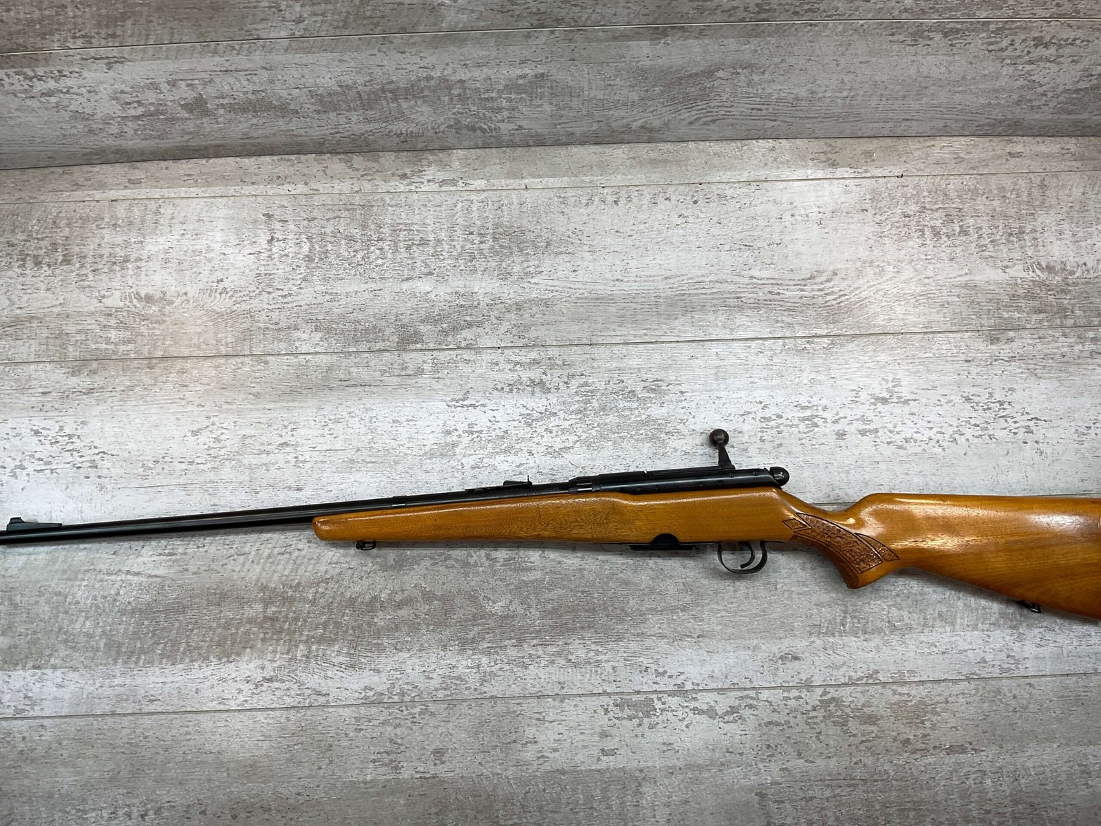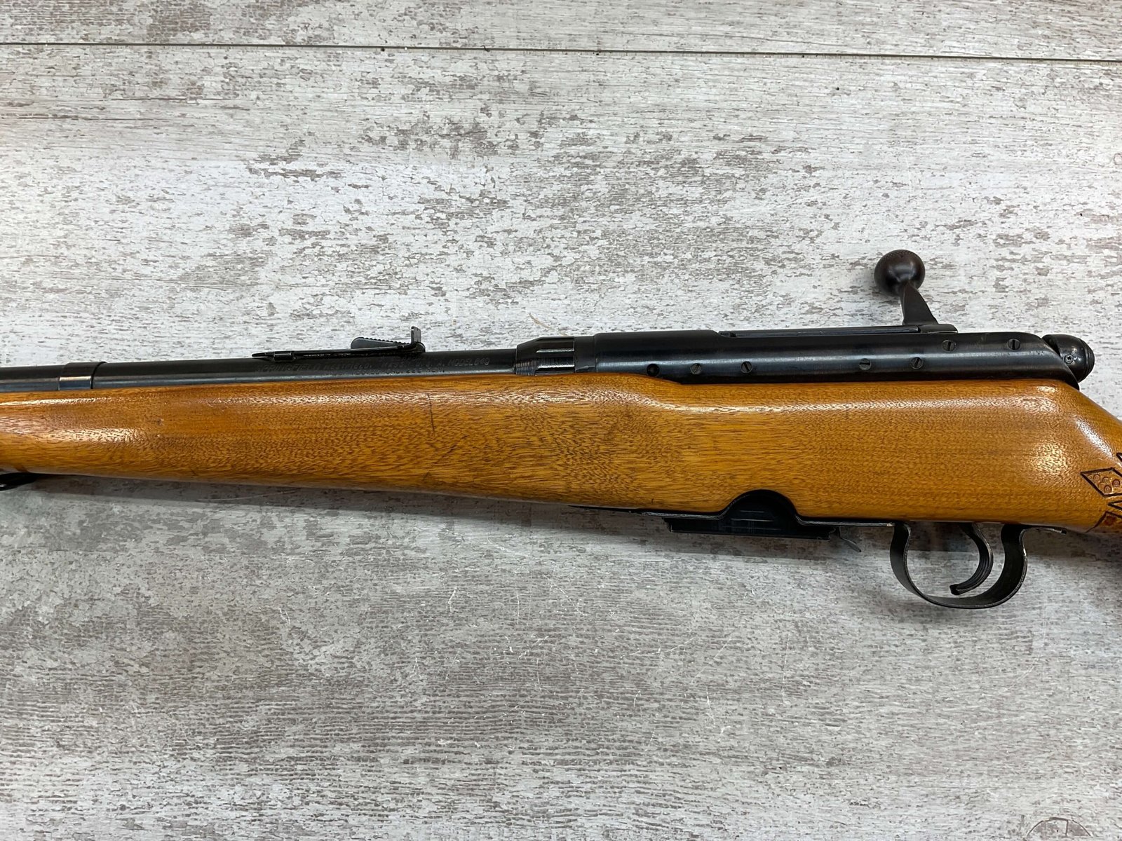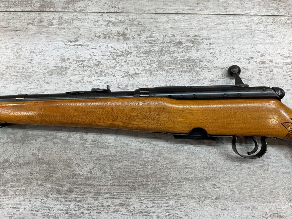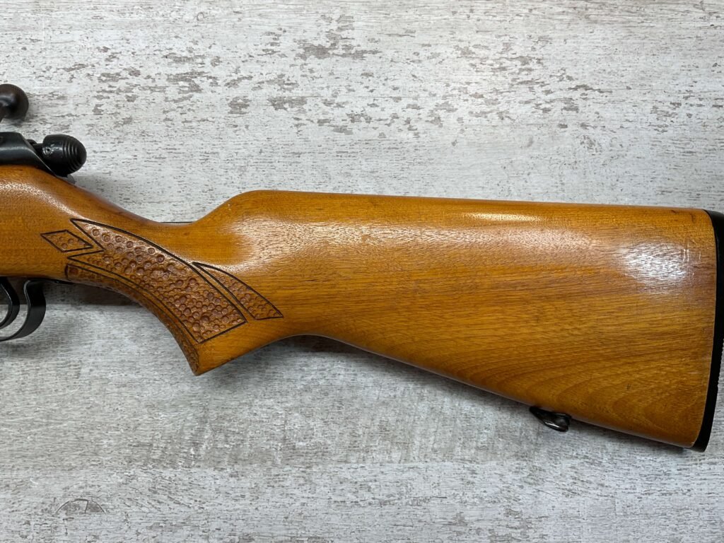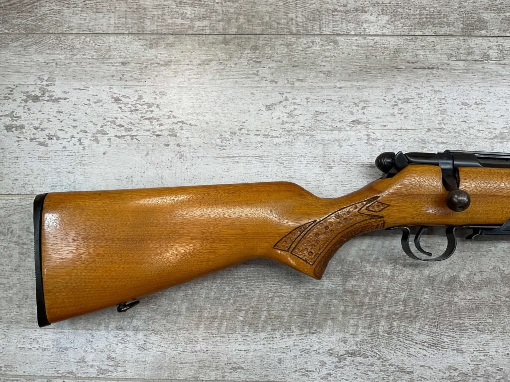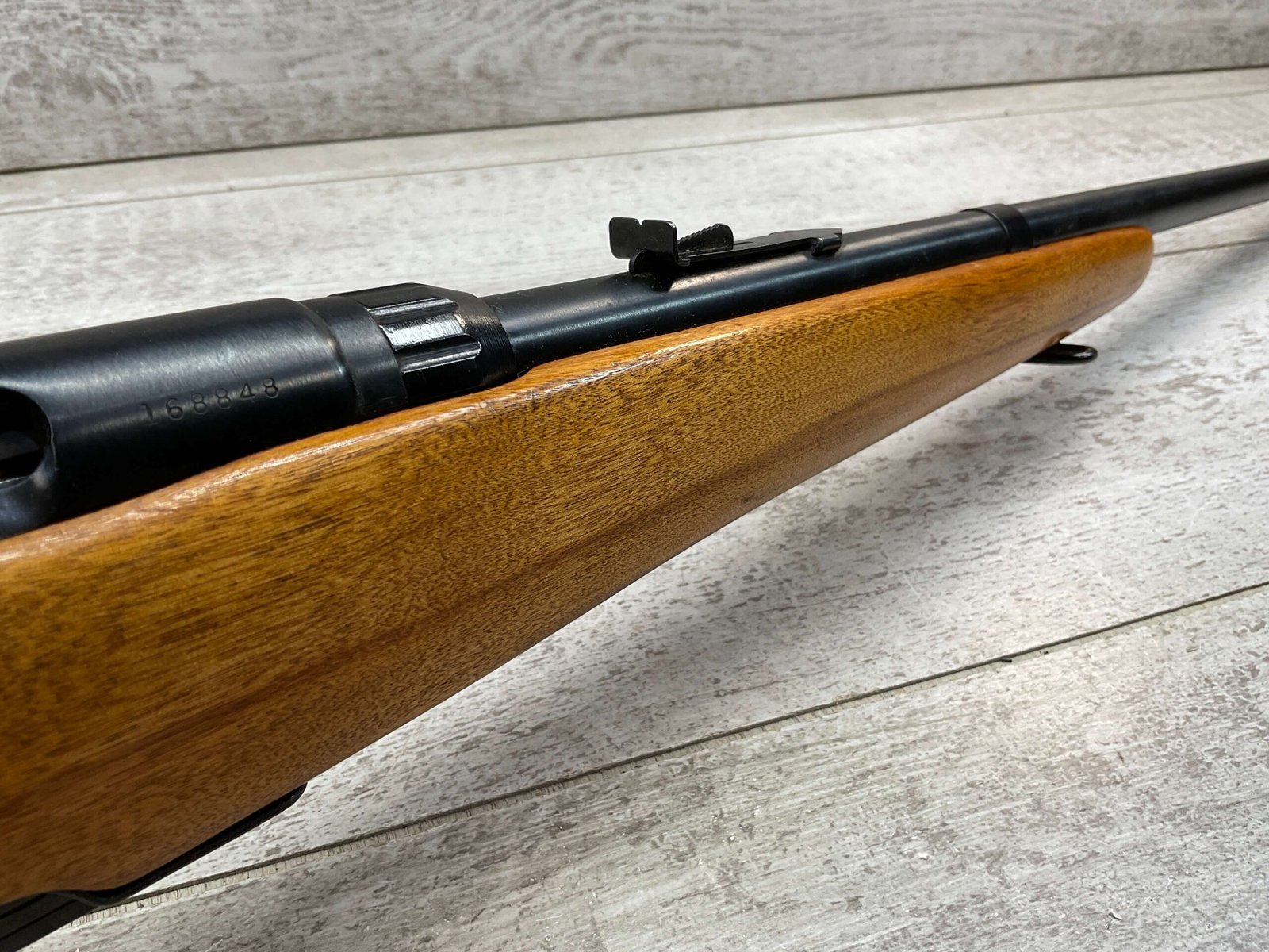 SPRINGFIELD / SAVAGE MODEL 840 222 REM BOLT ACTION RIFLE #168848, BOYD PLASTIC BUTT PLATE, BOLT ACTION, 24″ BBL, 4 ROUND MAGAZINE, EXC BRIGHT BORE & RIFLING, CRISP TRIGGER & SMOOTH ACTION, EXC SOLID BIRCH WOOD STOCK, FRONT & REAR SLING SWIVEL STUDS, ADJUSTABLE REAR SIGHT & RAMP FRONT SIGHT, RECEIVER DRILLED AND TAPPED FOR SCOPE MOUNTS, 95%+ OVERALL