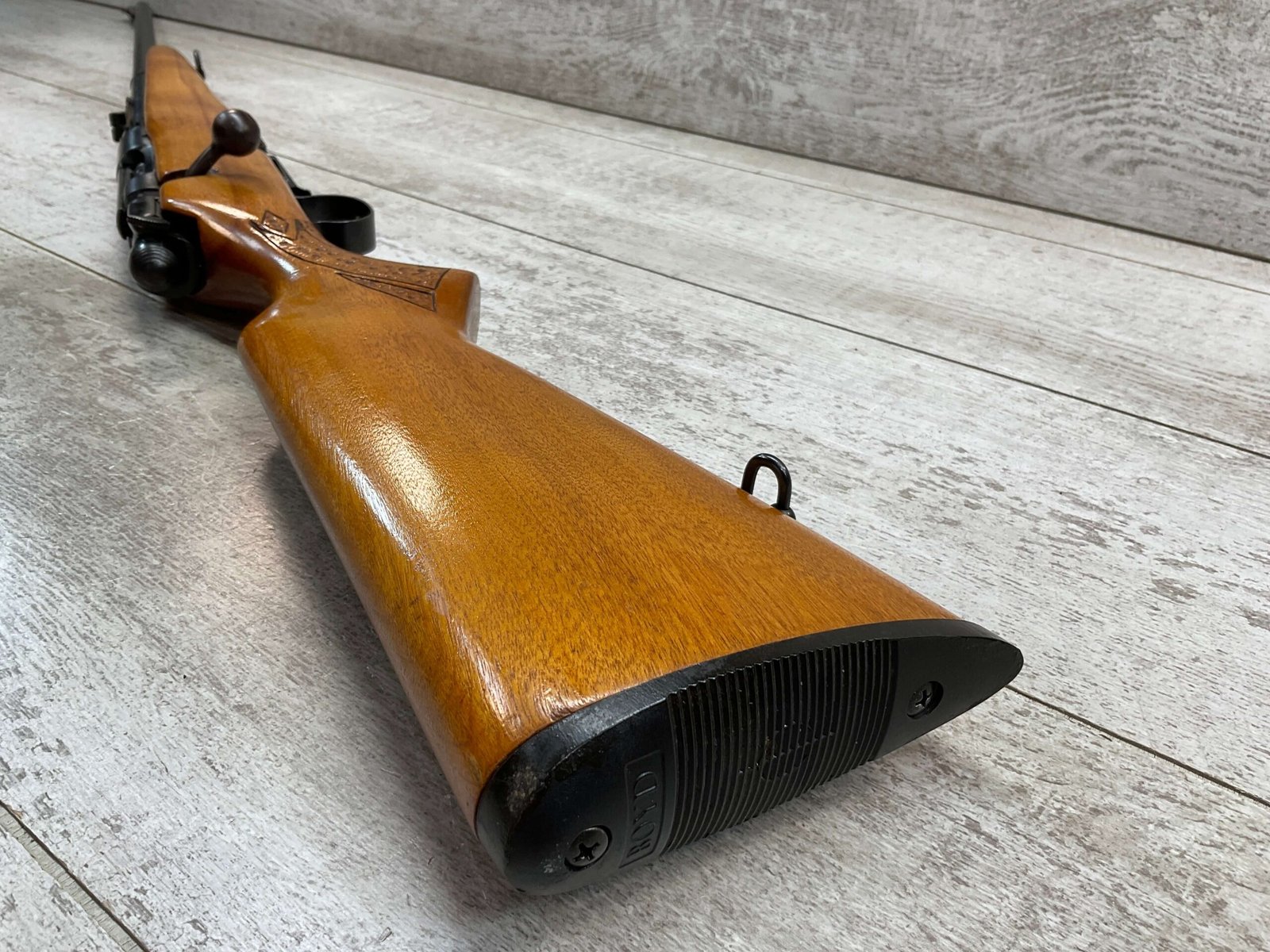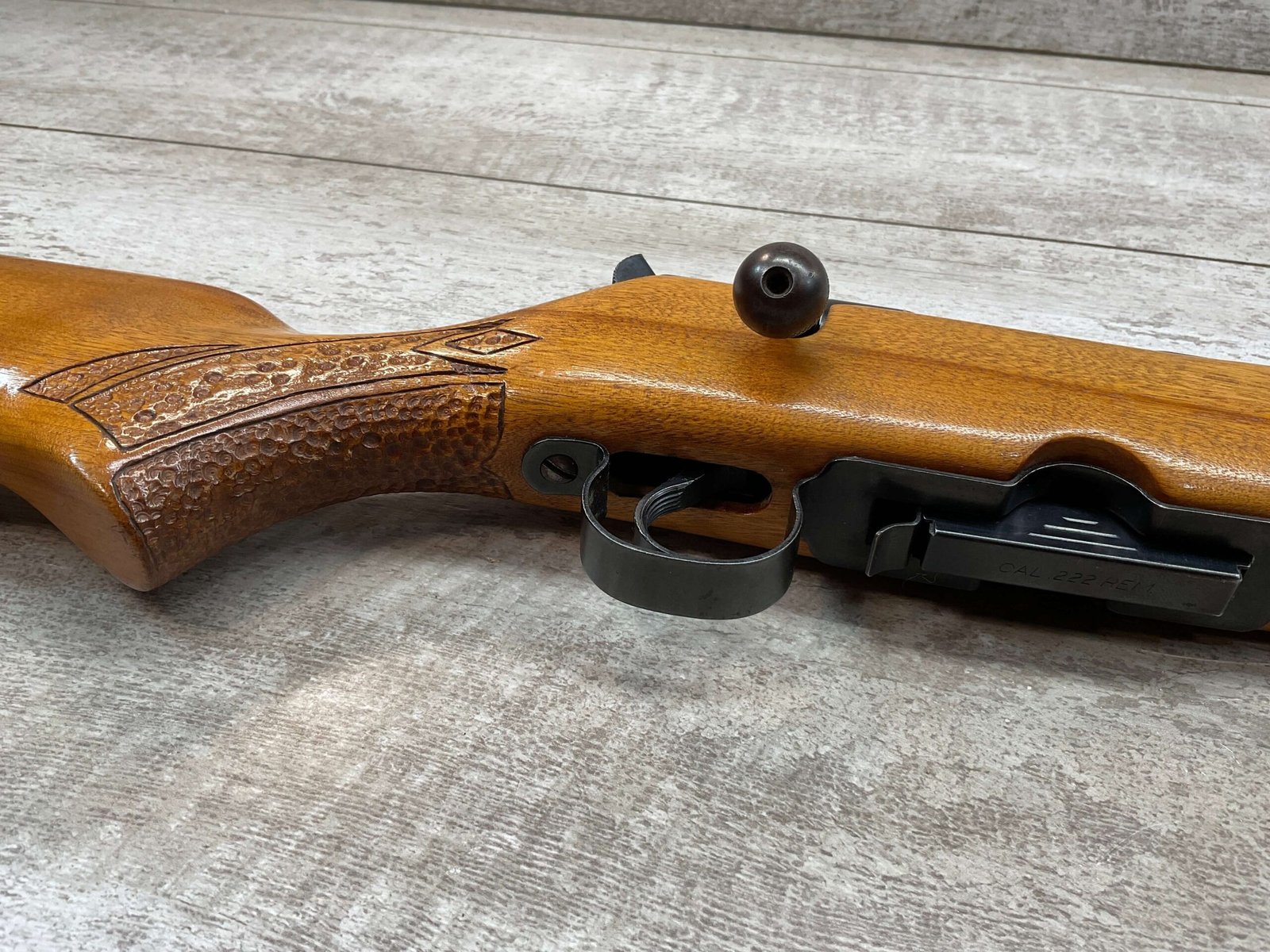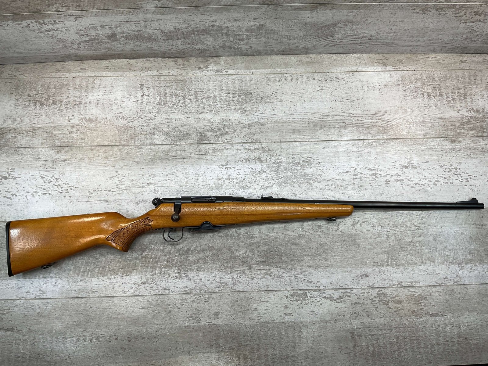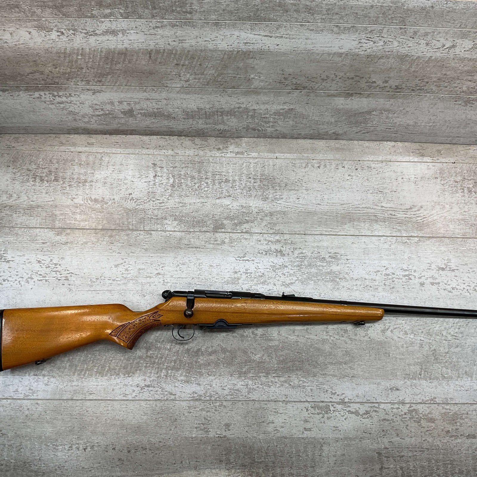 SPRINGFIELD / SAVAGE MODEL 840 222 REM BOLT ACTION RIFLE #168848, BOYD PLASTIC BUTT PLATE, BOLT ACTION, 24″ BBL, 4 ROUND MAGAZINE, EXC BRIGHT BORE & RIFLING, CRISP TRIGGER & SMOOTH ACTION, EXC SOLID BIRCH WOOD STOCK, FRONT & REAR SLING SWIVEL STUDS, ADJUSTABLE REAR SIGHT & RAMP FRONT SIGHT, RECEIVER DRILLED AND TAPPED FOR SCOPE MOUNTS, 95%+ OVERALL