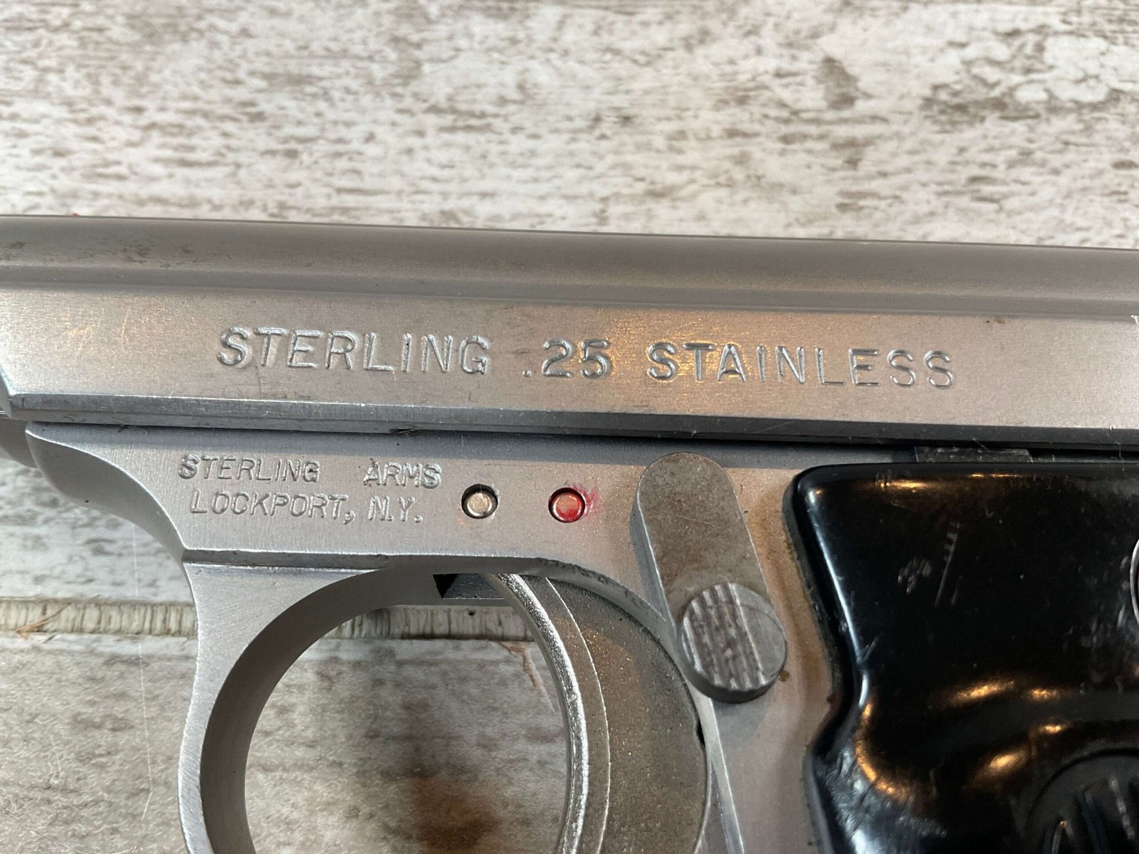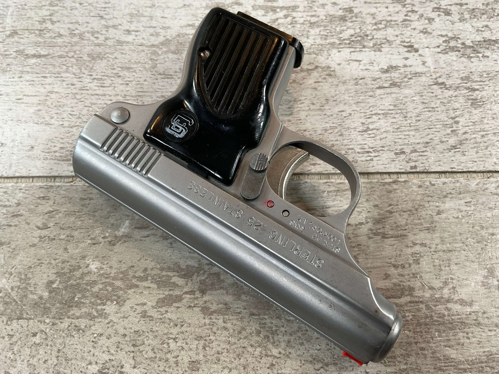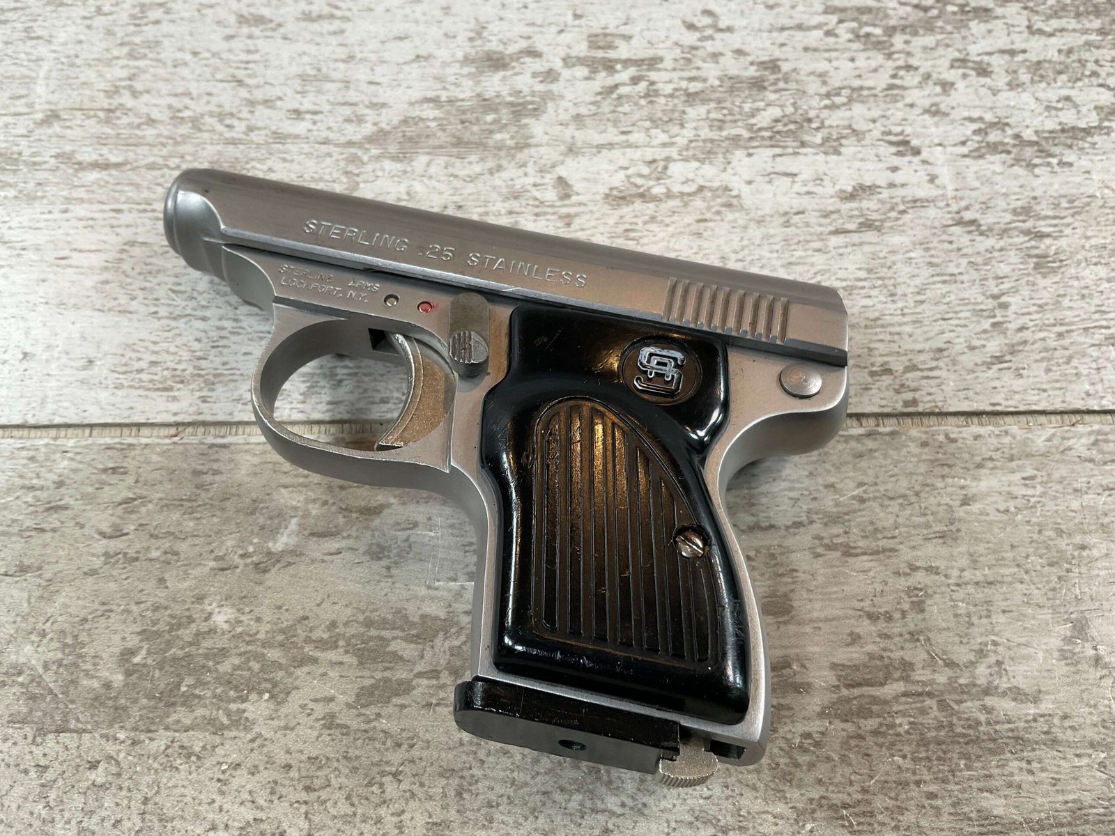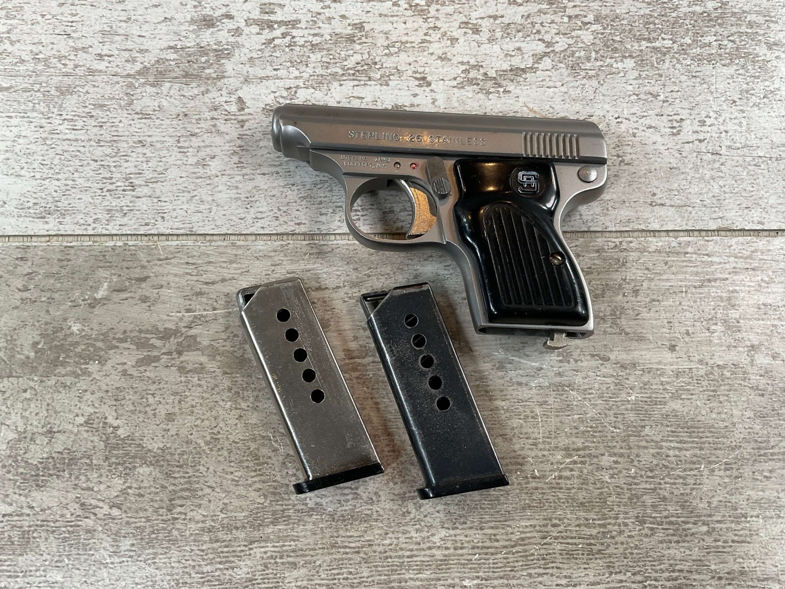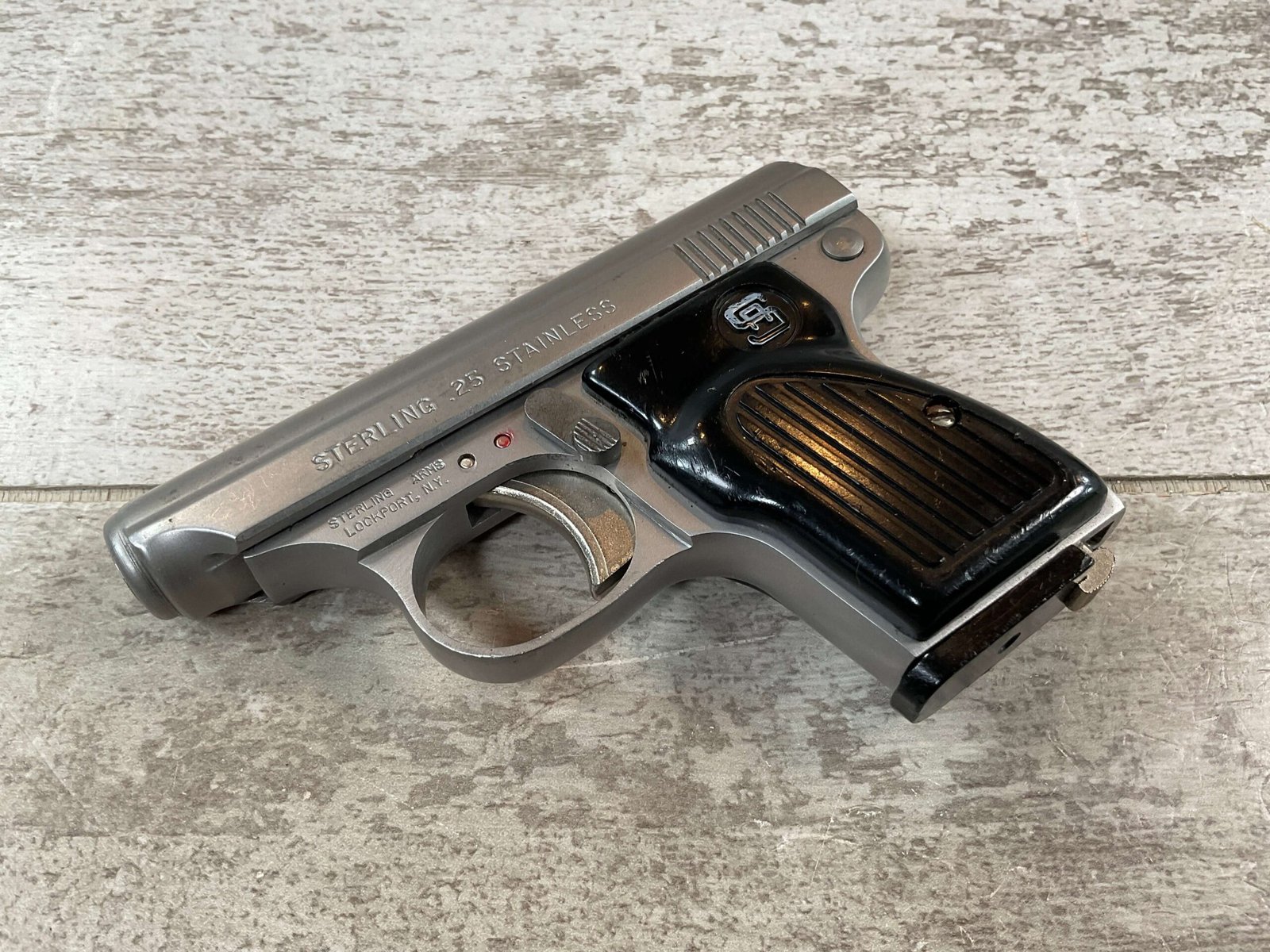 The Sterling Arms Model 300 is a compact, semi-automatic vest or pocket pistol chambered in .25 ACP (Automatic Colt Pistol). Here’s a simplified description focusing on the specifics of the model and its accessories: