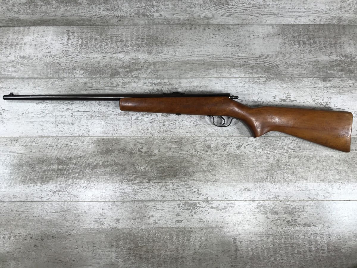 SKU#409 STEVENS MODEL 15 BOLT ACTION .22 RIFLE #NSN, .22 SHORT/LONG RIFLE, GOOD WOOD W/SOME NICKS & SCRATCHES, BLUE TURNING BROWN PATINA, NO BULLPLATE & SMALL CHIP IN HEEL OF STOCK, MISSING STRIKER KNOB, GREAT PLINKING SINGLE SHOT! 75% OVERALL