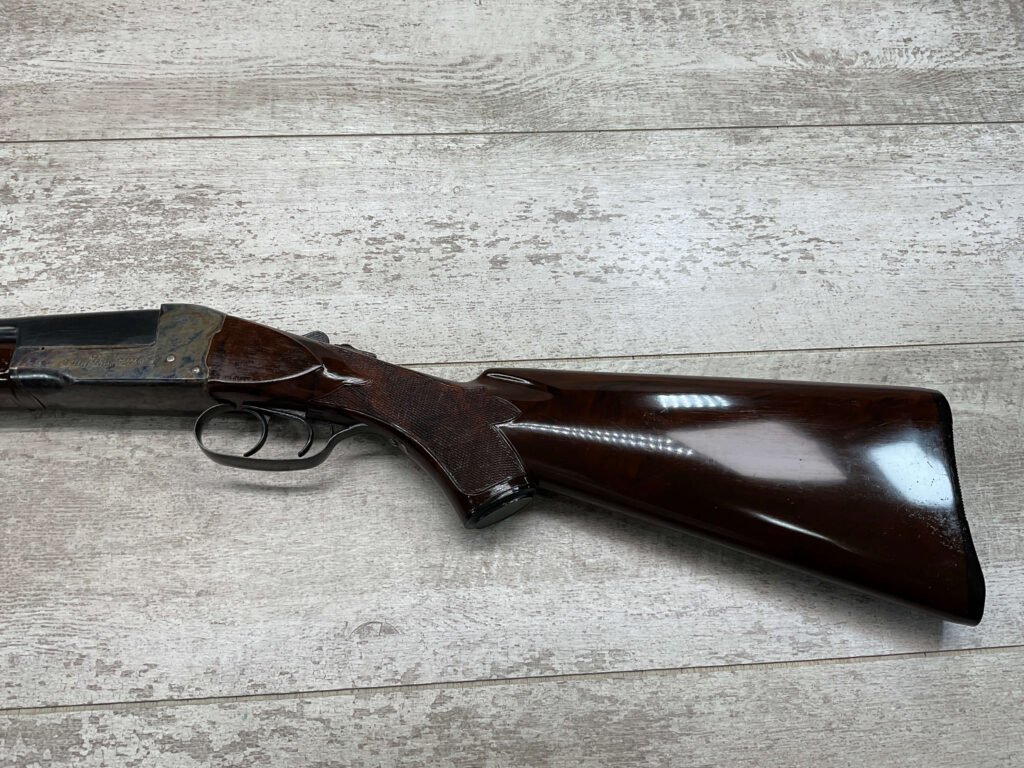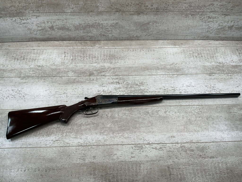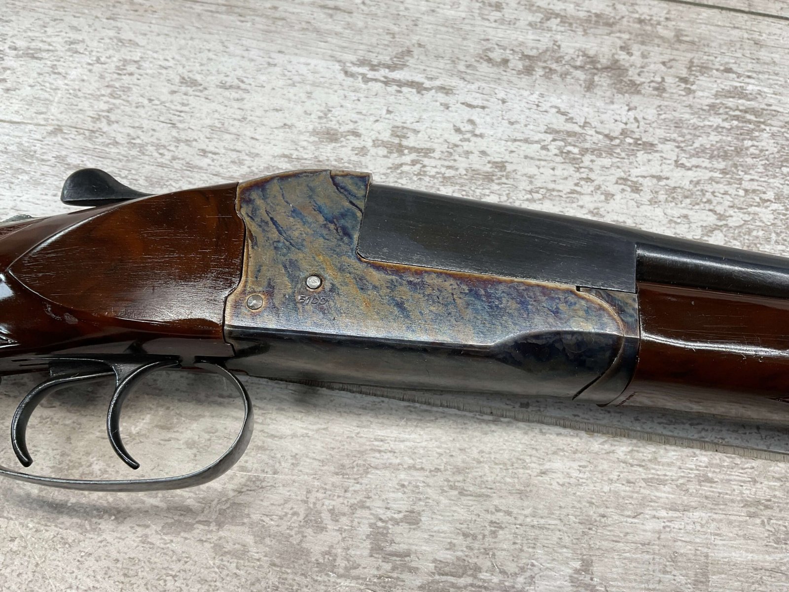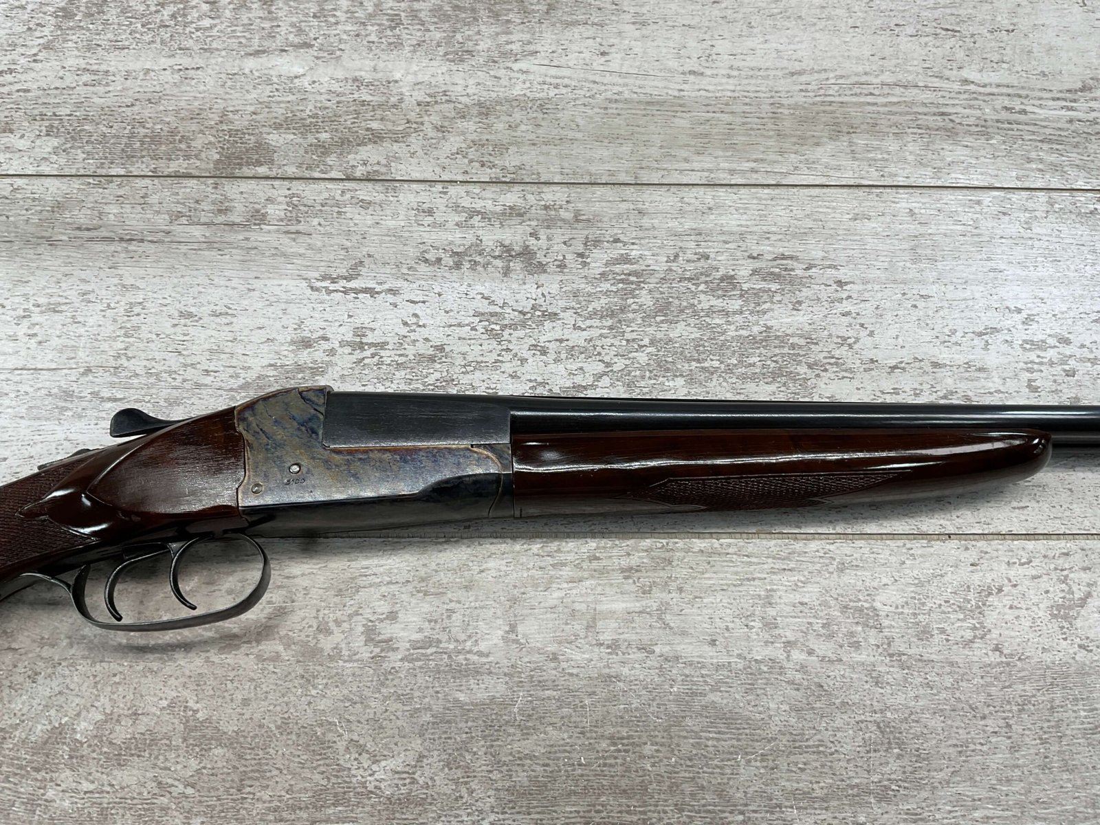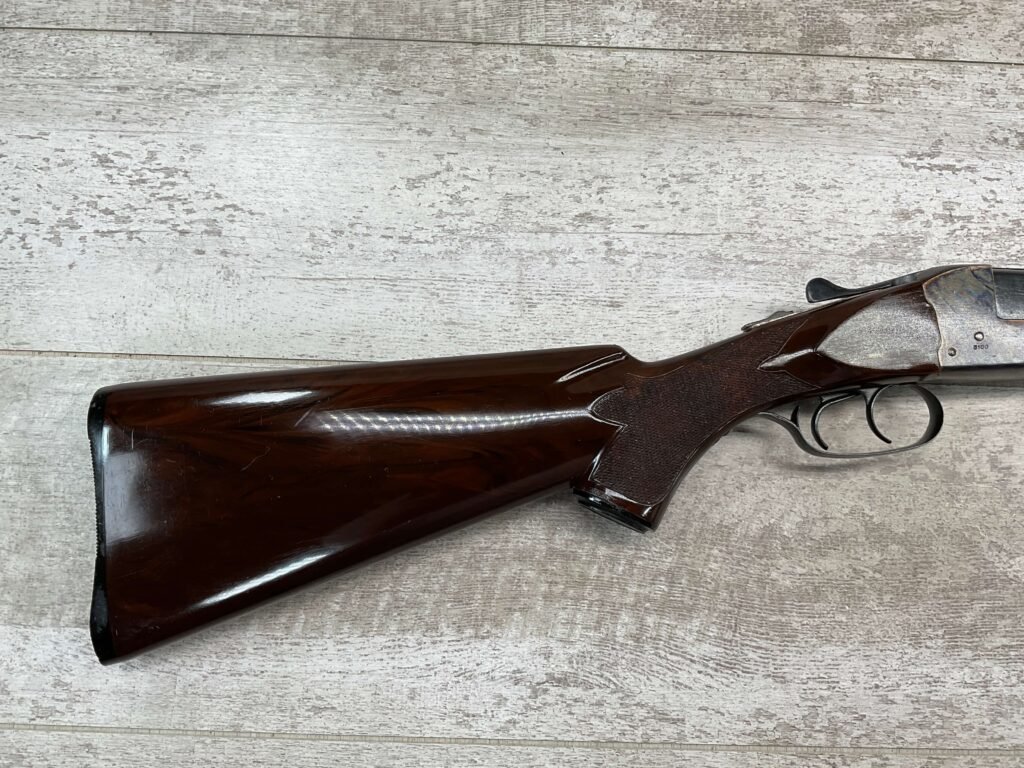 STEVENS MODEL 311 410GA SXS BREAK ACTION SHOTGUN #NSN, 3″ CHAMBER, 26″ ROUND BARREL, BRIGHT MINTY SMOOTH BORE 10/10, EXC BLUE FINISH 10/10, RECEIVER & BREAK IS CASE HARDENED, FRONT FIXED BEAD, TRIGGER GUARD SHOWS HIGH EDGE WEAR, STOCK & FOREARM ARE IN EXC CONDITION, MANUFACTURED OUT OF TENITE, A COMPOSITE PLASTIC W/MINOR SCUFFS FROM NORMAL WEAR AND USE, LOP 14″, MANUFACTURED IN CHICOPEE MASS. OVERALL 95%+ GUN.