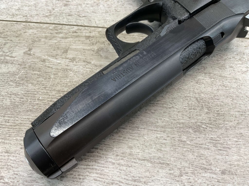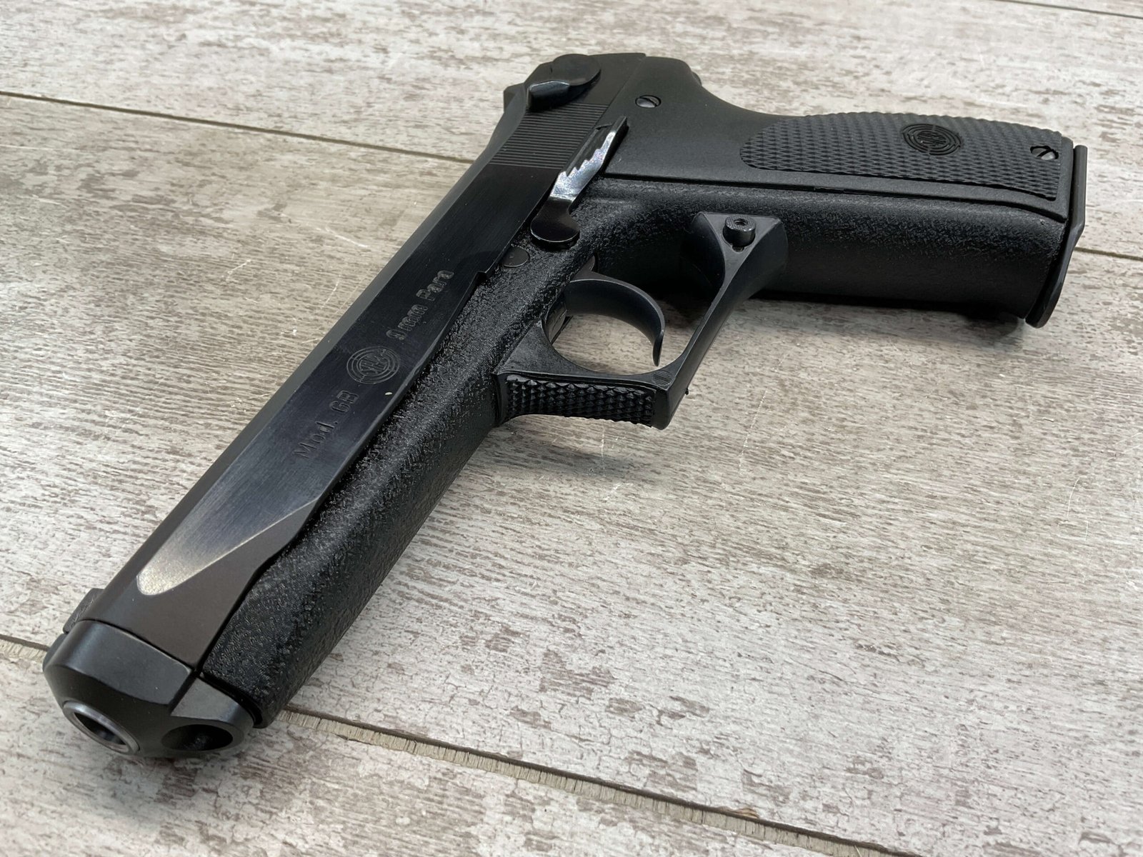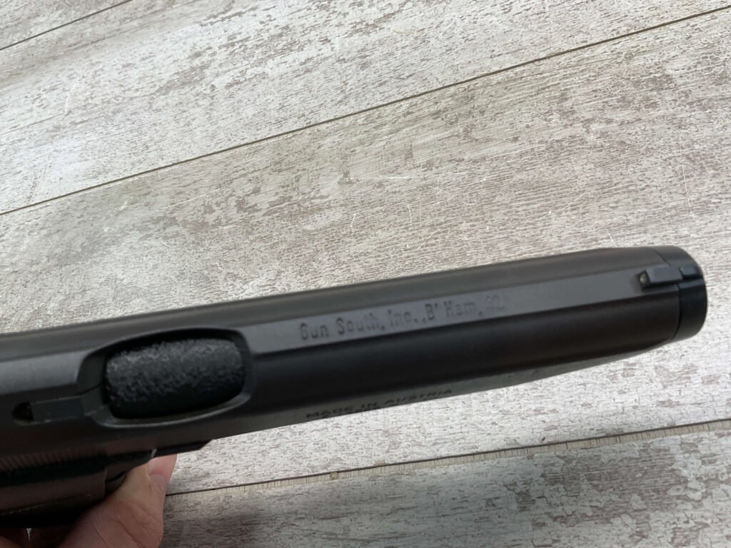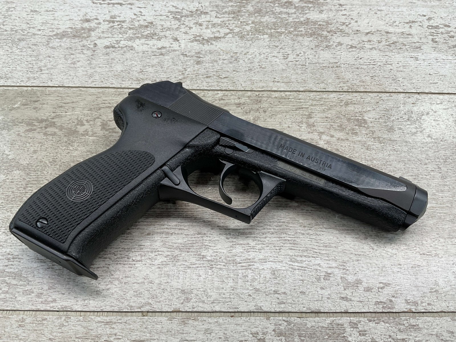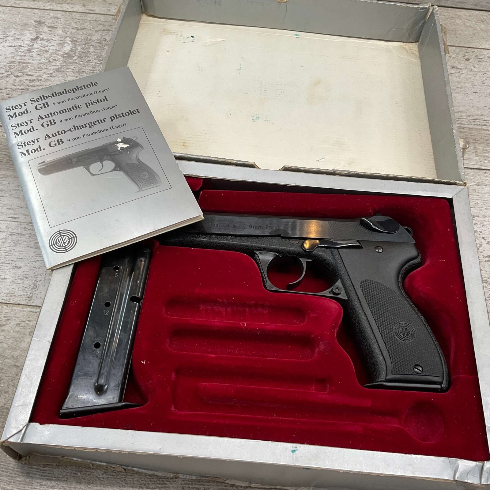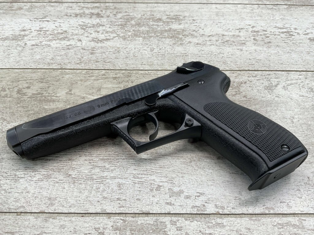 The Steyr GB was introduced in the late 1970s and was intended primarily for military and law enforcement markets. Featuring a unique gas-delayed blowback operating system. The Steyr GB is chambered in 9x19mm Parabellum, commonly known as 9mm. This caliber is widely used and offers a good balance of stopping power and manageable recoil. The most distinctive feature of the Steyr GB is its gas-delayed blowback operating system. This system utilizes gas pressure from fired rounds to slow down the rearward movement of the slide, resulting in a softer recoil impulse and potentially improved accuracy. The Steyr GB features a double-action-only (DAO) trigger mechanism, meaning the trigger performs both cocking and firing functions with each shot. It has a slide-mounted safety/decocker lever and a magazine release button located on the grip. The pistol features a polymer frame, which was innovative at the time of its introduction. Polymer frames offer durability, corrosion resistance, and reduced weight compared to traditional metal frames.