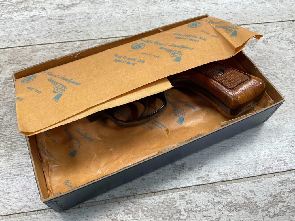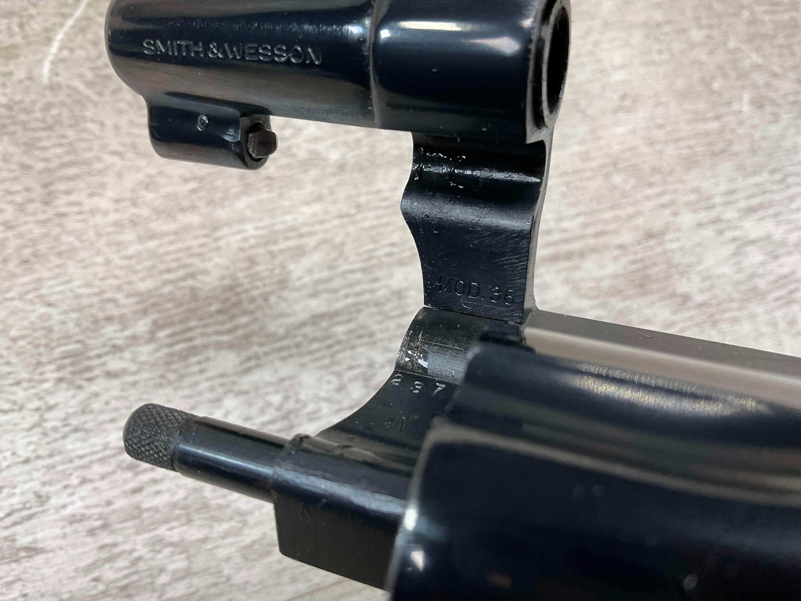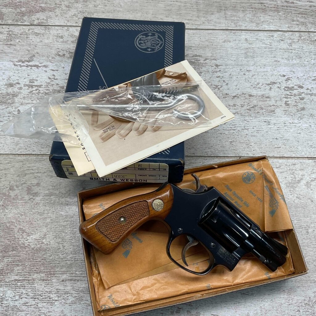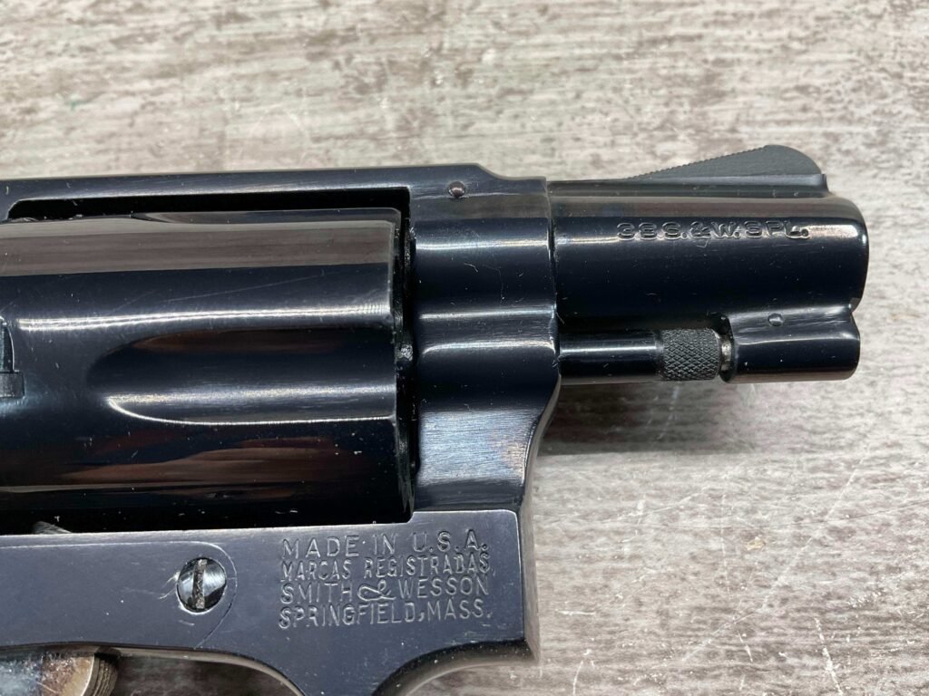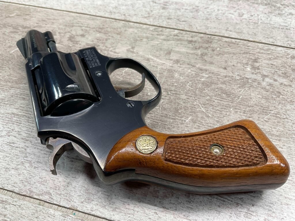 S&W CHIEFS SPECIAL 36 .38 S&W SPECIAL REVOLVER, MINTY #J184455, 1973 MFR, 2″ PINNED BARREL, DA/SA, EXC BLUE (9.9/10) W/ VERY LIGHT CYLINDER WEAR, EXC WALNUT GRIPS, 98+% OVERALL CONDITION, ORIGINAL BOX / PAPERWORK & BORE CLEANING TOOLS INCLUDED, LIKE NEW COLLECTOR CONDITION!!