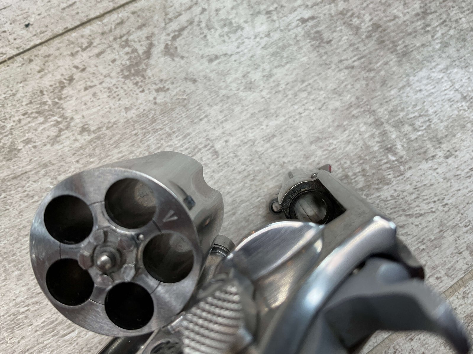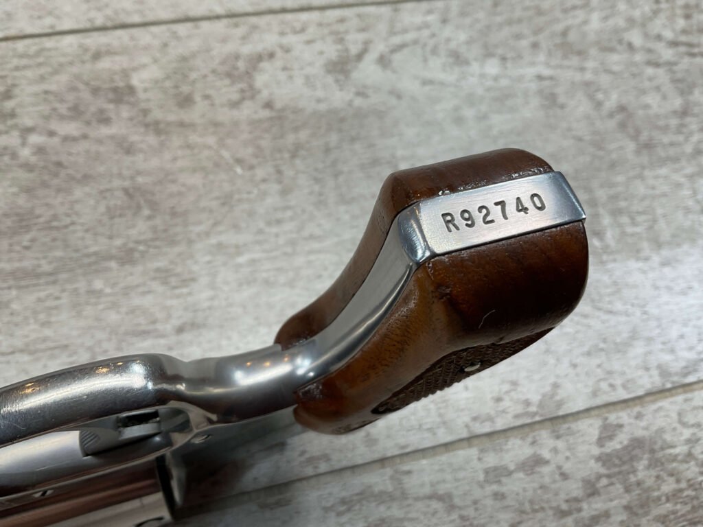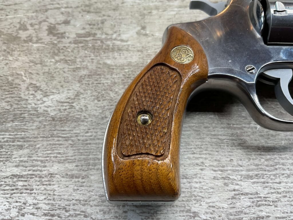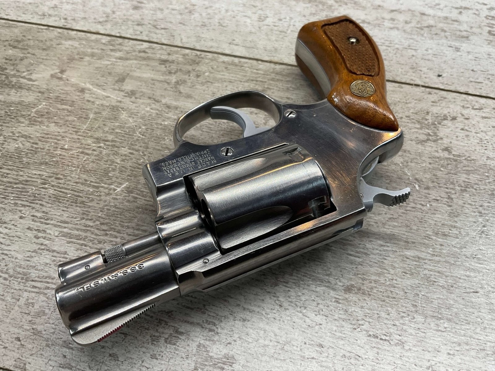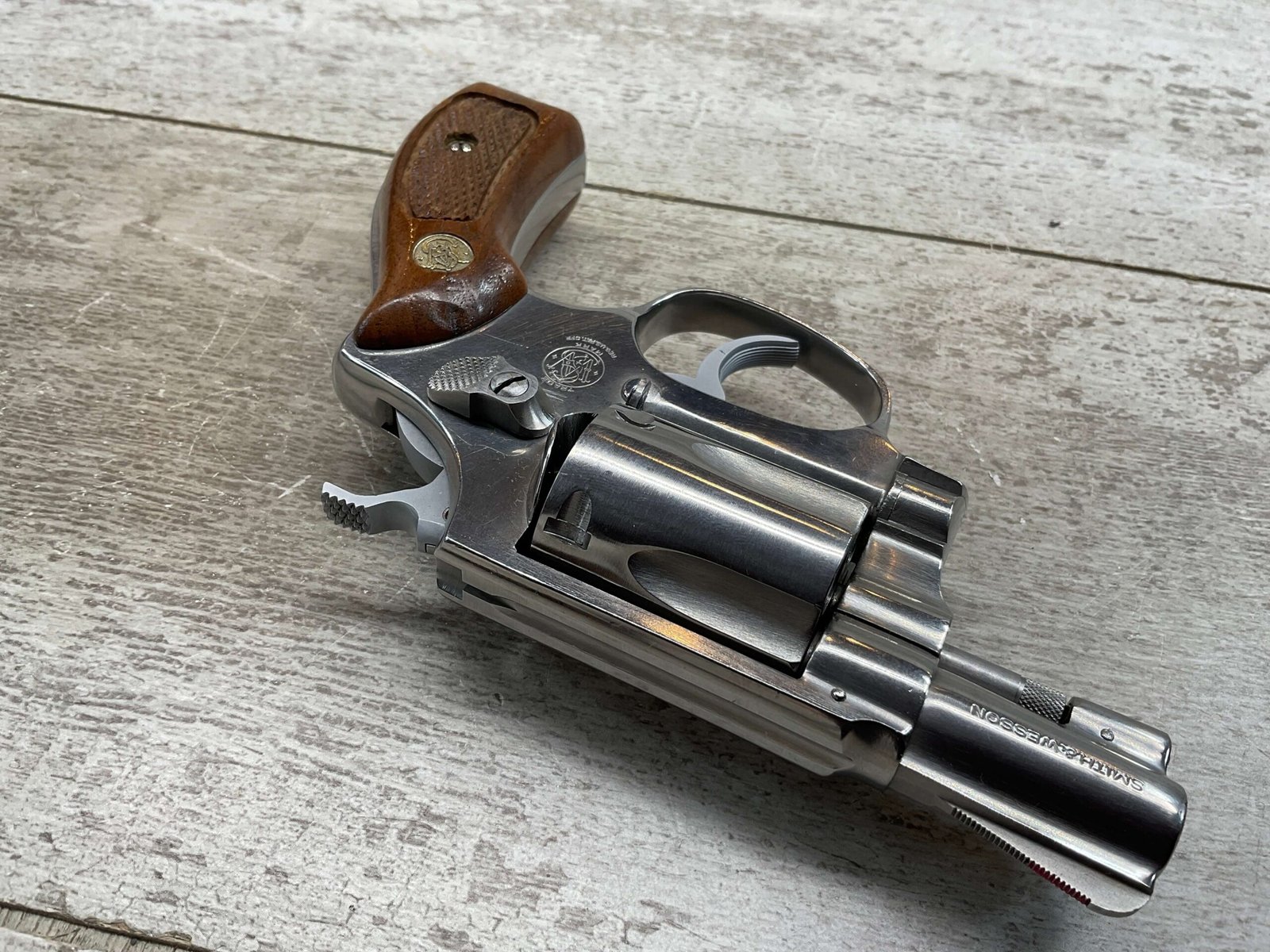 S&W MODEL 60 STAINLESS CHIEFS SPECIAL .38 SPECIAL REVOLVER, 1974-75 MFR #R92740, 1 3/4″ SNUBNOSE BARREL, DA/SA, EXC STAINLESS STEEL FINISH W/VERY LIGHT CYLINDER WEAR, EXC CHECKERED WALNUT GRIPS, 95+% OVERALL CONDITION, SQUARE NOTCH BUILT IN REAR SIGHT & RAMPED FRONT SIGHT, ROUND BUTT, LIGHT HANDLING MARKS, MINTY BORE & RIFLING, 95% HIGH CONDITION W/ORIGINAL BOX & PAPERWORK! GREAT COLLECTOR PIECE