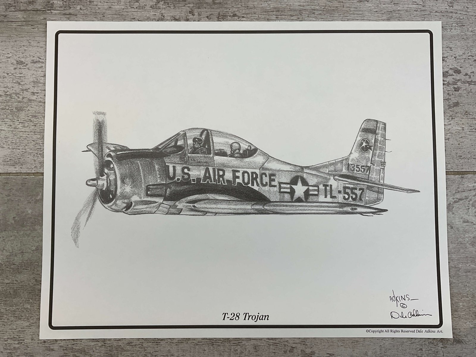 T-28 TROJAN 11X14 PRINT, UNFRAMED BUT IN PLASTIC SLEEVE