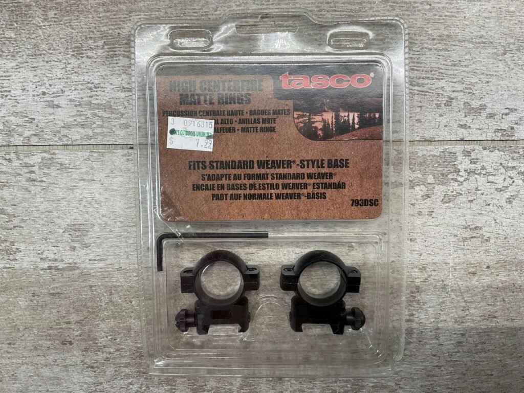 TASCO HIGH CENTERFIRE MATTE SCOPE RINGS, FITS STANDARD WEAVER-STYLE BASE UNOPENED
