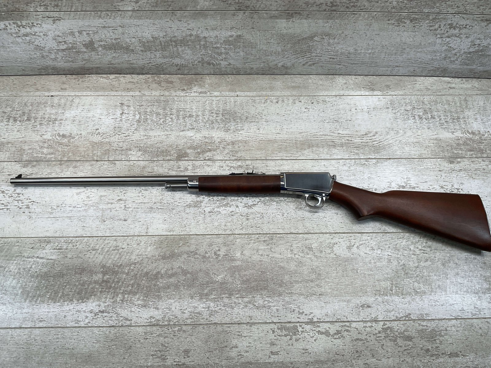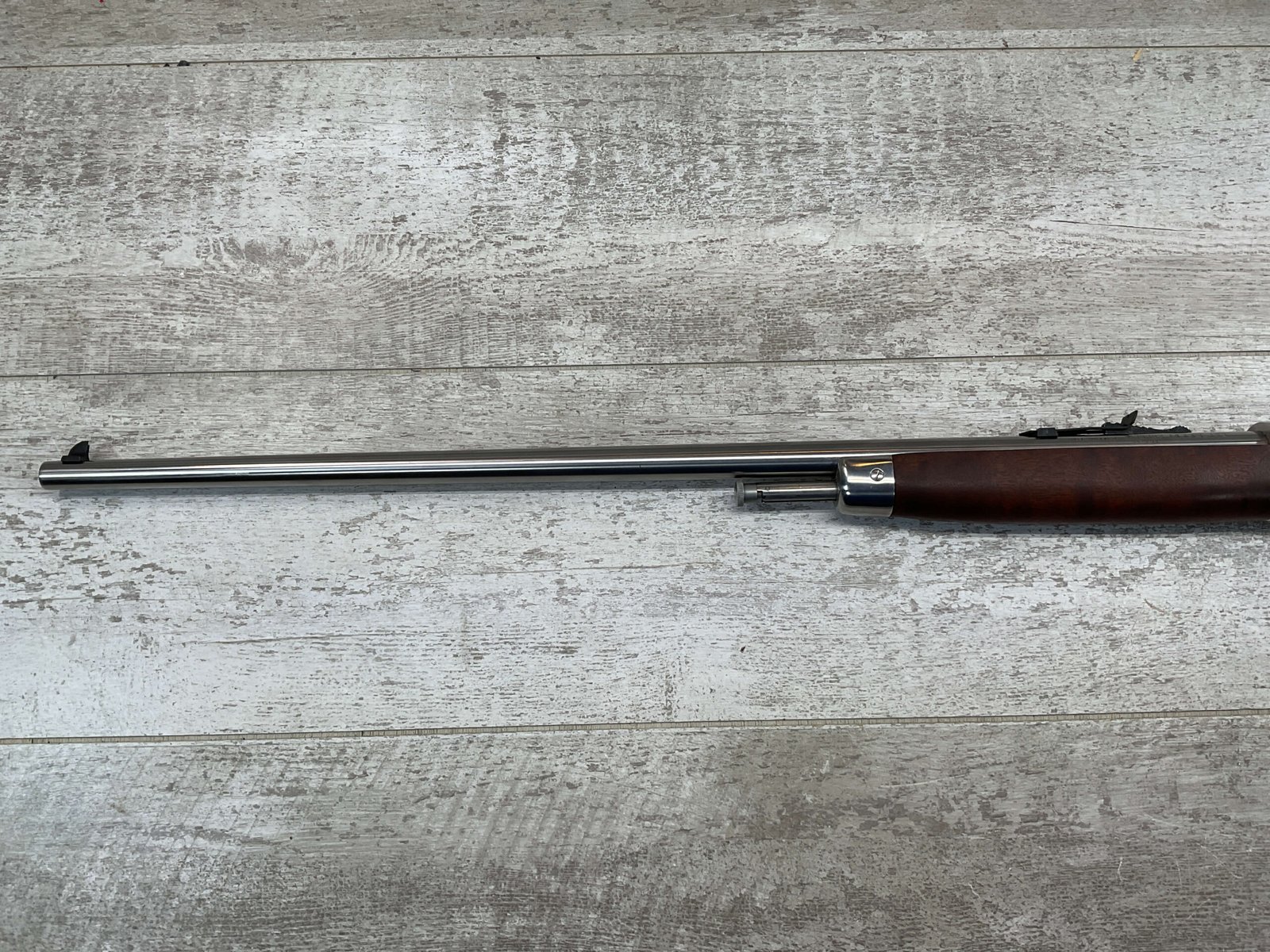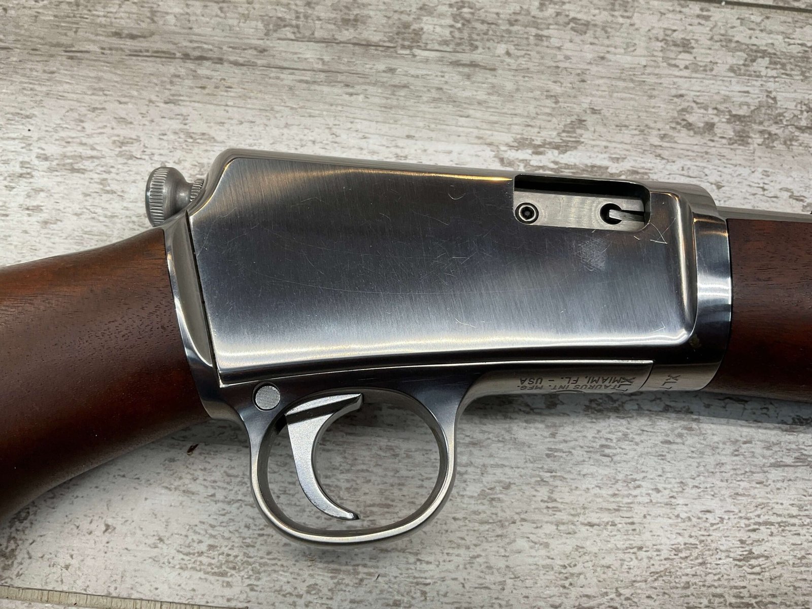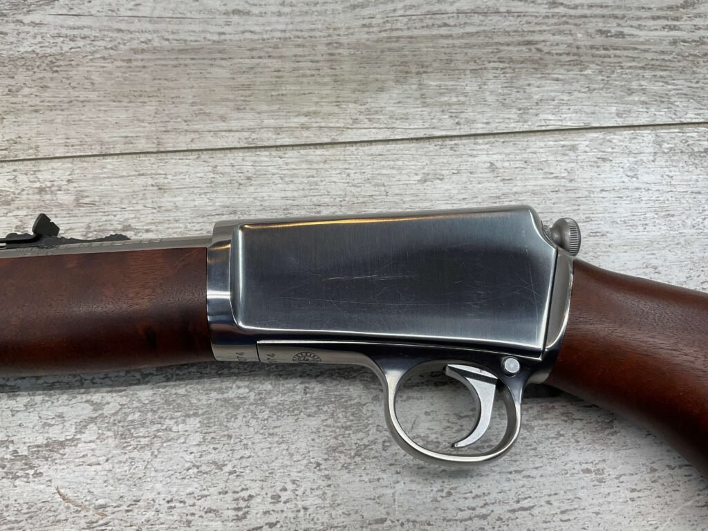 TAURUS MODEL 63 .22LR SEMI AUTO STAINLESS STEEL RIFLE #XL 7074, EXC BRIGHT BORE & RIFLING (9.5/10), EXC WALNUT STOCK W/VERY LIGHT HANDLING MARKS, STAINLESS BUTT PLATE, EXC ACTION, VERY CLEAN! 98+% OVERALL