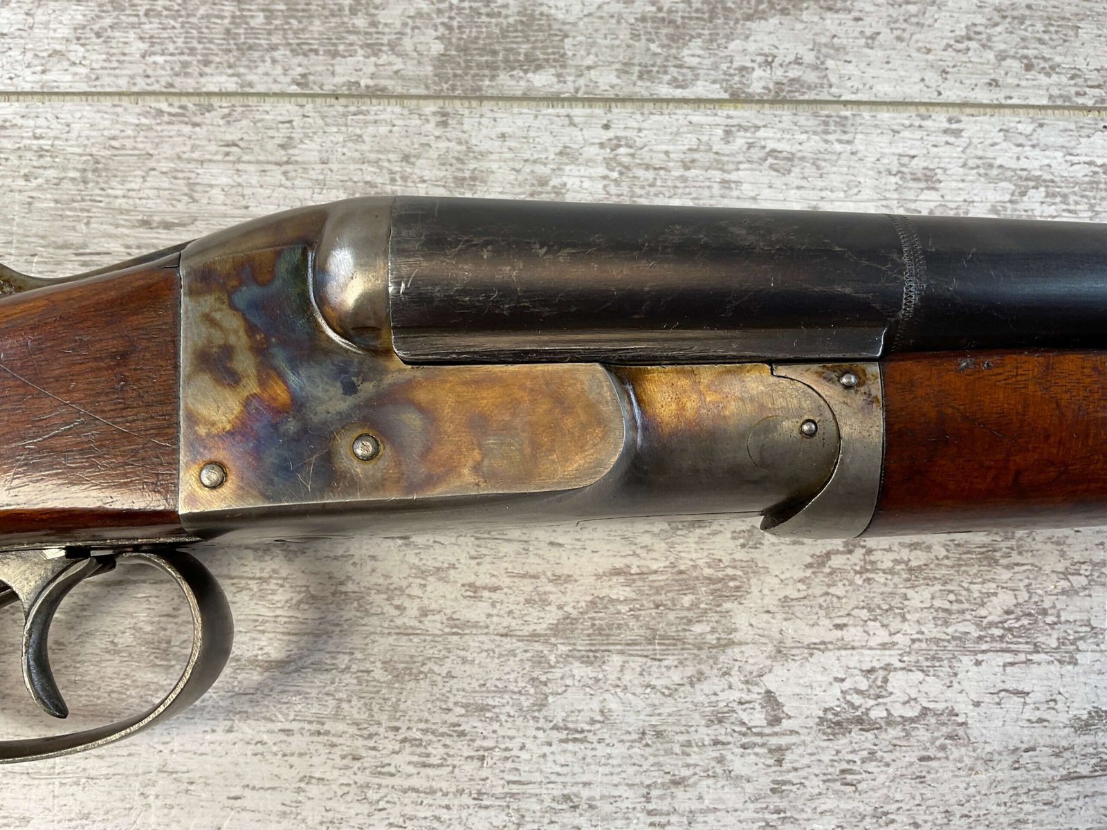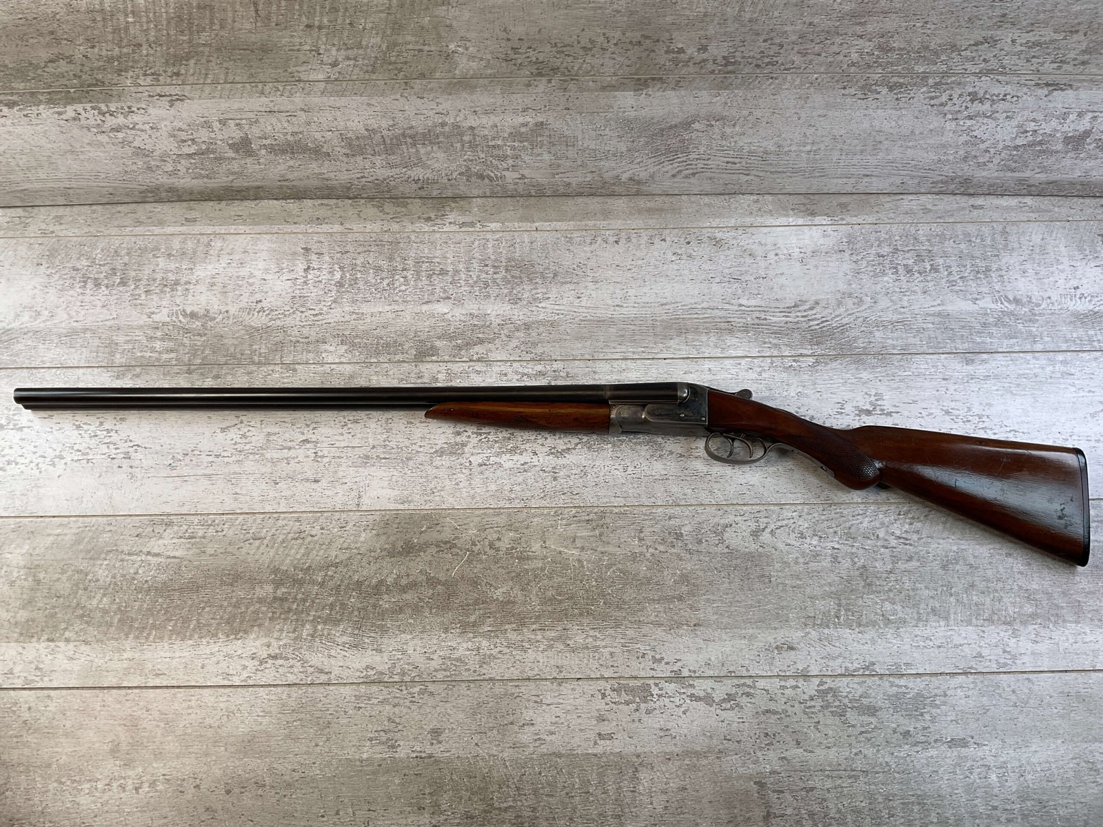 THE DAVIS WARNER ARMS DAVIS DELUXE SXS 20GA SHOTGUN #1084, 28″ SIDE BY SIDE DOUBLE BARREL (MOD / FULL), EXC BORE, EXC DELUXE CHECKERED WALNUT STOCK & FOREND, EXC ORIGINAL BLUE W/ LIGHT SIGNS OF USE, COLOR CASE HARDENED RECEIVER, DOUBLE TRIGGER, 1920s MFR, CONDITION AS SHOWN IN PICTURES.