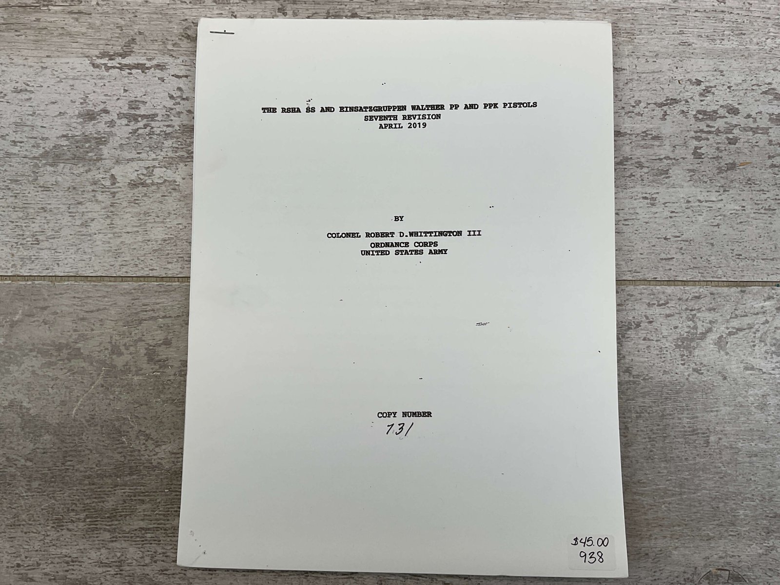 THE RSHA SS AND EINSATZGRUPPEN WALTHER PP AND PPK PISTOLS MONOGRAPH, 7th REVISION, MOST RECENT INFO AVAILABLE, BY COL. ROBERT D. WHITTINGTON III
