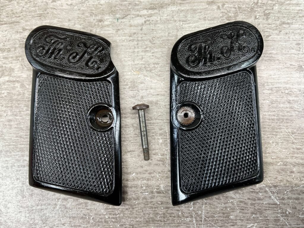 THEODOR KOMMER MODEL 2 .25 AUTO GRIPS, COMES WITH ONE SCREW. NO CRACKS OR CHIPS. IN VERY GOOD-EXCELLENT CONDITION. TWO AVAILABLE.