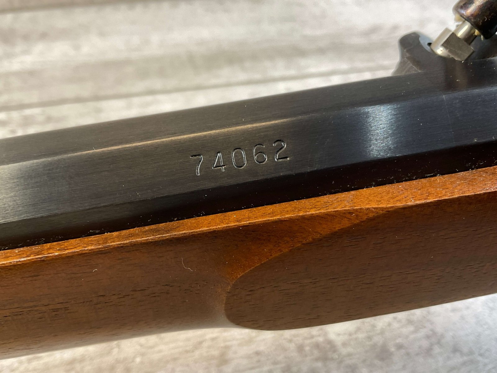 THOMPSON CENTER ARMS .50 CAL HAWKEN 28″ HEAVY OCTAGON BBL PERCUSSION RIFLE #74062, EXC 28″ BLUED OCTAGON BARREL, EXC MIRROR BRIGHT BORE & RIFLING, DOUBLE SET TRIGGER, EXC WOOD W/ COUPLE LIGHT IMPRESSIONS, EXC BRASS, EXC CASE COLOR, CONDITION AS SHOWN IN PICTURES, FROM THE JAMES EARL JONES “FAVORITES” COLLECTION W/ CERTIFICATE OF AUTHENTICITY.
