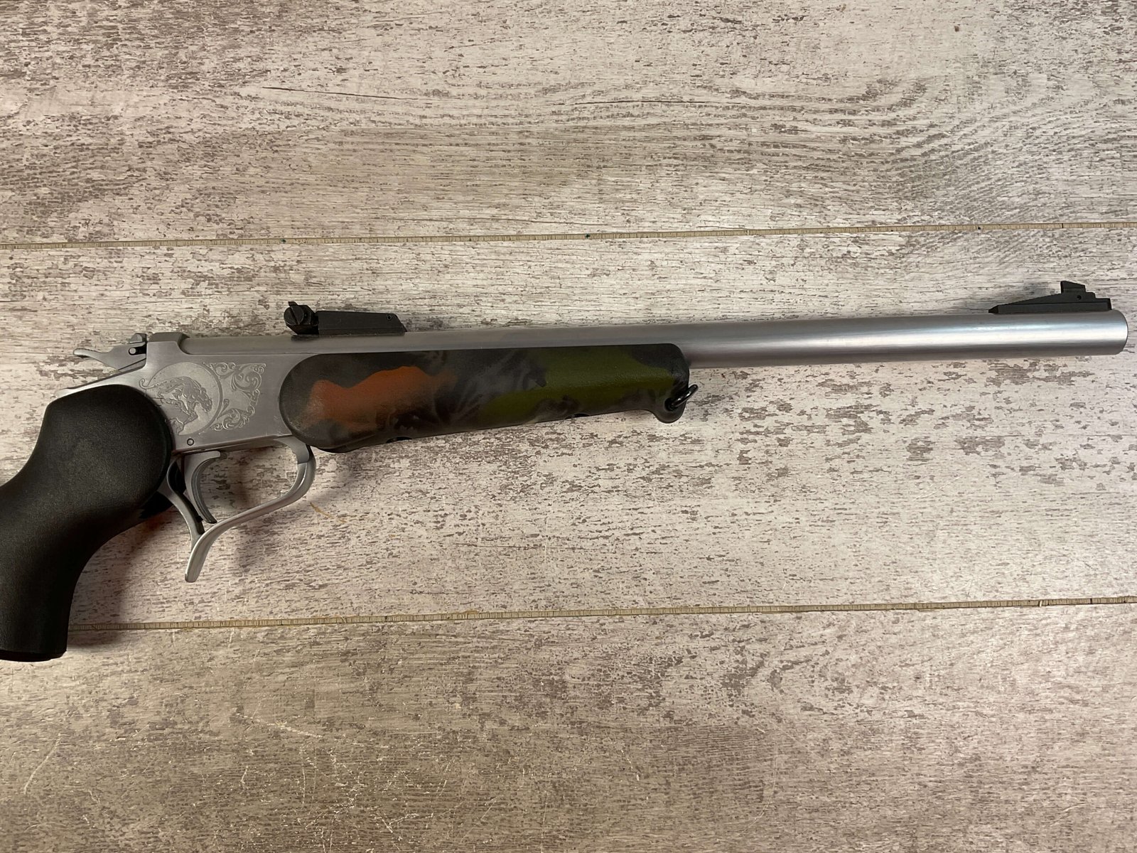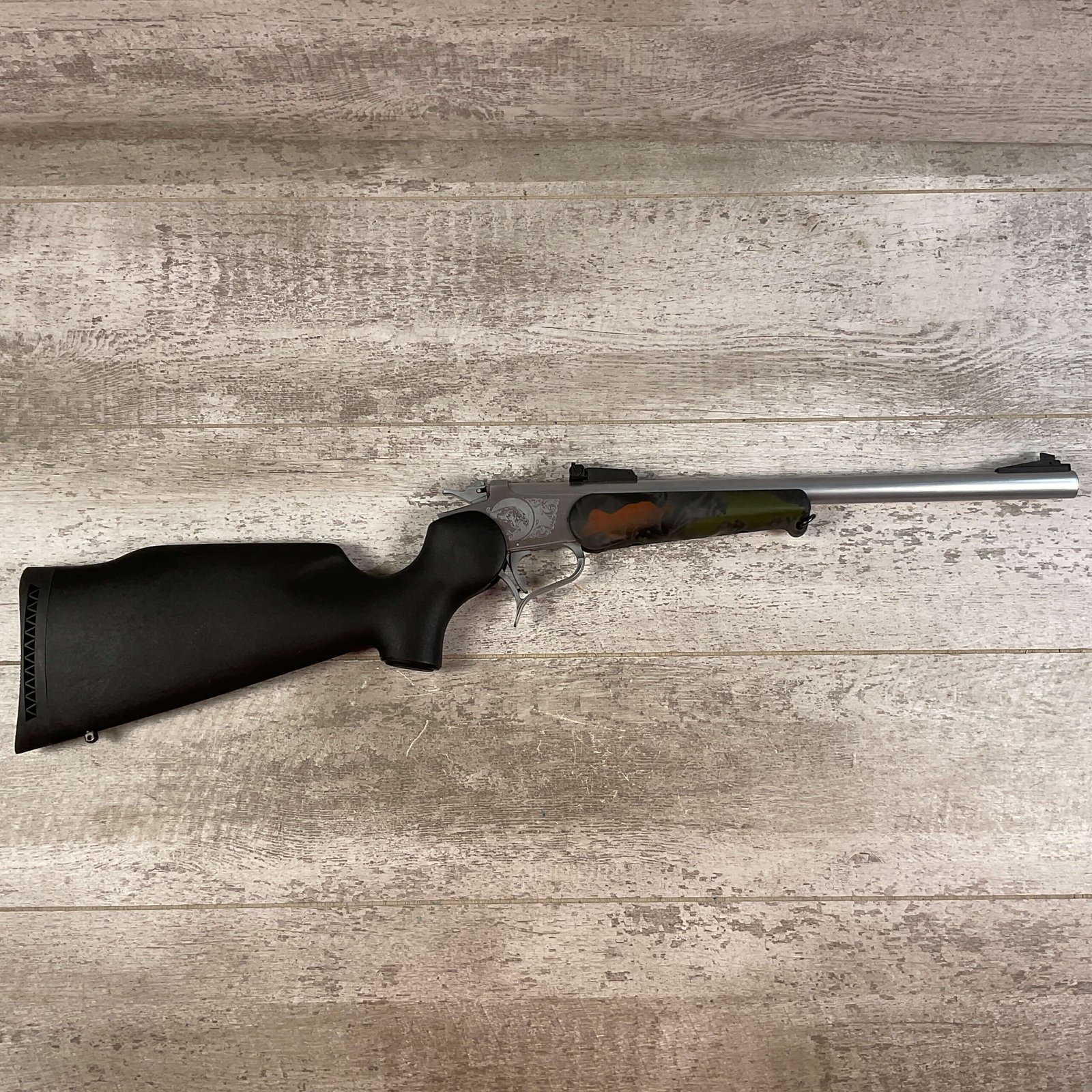 THOMPSON CENTER ARMS CONTENDER SSK 50-70-750 SINGLE SHOT BREAK ACTION RIFLE #421754 16.25″ BARREL, TC SYNTHETIC STOCK W/ RUBBER BUTT PAD, ADJ REAR & BLADE FRONT SIGHT, SLING SWIVELS, LIKE NEW, CONDITION SHOWN IN PICTURES, FROM THE JAMES EARL JONES “FAVORITES” COLLECTION W/ CERTIFICATE OF AUTHENTICITY.