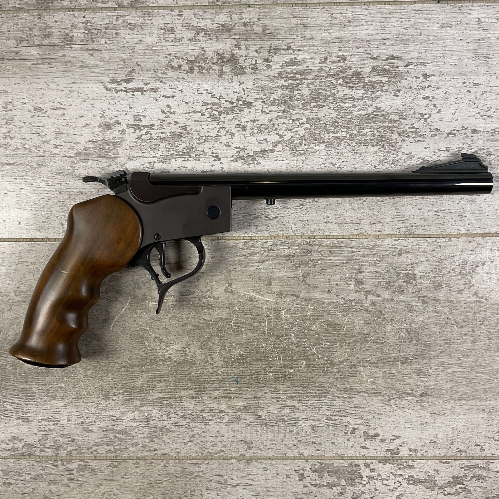 THOMPSON CENTER ENCORE .357 CAL HERRETT SINGLE SHOT BREAK ACTION PISTOL #G11233, 10″ BARREL, TC SMOOTH WALNUT GRIP & NO FOREND STOCK, MISSING ADJ REAR SIGHT BUT HAS THE FRONT BLADE, LIKE NEW, CONDITION SHOWN IN PICTURES, FROM THE JAMES EARL JONES “FAVORITES” COLLECTION W/ CERTIFICATE OF AUTHENTICITY.