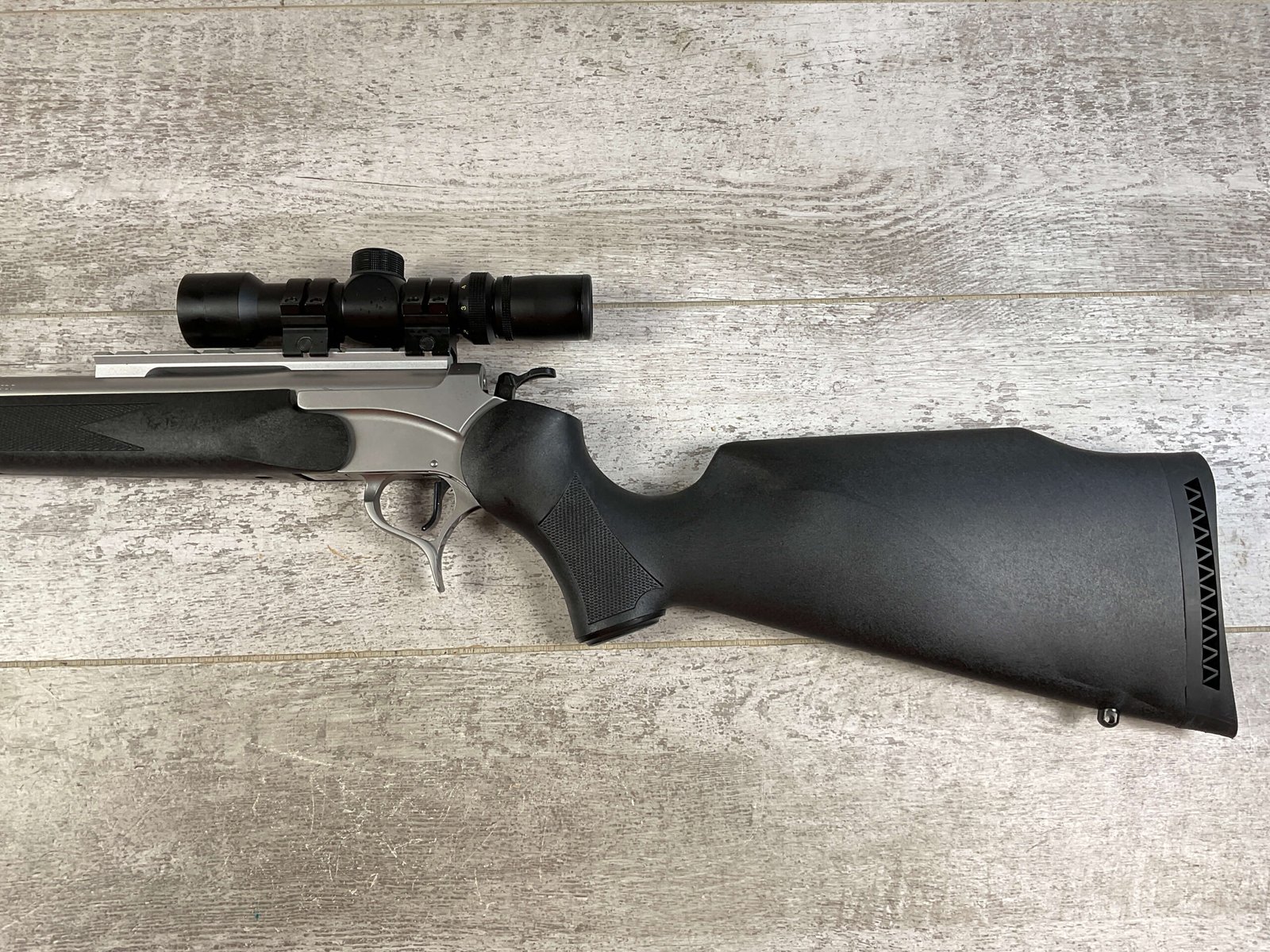 THOMPSON CENTER ARMS ENCORE 416-06 JDJ SINGLE SHOT BREAK ACTION RIFLE #MAA2539, 24″ BARREL, TC SYNTHETIC STOCK W/ RUBBER BUTT PAD, NcSTAR 2-6X28 SCOPE, LIKE NEW, CONDITION SHOWN IN PICTURES, FROM THE JAMES EARL JONES “FAVORITES” COLLECTION W/ CERTIFICATE OF AUTHENTICITY.