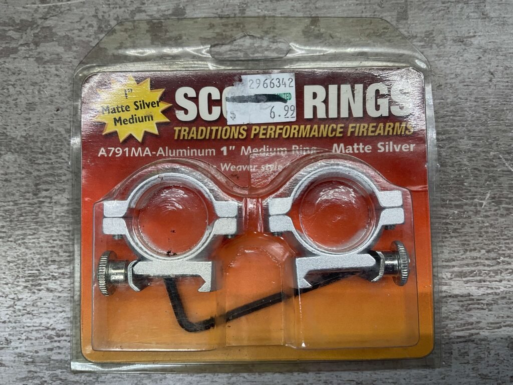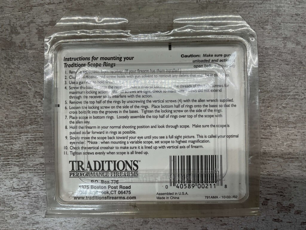TRADITIONS PERFORMANCE FIREARMS SCOPE RINGS, FITS WEAVER STYLE BASES, VINTAGE, UNOPENED