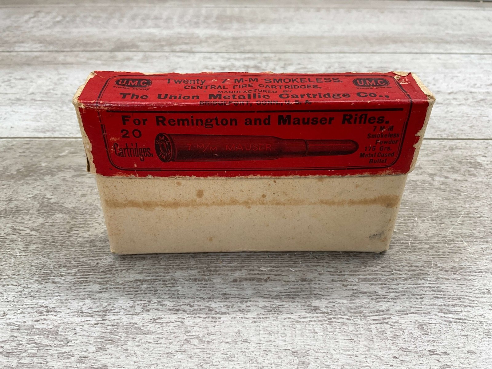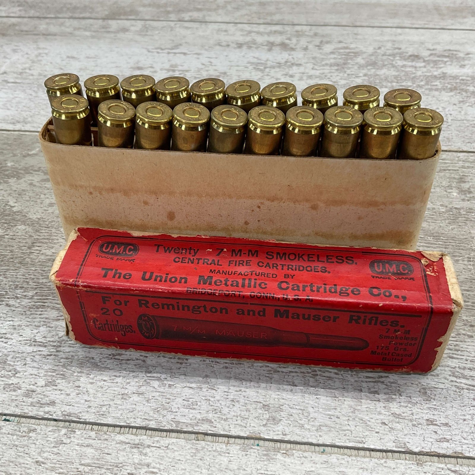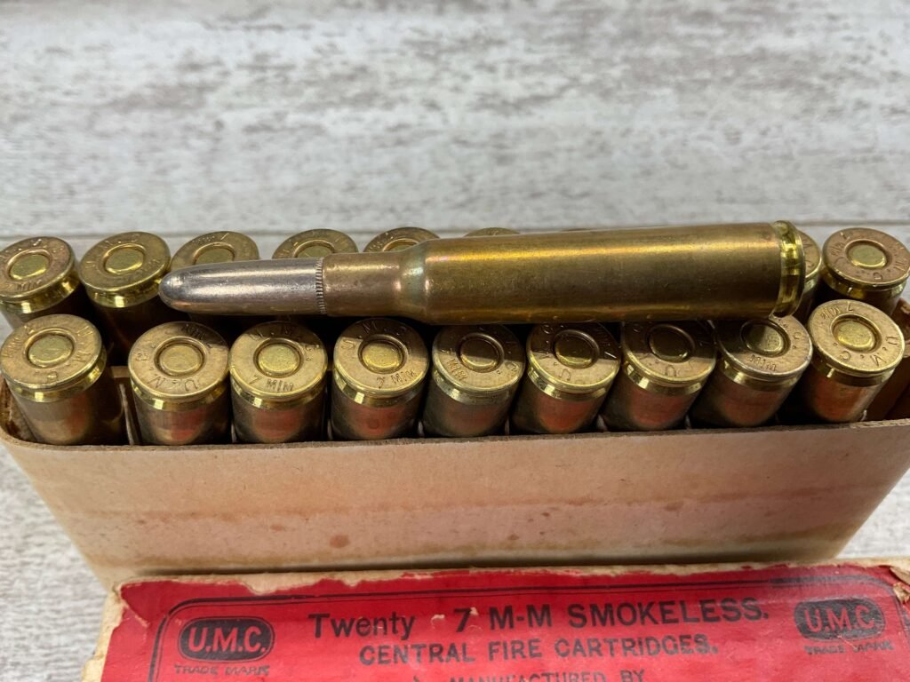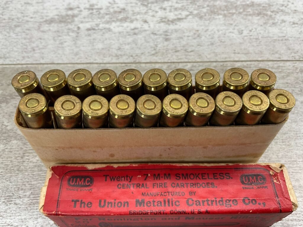U.M.C. 7MM MAUSER 175 GRS. METAL CASED, VINTAGE, FULL BOX, GREAT CONDITION FOR AGE
