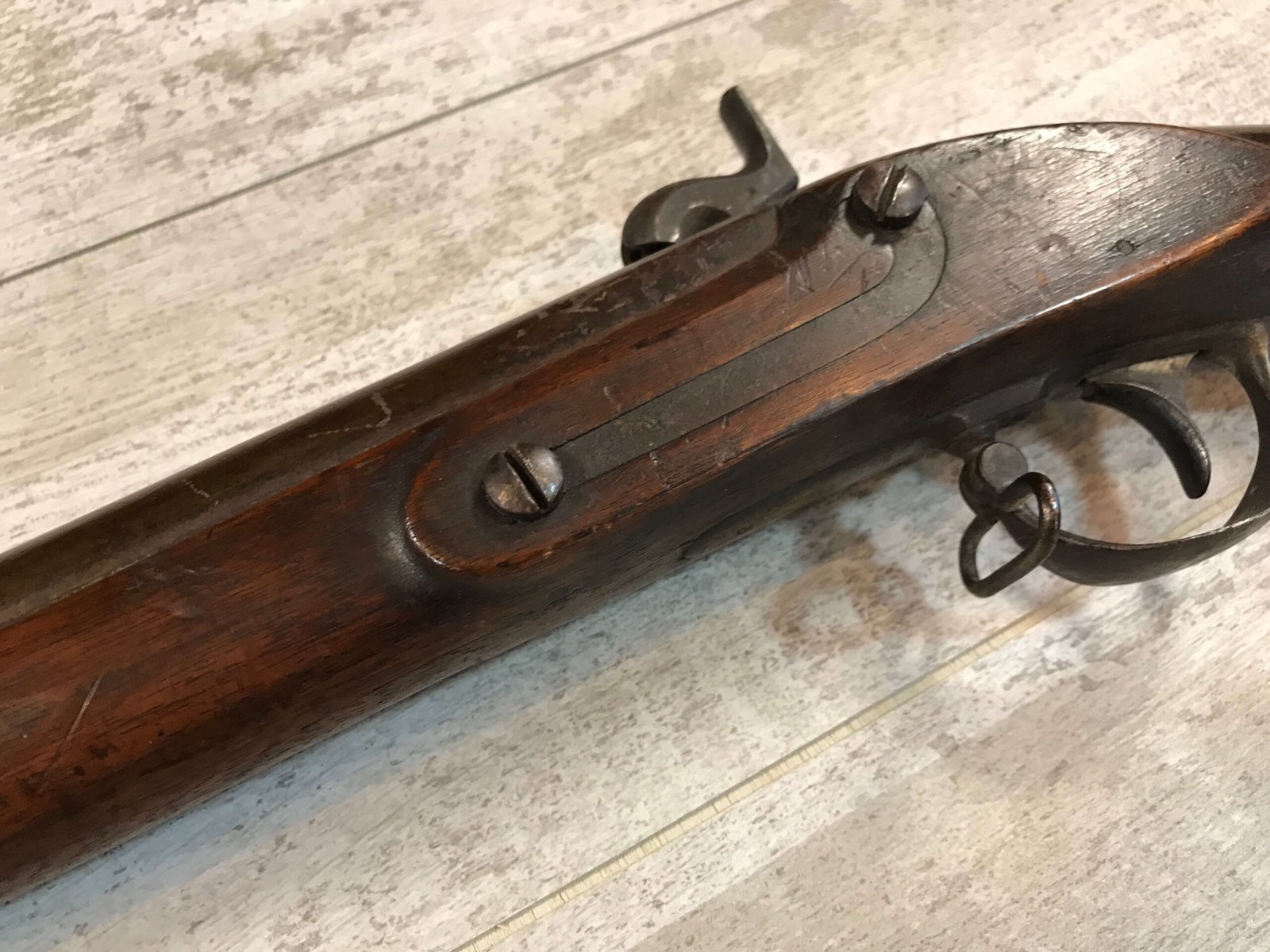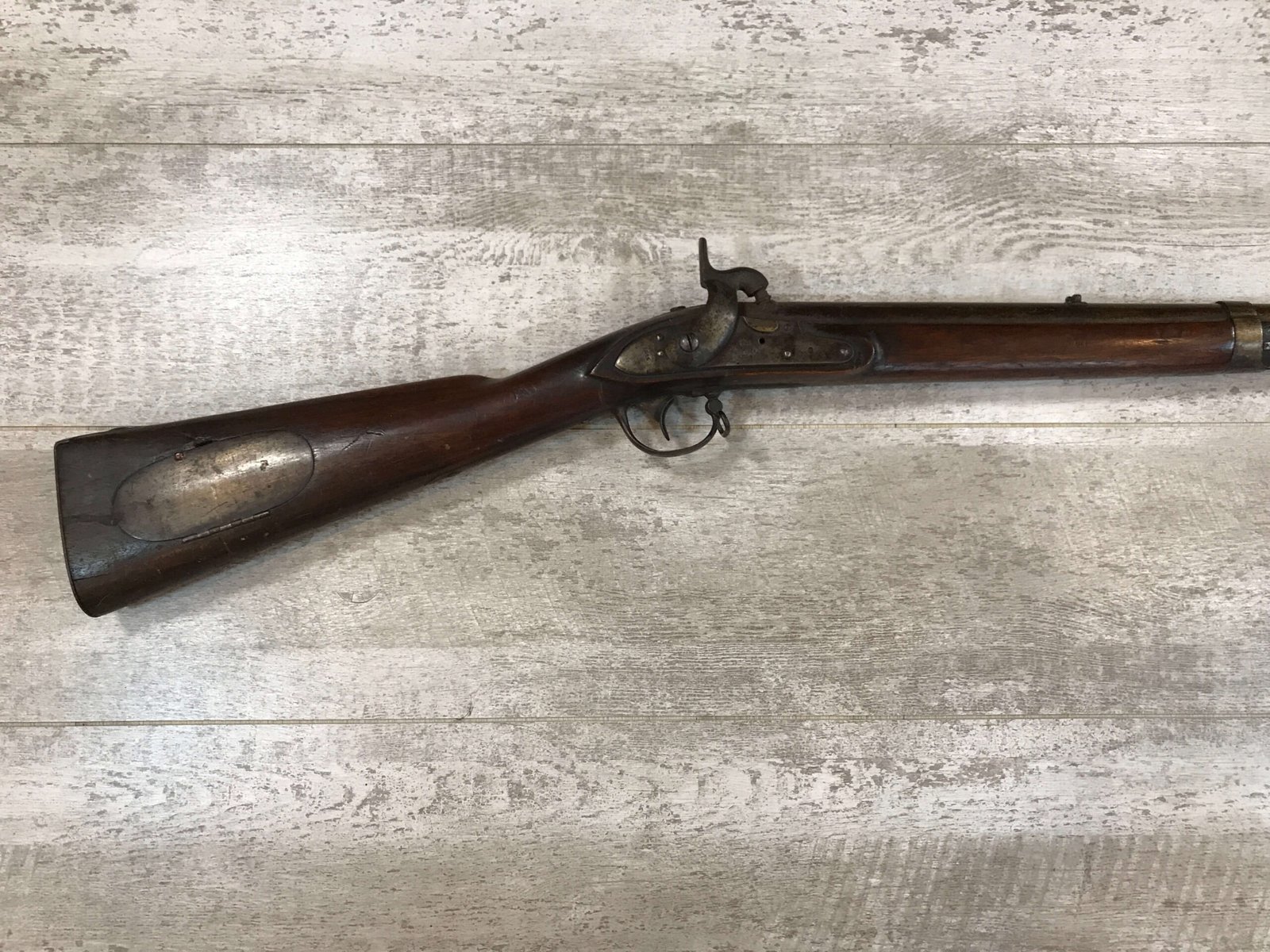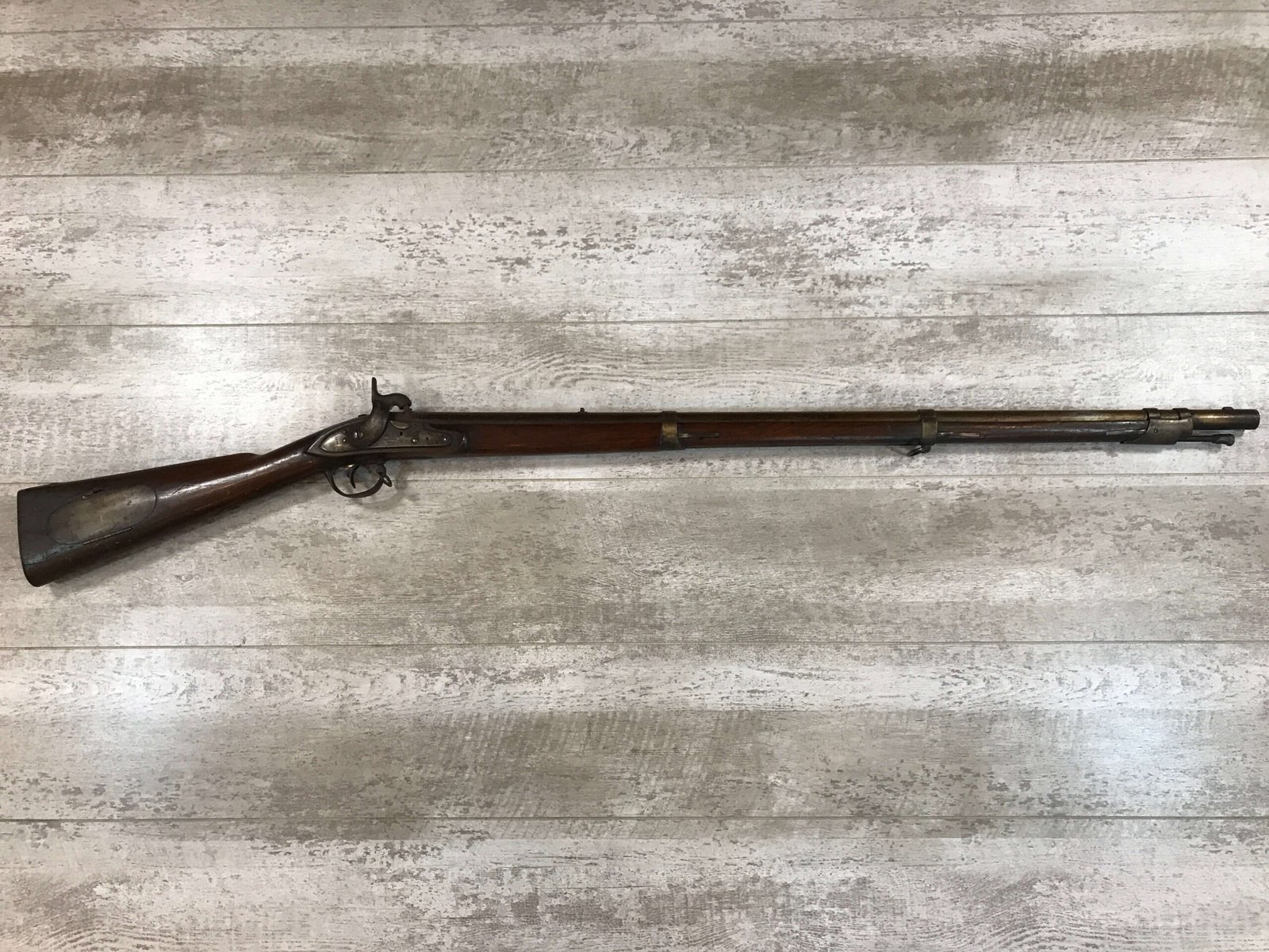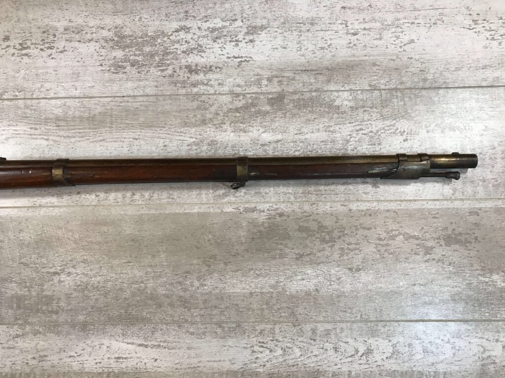 SKU#396 U.S. DERINGER 1817 MUSKET MFR 1844, LOCK AND TANG DATE 1844, KNOWN AS THE “COMMON RIFLE”, HINGED PATCHBOX COVER, 53 CAL, 36″ BBL, PERCUSSION, WALNUT STOCK, NICK/DIGNS AND BRUISING, ORIG. RAMROD, MEXICAN AMERICAN WAR AND EARLY CIVIL WAR RELIC!