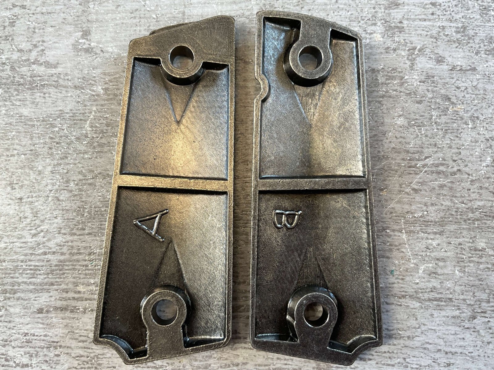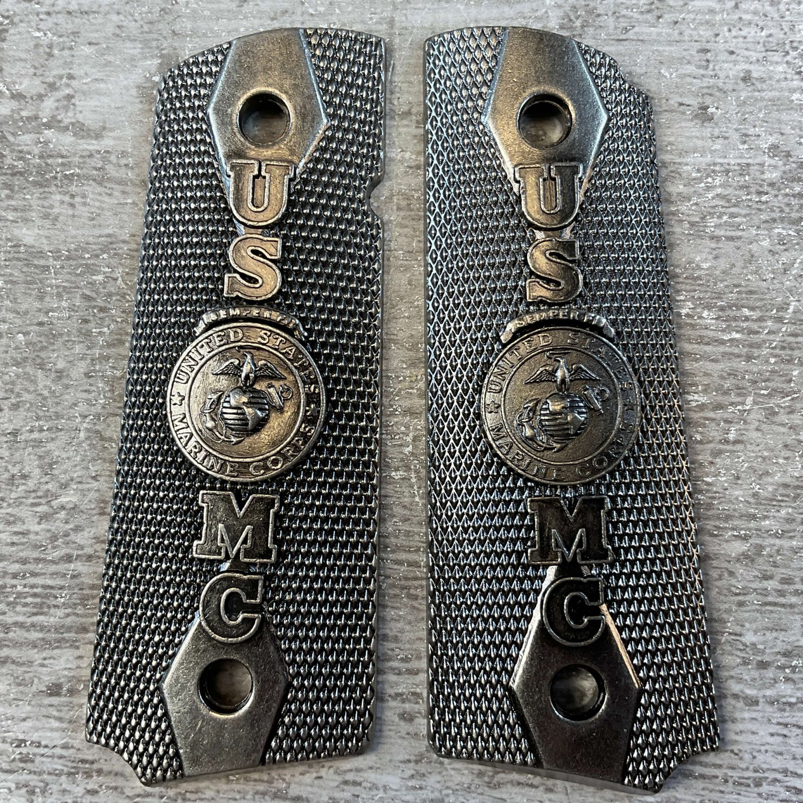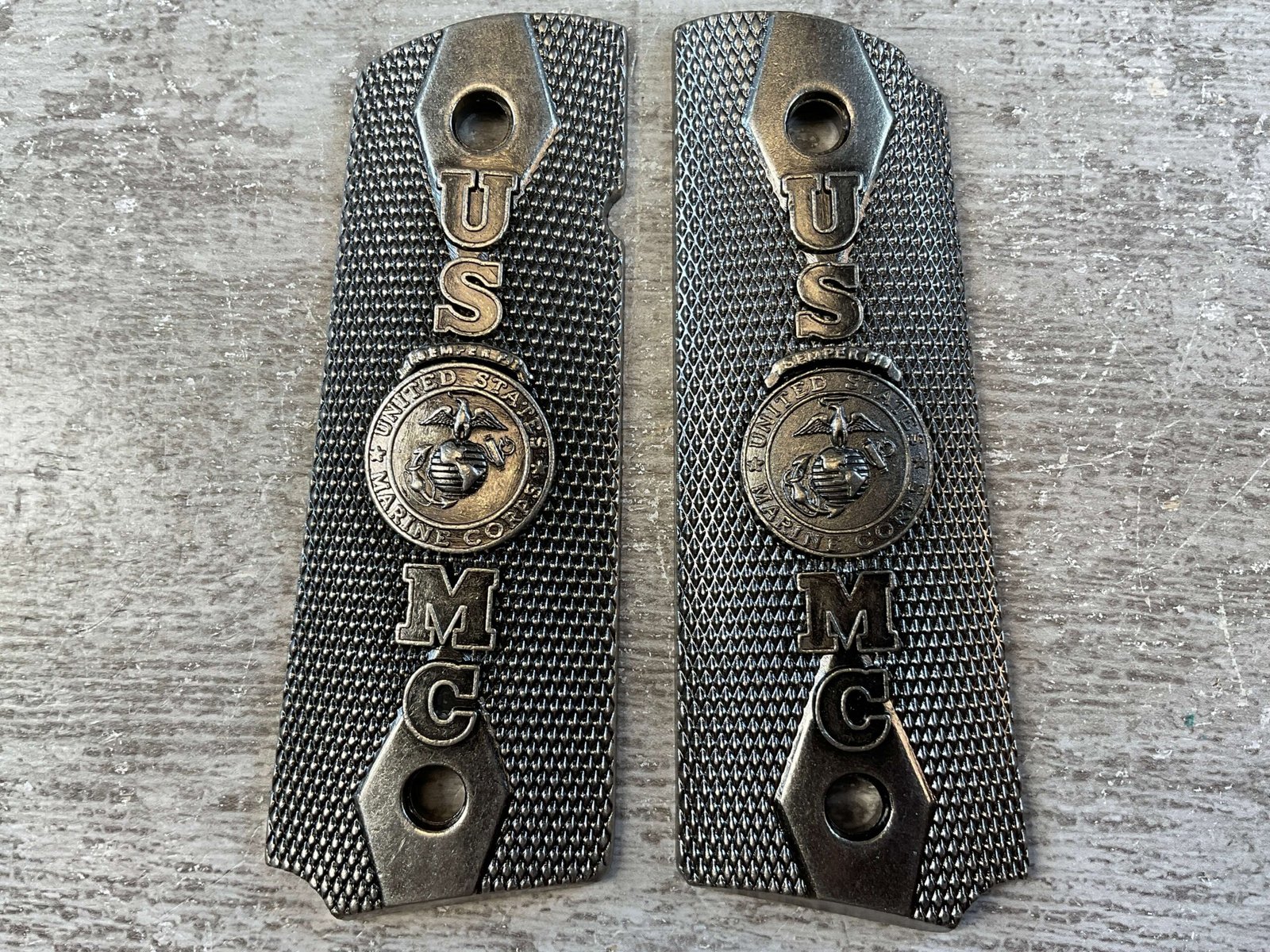 U.S. MARINE CORPS 1911 PEWTER GRIPS, JAMES EARL JONES COLLECTION, LH BACK MARKED “A”, RH BACK MARKED “B”, IN VG/LIKE NEW CONDITION, SEE PICTURES FOR MORE DETAILS!