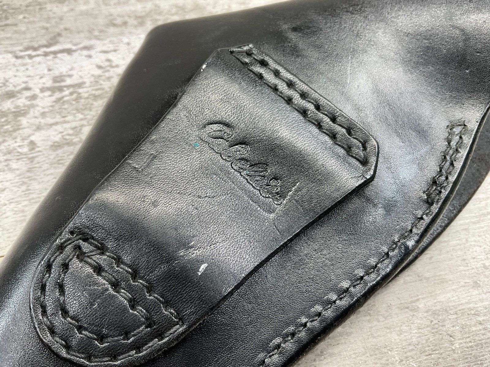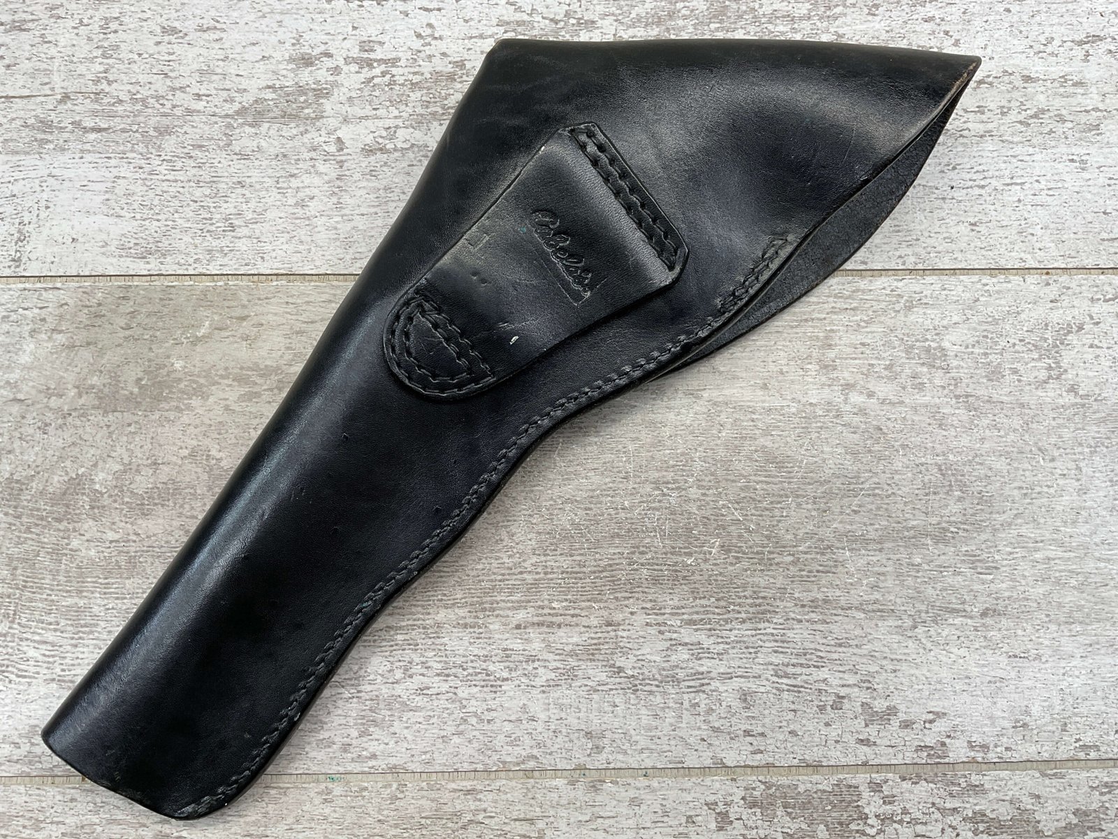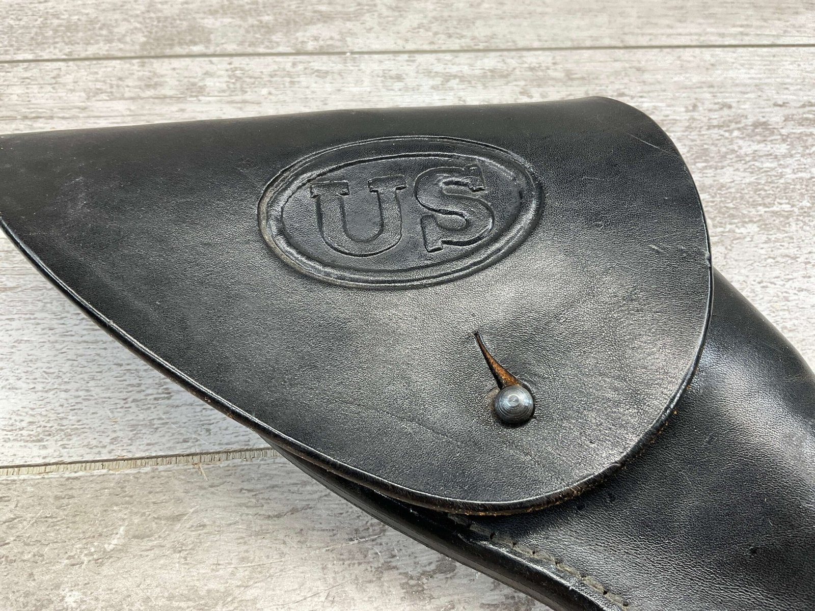 U.S. MARKED 1917 REVOLVER BLACK LEATHER HOLSTER, MARKED “CABELA’S” ON BACK OF HOLSTER, US MARKING ON FRONT.